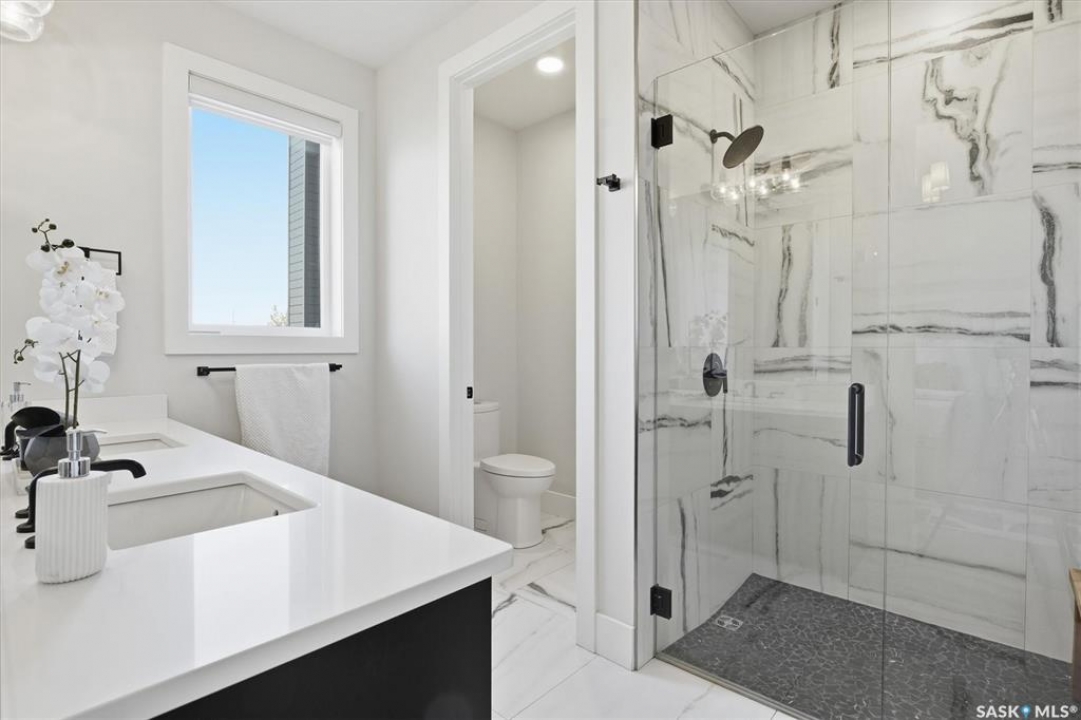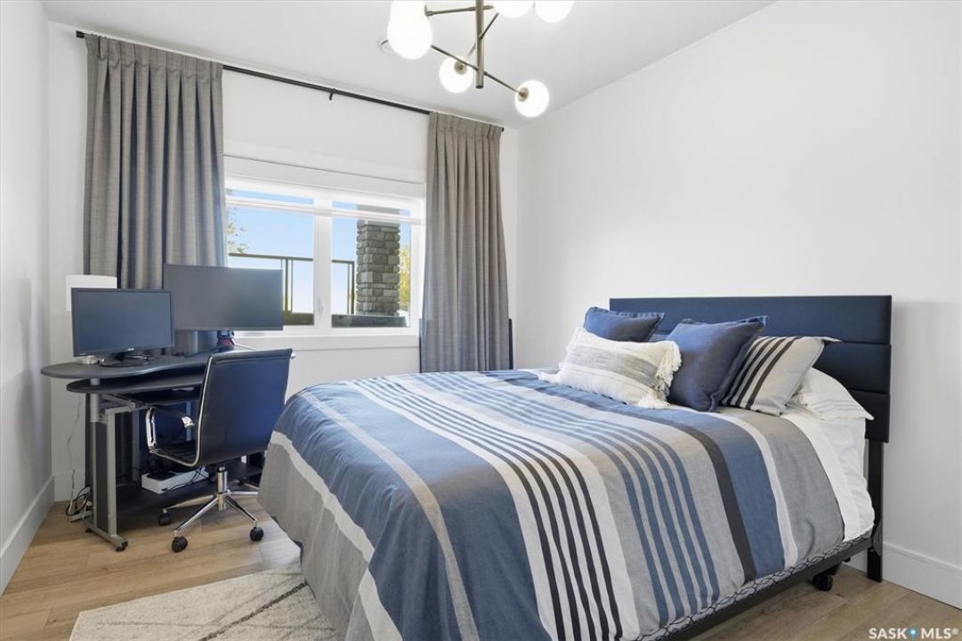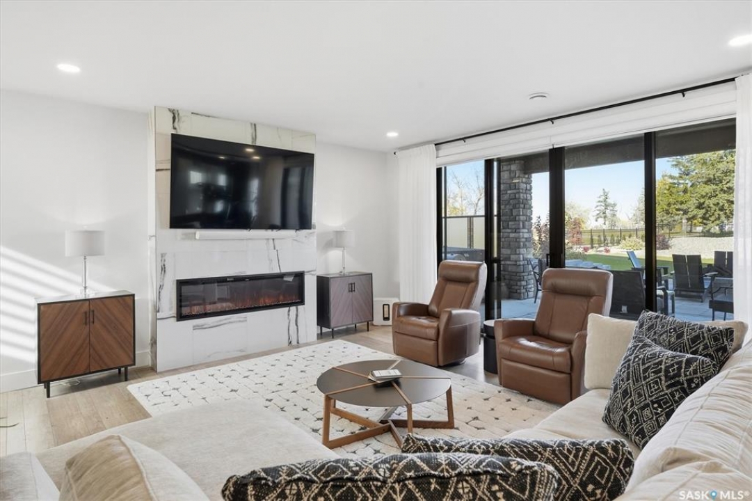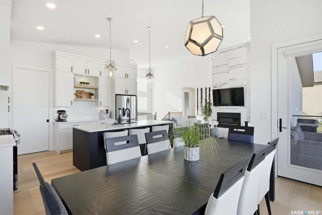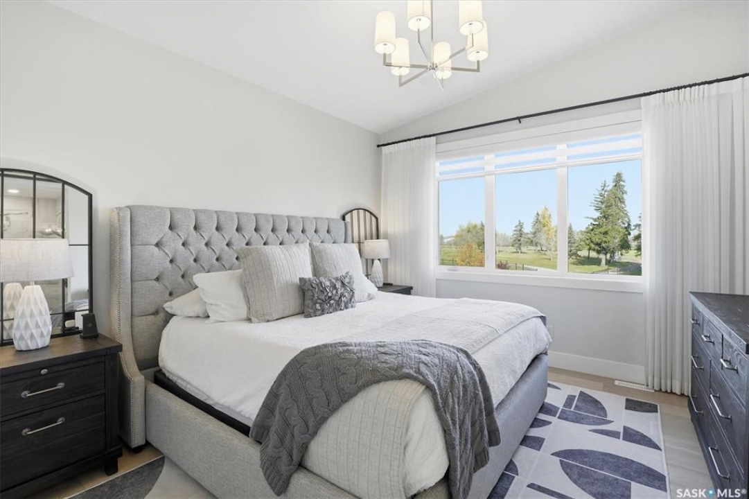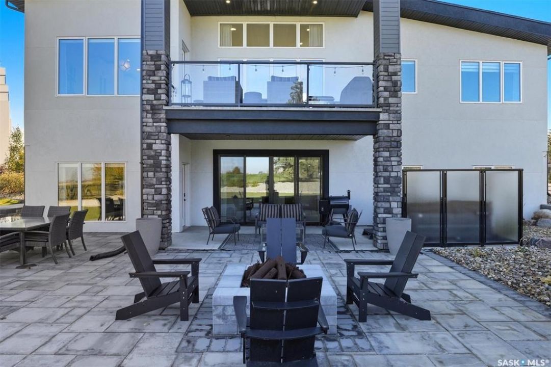 Absolute Stunner! Designer custom D&S Homes walkout bungalow, crafted with precision and showcasing an award-winning floor plan. Offering 1,694 sq ft on main plus a fully dev walkout basement, this 4-bed, 3 bath home is set on an expansive 17,000 sq ft lot backing the Greenbryre Golf Course — with no neighbouring homes in sight, only serene views of the course, a landscaped side buffer and open prairie fields. The entry opens into a breathtaking, light-filled great room with ultra-high soaring ceilings and a dramatic feature fireplace. The open-concept living, kitchen, and dining area is an entertainer's dream, wrapped in oversized windows overlooking the course. The chef's kitchen features soft-toned lacquer cabinetry with double-height uppers, quartz counters, full-height quartz backsplash, 5-burner gas range, walk thru pantry, a coffee bar, and a massive central island. The connected dining area is spacious enough for large gatherings and opens to a private covered deck for seamless indoor-outdoor entertaining.The main floor also includes a large boot room, a bright office, outfitted laundry room, and a luxurious primary suite complete with a fully tiled spa-style ensuite, walk-in shower, dual vanity, and walk-in. A striking custom staircase leads to the fully dev walkout level, which mirrors the quality of the main floor. This level offers a sprawling family room with a 2nd fireplace, floor to ceiling windows overlooking the show-stopping backyard, a wet bar with wine storage and seating area, and a dramatic full height glass-walled gym. 2 large bedrooms and a full bathroom complete this level. Additional highlights: • Professionally landscaped grounds • Heated double garage • Zoned in-floor boiler plus forced-air furnace • Instant hot water • Central air • Wired for a hot tub • Underground sprinklers, oversized concrete drive A tasteful masterpiece in design and function — this Greenbryre walkout is spectacular in every detail.