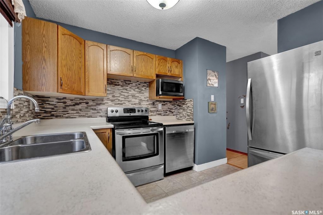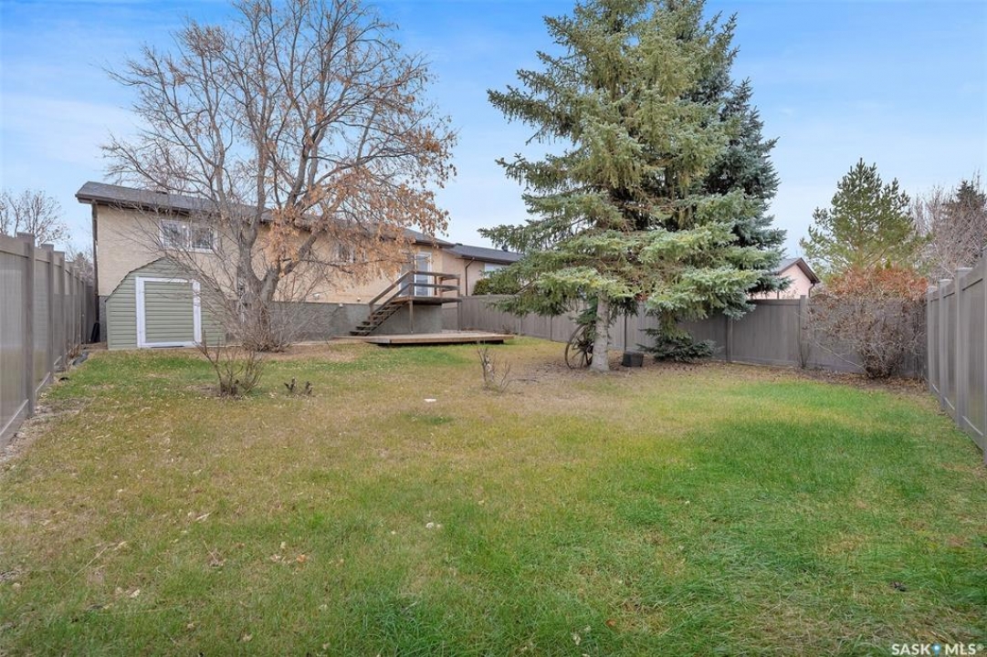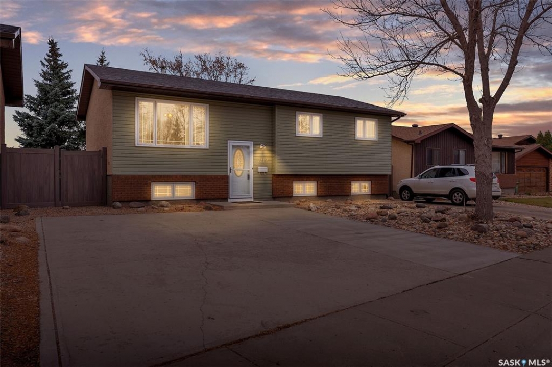 Looking for a home in a great neighborhood? A home with functionality and versatility where many of the big tickets items have been done? You'll want to check out this home! Attractive exterior with low maintenance siding and up-dated shingles and windows. Lots of parking space also. The bi-level style provides plenty of natural light on both the upper and lower levels because of the size of the windows. The main floor flows nicely with the living room at the front. Kitchen workspace and dining area look to the back yard. There are 3 good sized bedrooms and an updated main bath. Low maintenance laminate flooring throughout the main floor. The developed lower level provides more living space with a large family room, good sized bedroom( 12.3 x 11.1) a full bath and a den (11.1 x 10.2). There is also a full bath plus the utility room with furnace, laundry and plenty of storage space with extra cabinets (17.7 x 10.5). Laminate flooring. Newer furnace. The back yard has newer PVC fencing. There is a shed. Equalized SkPower $131/month. Equalized SkEnergy $50.98 per month. Quick possession is available. Included: fridge, stove, washer, dryer, built in dishwasher, freezer. Be sure to put this home on your list to view!