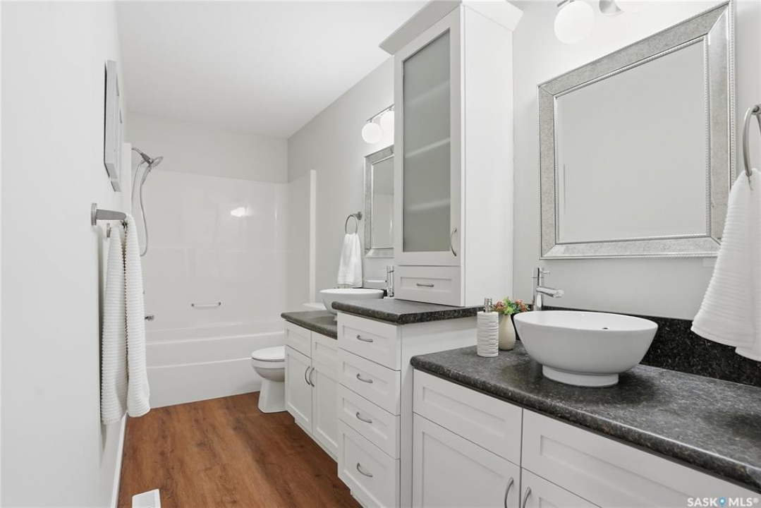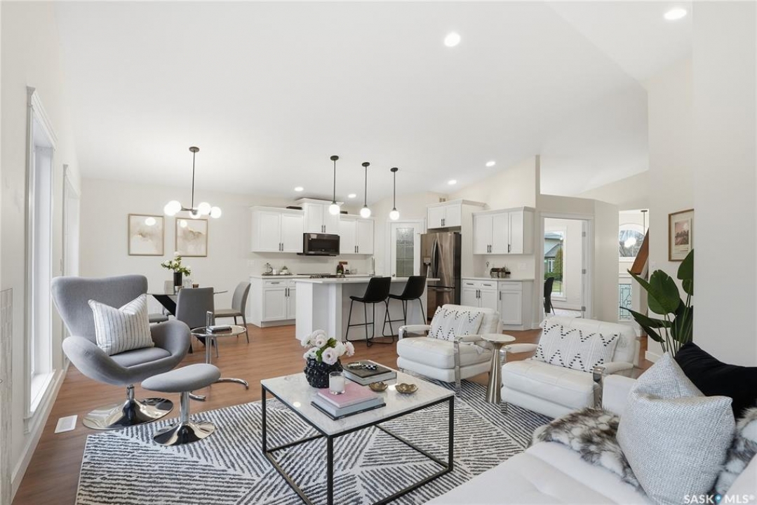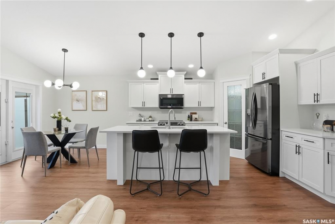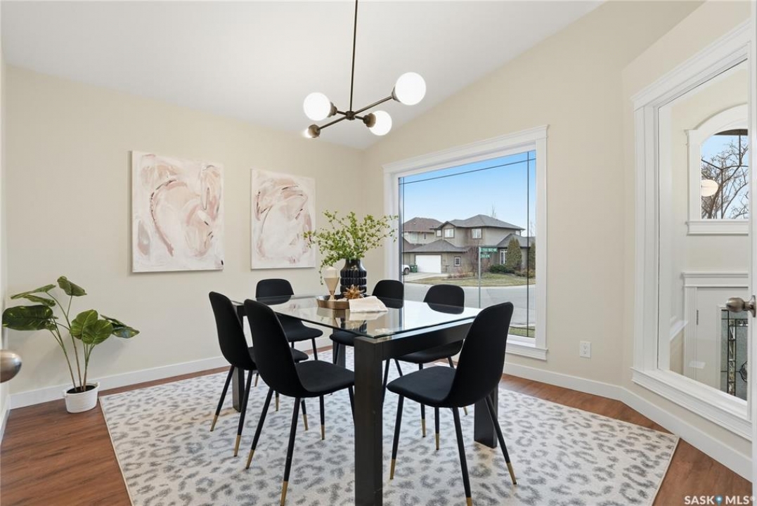 703 Beechdale Way – Briarwood Tucked away on a quiet street in desirable Briarwood, this updated modified bi-level offers over 1,700 sq ft of thoughtfully designed living space. With 5 bedrooms and 3 full bathrooms, the home blends comfort, style, and practicality. A bright great room with vaulted ceilings and a cozy gas fireplace creates an inviting first impression. The kitchen has been refreshed with maple cabinets, quartz countertops, and stainless steel appliances, complemented by updated flooring, lighting, baseboards, and paint throughout. A separate formal dining room provides a dedicated space for gatherings and family meals. Main-floor laundry adds everyday convenience. Upstairs, the private primary suite offers a peaceful retreat with a walk-in closet and a luxurious 5-piece ensuite. The fully developed basement expands the living space with a large family room and two generous bedrooms—ideal for guests, teens, or extended family. A heated double attached garage and well-manicured yard enhance the home's appeal. With walking paths, shopping, and transit nearby, the location delivers both convenience and quality of life. A warm and inviting home in one of Saskatoon's most sought-after neighbourhoods.