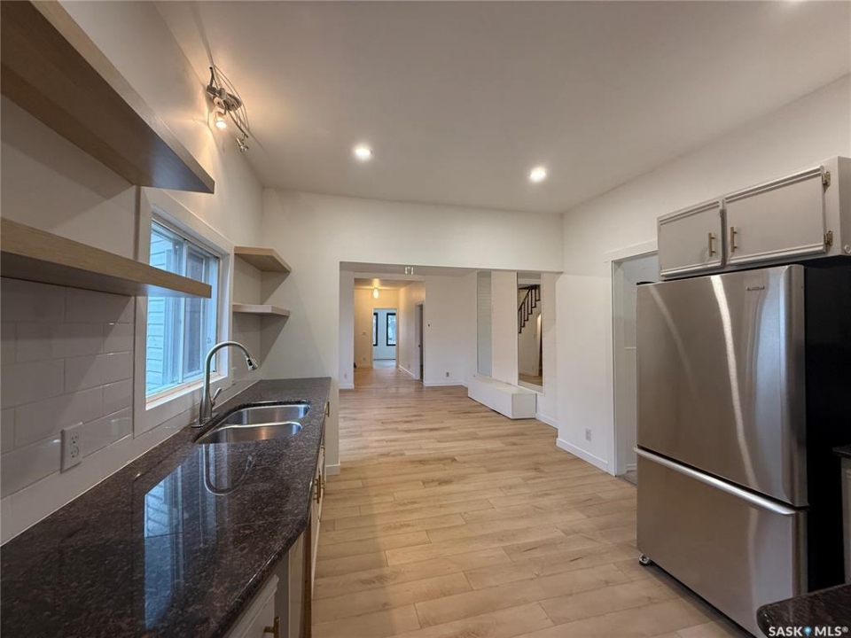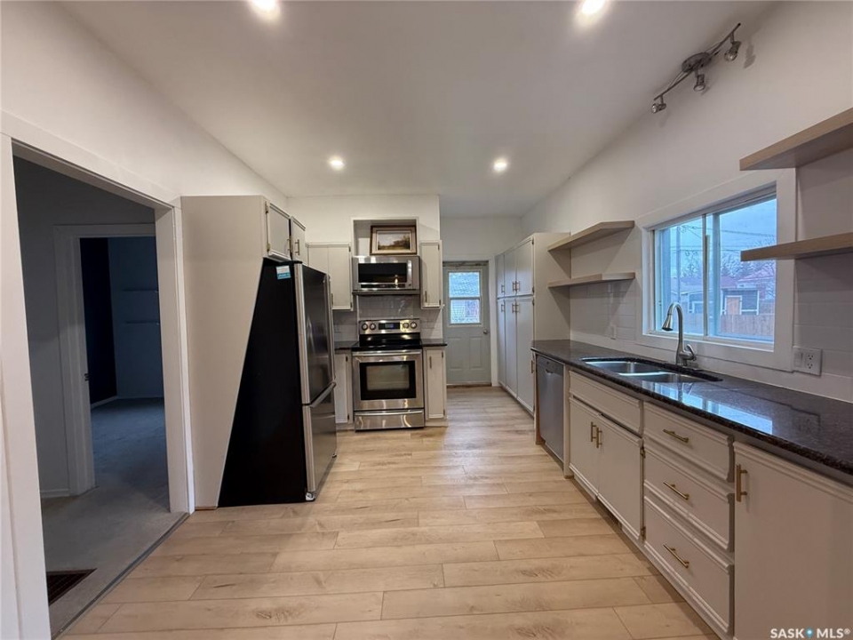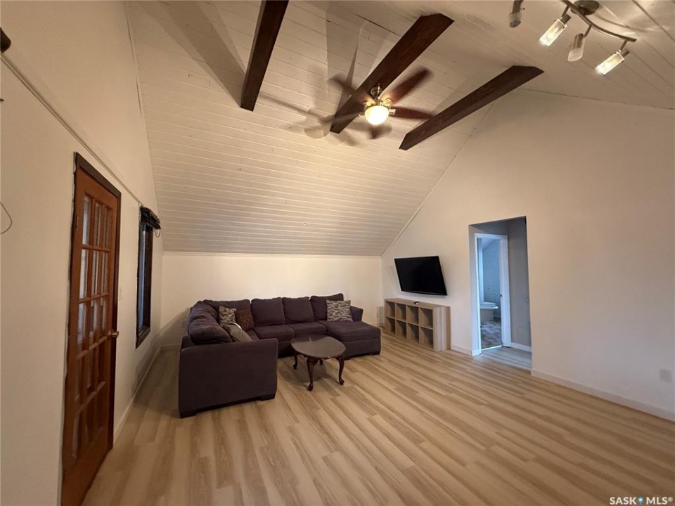 Welcome to 732 6th Street, perfectly situated in an excellent location in the City of Humboldt, just steps from the Public School and Main Street. This spacious and well-maintained home offers a wonderful blend of comfort, style, and convenience. The main level features a large, updated kitchen and dining area with freshly painted cupboards, new hardware, quartz countertops, and stainless steel appliances. The bright, stylish living room, three bedrooms—including a super cute kids' room—a beautiful 4-piece bathroom, and a generous laundry/foyer area complete this impressive level. Upstairs, you'll find a huge family room ideal for entertaining, a screened-in balcony perfect for enjoying sunny days and fresh air, an additional bedroom, and a 3-piece bathroom. The beautifully landscaped backyard is a true retreat, showcasing an attached deck, fire pit area, green space, an abundance of perennials, a storage shed, and a detached garage with rear parking. This home comes equipped with all appliances and has seen important updates in the past two years, including a furnace, an added sub-panel, and attic insulation. Additional highlights include vinyl plank flooring throughout much of the home, fresh paint, and shingles that are only a few years old. Move-in ready and meticulously cared for! Homes like this don't come along often. Not very often will you find a home of this size & quality under $250,000! The photos don't do it justice—book your viewing today before it's gone!