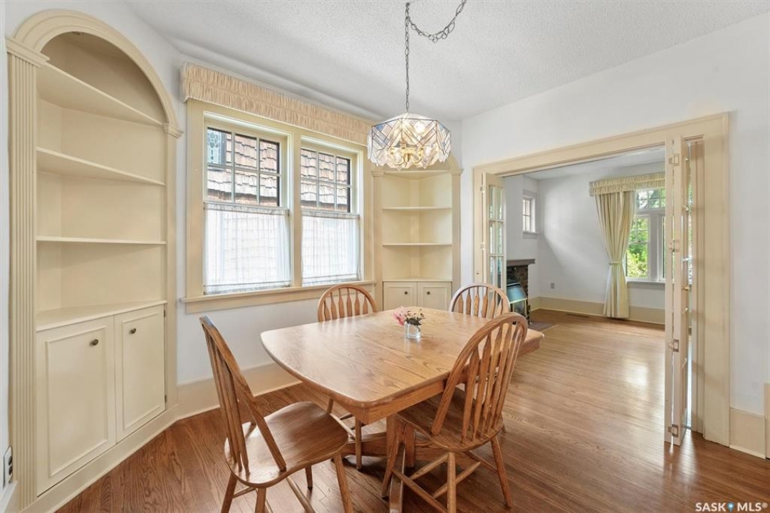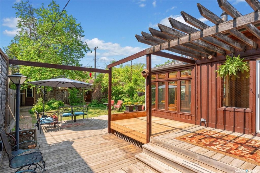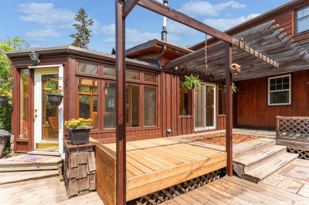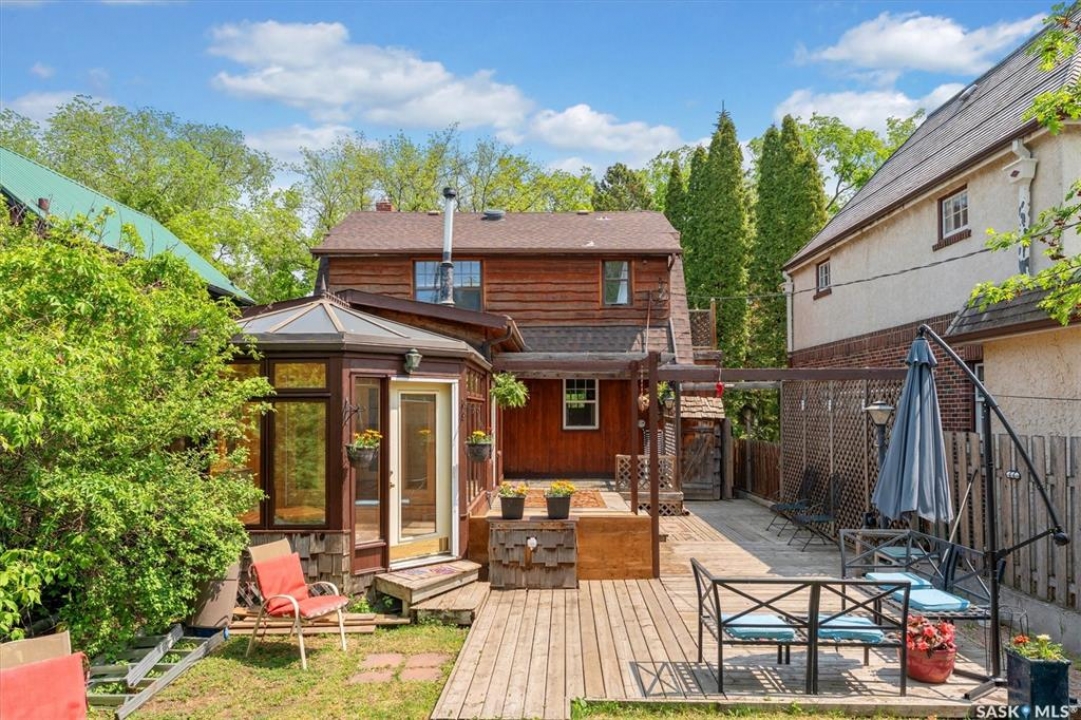 Welcome to 811 9th Avenue North — a beautifully preserved character home tucked into one of Saskatoon's most loved neighbourhoods, City Park. Built in 1935, this two-storey property blends timeless charm with thoughtful updates, offering over 1,600 sq. ft. of warm, inviting living space just moments from downtown, the river, parks, and local cafés. Step inside and you're immediately greeted by the features that make City Park homes so special: original hardwood floors, stained-glass details, classic mouldings, and an abundance of natural light. The living room and dining area feel spacious and bright, while the kitchen maintains its vintage appeal with plenty of space to personalize in the future. The sunroom is a standout — cozy, cheerful, and perfect for enjoying morning coffee year-round. A dedicated office with exposed brick adds both character and function to the main floor. Upstairs, the home offers three comfortable bedrooms, including a generous primary suite. The partially finished basement provides a den, 3-piece bathroom, laundry, storage, and a separate side entry, creating potential for future development. Outside, the yard is a true extension of the home. Mature trees, a deck, and two storage sheds help create a private, established outdoor space that suits both everyday living and entertaining. With Denovo triple-pane windows on the east side, two gas fireplaces, and preserved wood siding, the home balances comfort with its original charm. City Park is known for its walkability, treelined streets, and vibrant sense of community — and this property sits right in the heart of it all. Whether you're drawn to classic character homes, searching for a family-friendly neighbourhood, or looking to be near downtown and the river, 811 9th Avenue North offers a rare combination of charm, warmth, and location.