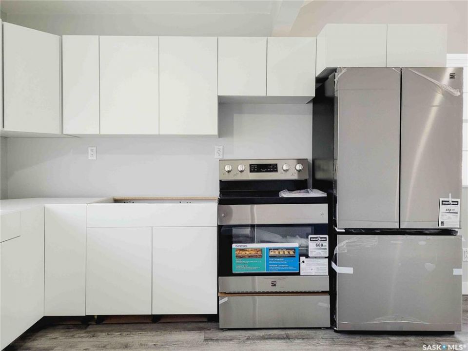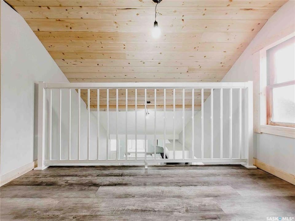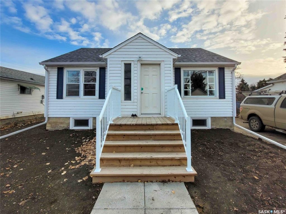 Experience this renovated and restored home in Elrose. This property is suitable for both first-time buyers and those looking to downsize, featuring new finishes throughout. Every corner of the home has seen improvements, from the front door to the cathedral ceiling and loft. The open concept kitchen, dining, and living room is bright and welcoming, receiving natural light from three sides. A wall was removed to create a more spacious flow, and the ceiling was raised to develop a loft space with a balcony overlooking the kitchen. The kitchen is equipped with new white cabinets, stainless-steel appliances, and a small bay window that provides a view of the deck on the south side. On the main floor, there are two bedrooms and a new 4-piece bathroom. The fully finished concrete basement includes a large recreation room, a third bedroom, and a sizable 3-piece bathroom featuring a glass shower. Laundry connections have been added in two areas: just outside the basement bathroom and in the utility room. The plumbing has been updated with PEX lines, and every tap has individual shut-offs for both hot and cold water. The hot water tank is new as of 2025, and the HE furnace is from 2022. The electrical system has also been updated, with a new 200 amp panel installed. New vinyl plank flooring extends throughout all three levels of the home, and all of the basement windows are brand new. The finishing touches are being done even as this lovely home comes on the market.