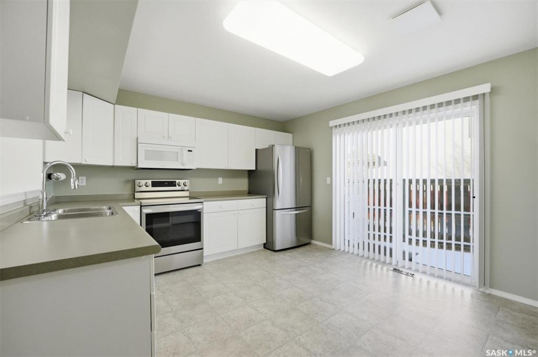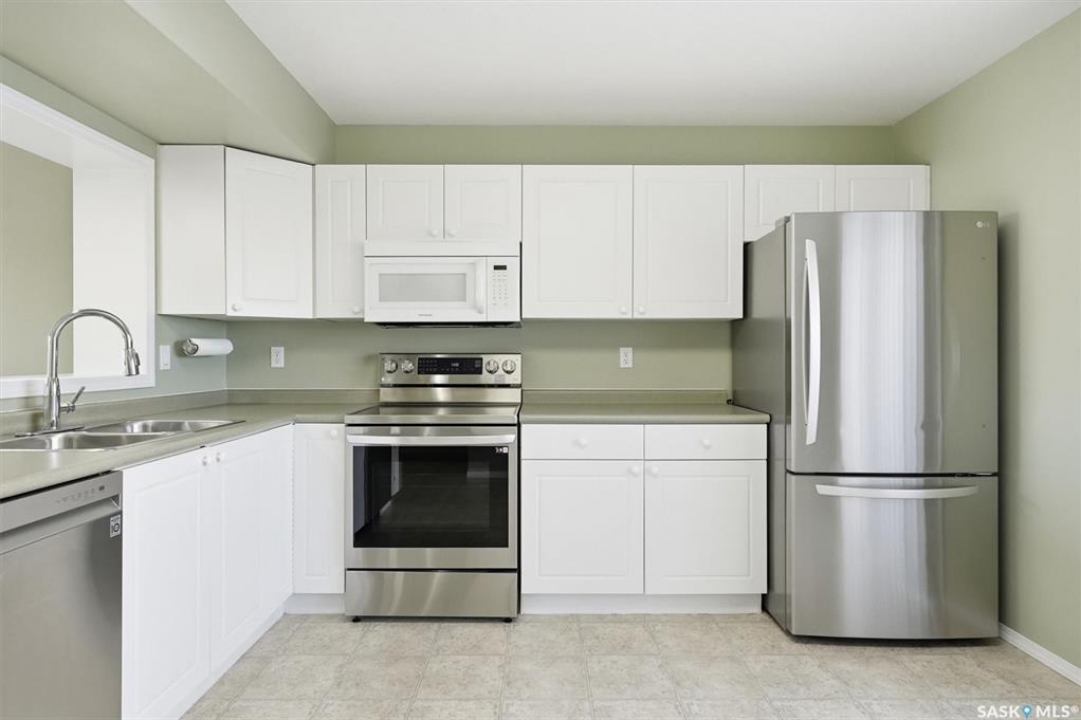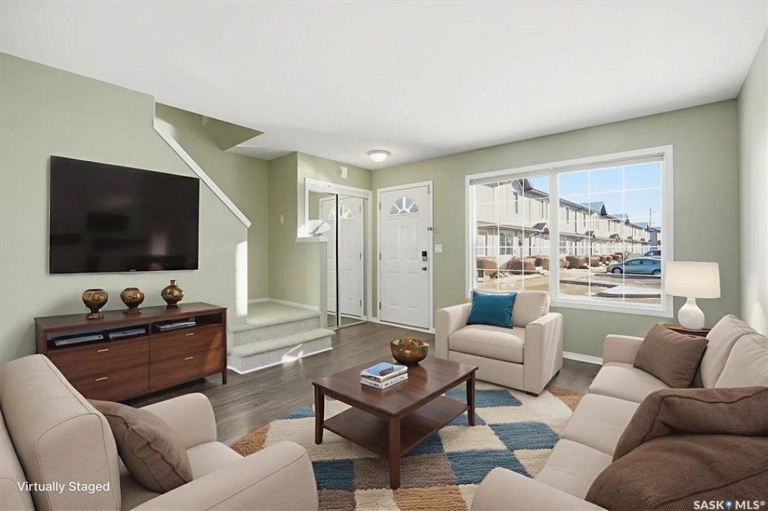 Welcome to 131 – 103 Rutherford Crescent. This fully developed townhouse sits in a great spot within Sutherland, offering quick access to the University of Saskatchewan, bus routes, elementary schools, a small park, 115th Street and Preston crossing. It's an easy place to settle into, especially if you're looking for a comfortable home with a private outdoor space. The main floor has a bright living room and a spacious kitchen/dining area that looks out to the fenced backyard—perfect if you have a pet or just want a bit of privacy. The former 2-piece bathroom on this level has been converted into a handy walk-in pantry, but all the plumbing is roughed in if you'd prefer to convert it back to a bathroom. Upstairs, you'll find two good-sized bedrooms with great closet space and a full 4-piece bathroom. The basement is fully finished as well, offering a cozy family room, a 3-piece bathroom, and a separate laundry/storage area. Other features include central air conditioning, two electrified surface parking stalls, and a yard with no immediate neighbour behind. The seller has also confirmed that the furnace is under warranty until 2034 and the water heater until 2028, and both can be reassigned to the new owner. This is a well-kept home in a convenient location, ideal for students, first-time buyers, or anyone wanting low-maintenance living close to the U of S.