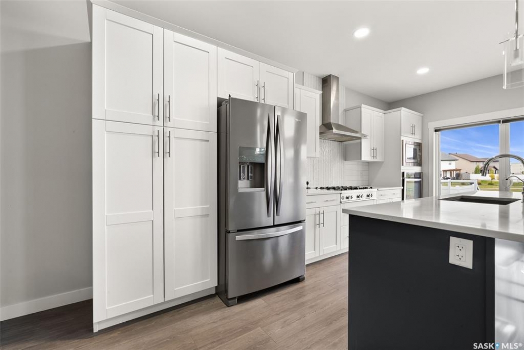 Welcome to this stunning 2031 sqft, two-story custom-built home by Glenrose, situated on a quiet crescent and backing directly onto serene green space. Constructed in 2018 on piles for superior stability, this "Grayson" model boasts exceptional features including a triple-car garage, triple-pane windows, and an open web floor truss system. You are greeted by a grand two-storey foyer that leads into a spectacular open-concept area, where the living room and dining room are flooded with natural light from ample windows and feature an impressive 18-foot ceiling. The stunning kitchen is an entertainer's dream, centered around a large island with quartz countertops, a tile backsplash, and high-end appliances including a 36" gas cooktop, built-in oven and microwave, dishwasher, and refrigerator. Patio doors off the kitchen provide a beautiful, uninterrupted view of the environmental reserve. Step outside to a low-maintenance, professionally landscaped backyard complete with a hot tub and a generous composite deck, perfect for relaxation and hosting guests. Practicality is ensured with a main-floor mudroom featuring a convenient laundry, discreetly closed off by a sliding barn door. Upstairs, discover a well-appointed bonus room, a luxurious master suite with a walk-in closet and a large ensuite, two additional spacious bedrooms, and a 4-piece bathroom—all bathrooms feature elegant quartz countertops. The massive triple-car garage offers abundant space for vehicles and a workshop. The fully ready-to-develop basement presents a fantastic opportunity to easily add even more living space to suit your needs. Don't miss your chance to own this impeccable home—call your agent to schedule a private tour today.