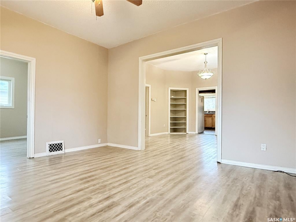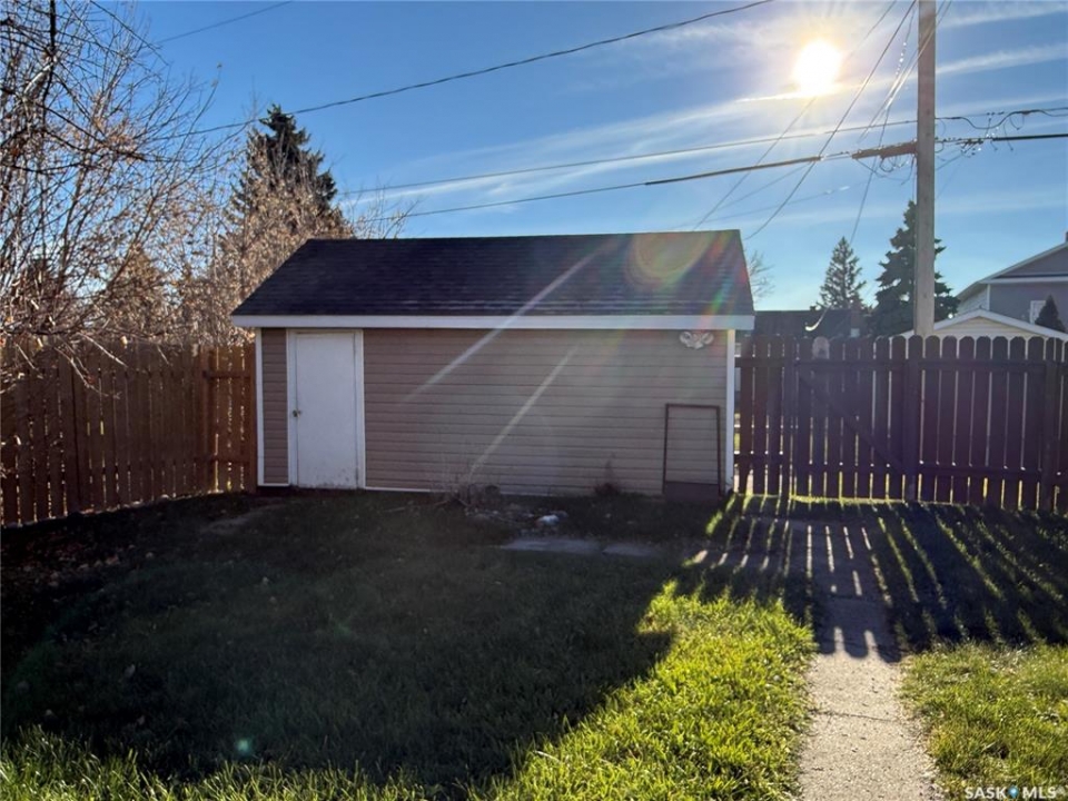Welcome to 337 4th Ave East in Melville, SK—a 1912 charmer that still knows how to make an entrance. From the moment you step onto the incredible covered verandah, the character of this home starts telling its story. Inside, you'll find high ceilings and a spacious dining room with a built-in corner display that adds a lovely touch of old-world charm. The living room and both bedrooms offer comfortable space to unwind, and the kitchen features classic oak cabinets along with a fridge, stove, and built-in dishwasher. The 5-piece bathroom feels surprisingly roomy with its double vanity, linen closet, and a jacuzzi tub that's ready for a relaxing soak at the end of the day. The partially finished basement provides extra storage space, along with laundry hookups—washer and dryer included. There's also a handy side entry porch that's heated with electric baseboard, giving you a great spot for a freezer or extra pantry storage. The 100-amp panel is conveniently located here as well. Outside, the fenced yard offers privacy, plus a 12 x 18 storage building for whatever you need to tuck away. The concrete driveway and sidewalk were completed in 2023, along with updated eavestroughing, central air conditioning, and new siding and shingles on the storage garage—all thoughtful touches that keep the home feeling cared for. If you've been looking for charm, comfort, and a place that simply feels right, this one is well worth a look. The price is right, and the character speaks for itself.