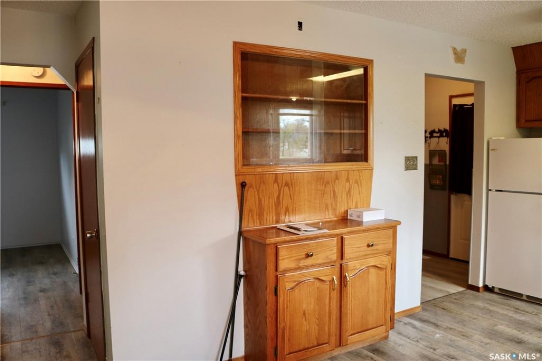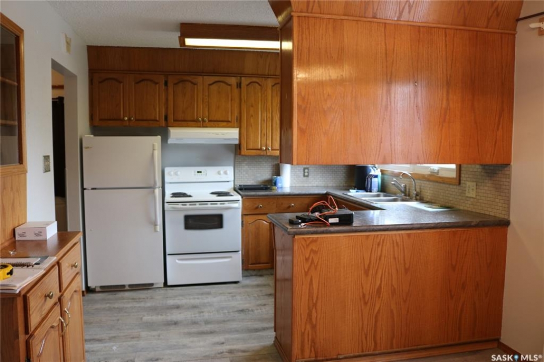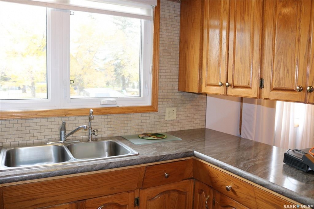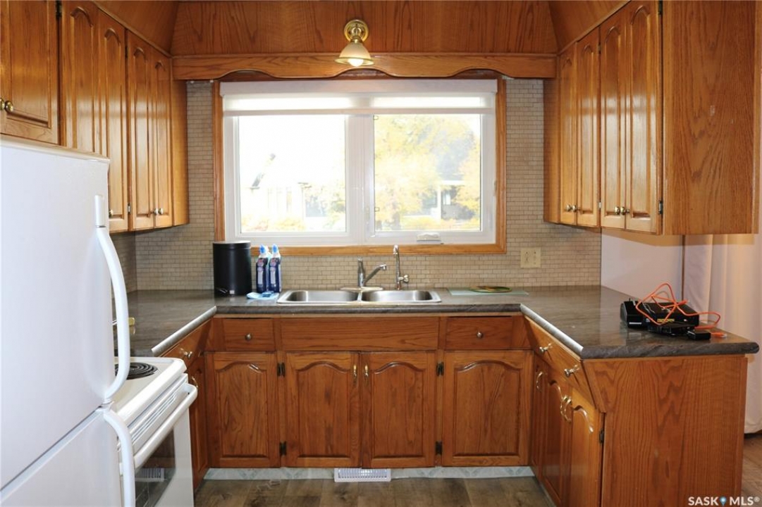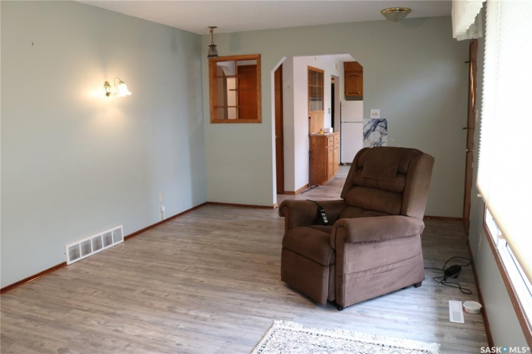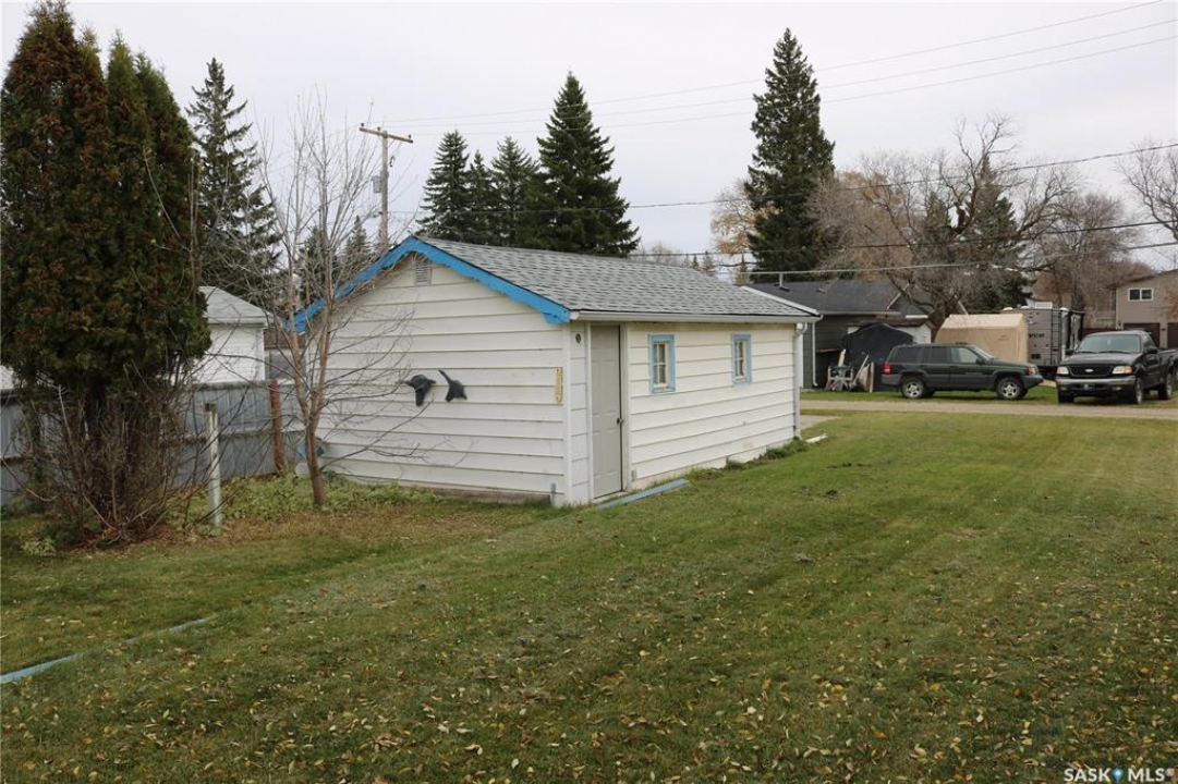 A lovely home in a great location, at a price you can afford! A covered deck is along the side of the home and leads you to the side entrance. Plenty of space at the entrance for all of your coats and shoes. Handy main floor laundry. The u-shaped kitchen has nice cabinetry and countertops and a bright dining area. The living room is a great size. Vinyl plank flooring throughout the main floor with the exception of the 4 piece bath. Two nice sized bedrooms. The basement is partially finished with a large area for a family room, lots of storage, additional bedroom, two piece bath and utility. Lovely yard with a detached garage with newer door and opener. There are two paved parking spots - in front of the garage as well as off the street. Great for a first time buyer or someone looking to downsize. Be sure to check this one out!
