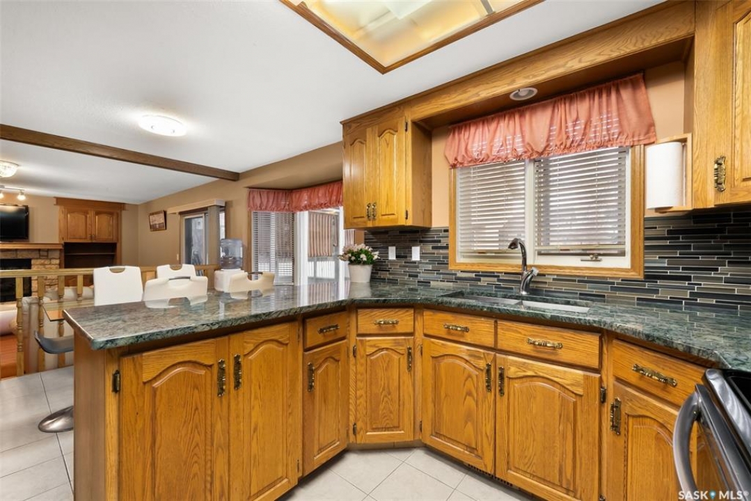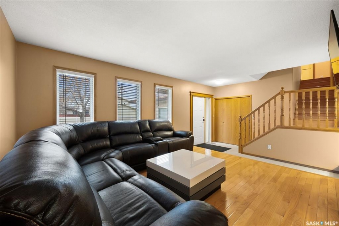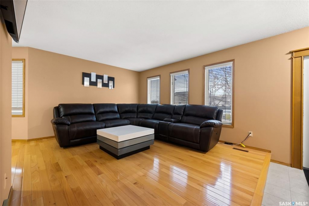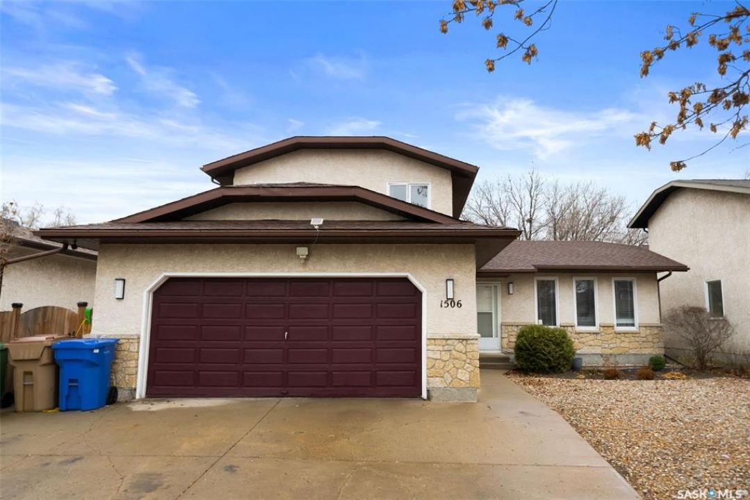 Welcome to 1506 Truesdale Drive East—an exceptionally well-kept, spacious two-storey split located in the heart of Gardiner Park. This solid home offers over 1,650 sq ft above grade, a warm and inviting layout, and excellent updates throughout. The main floor features a bright front living room with beautiful hardwood floors and three large windows that fill the space with natural light. The kitchen offers generous cabinet storage, updated stainless steel appliances and a modern tile backsplash. A cozy nook and a spacious formal dining room provide flexible options for everyday meals or hosting family gatherings. At the back of the home, the second living area includes a wood fireplace, built-in cabinetry, and direct access to the attached sunroom—perfect for enjoying extra living space year-round. Completing the main floor is a convenient bedroom, a 2-piece bathroom, and main-floor laundry. Upstairs you'll find three bedrooms and two bathrooms, including a comfortable primary suite with a 4-piece ensuite and a walk-in closet. The basement offers a massive open space with updated vinyl plank flooring—ideal for a future rec room, gym, games area, or additional bedrooms. Outside, the property is fully xeriscaped in the front for low-maintenance living, while the backyard provides a private retreat with mature trees, a sunroom, and access to the deck. The double attached garage is insulated, and the home sits in a quiet, family-friendly neighbourhood close to parks, schools, shopping, walking paths, and all East Regina amenities. A great opportunity to own a spacious, well-built home in a highly sought-after area—don't miss it!