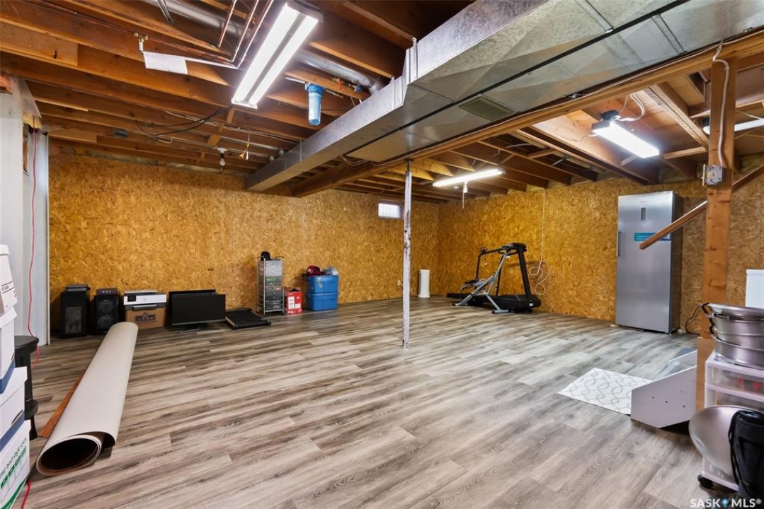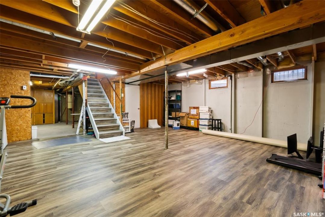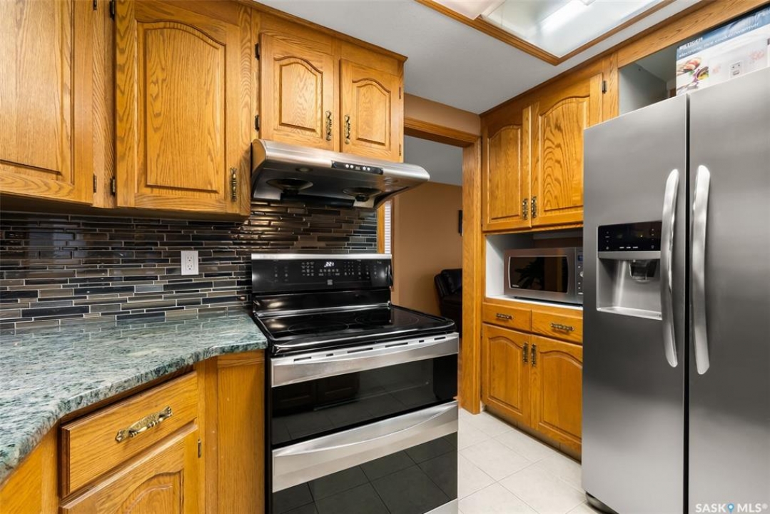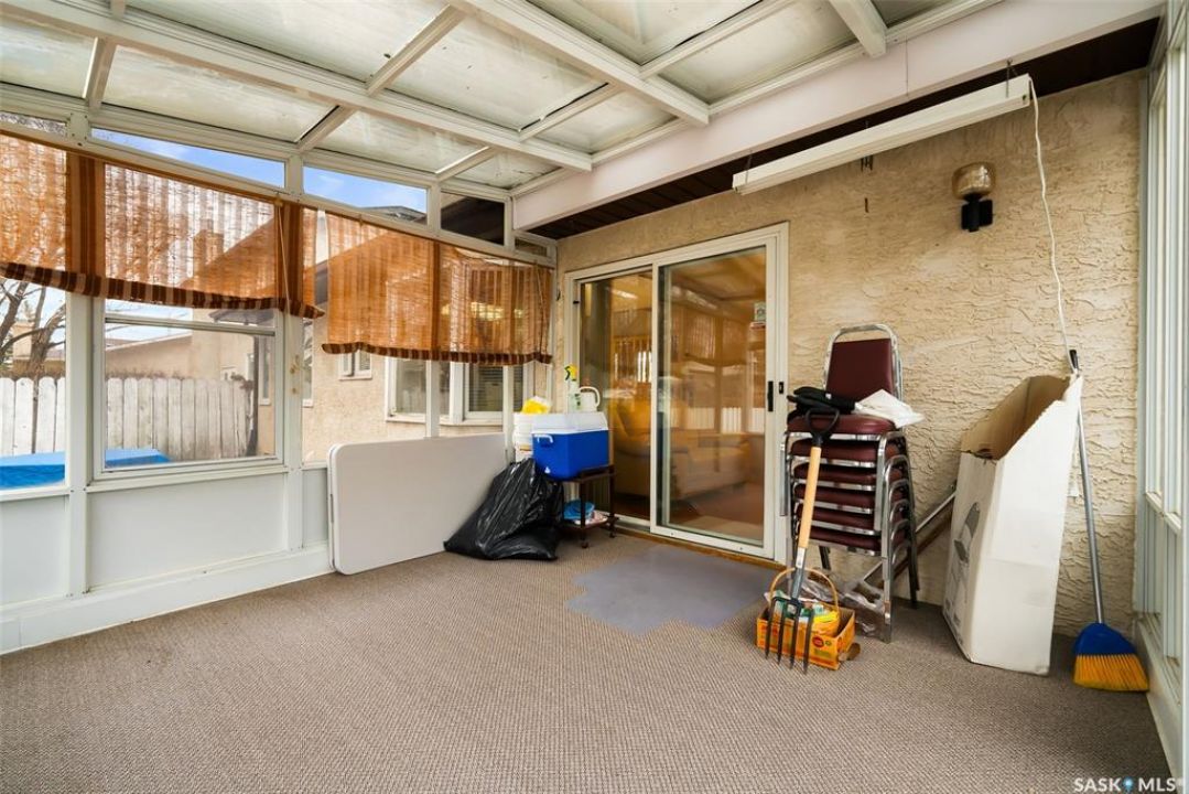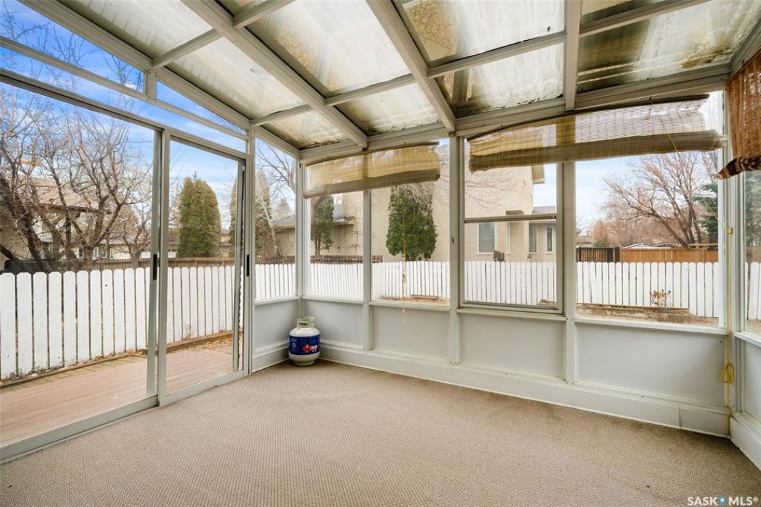 Welcome to 1506 Truesdale Drive East—an exceptionally well-kept, spacious two-storey split located in the heart of Gardiner Park. This solid home offers over 1,650 sq ft above grade, a warm and inviting layout, and excellent updates throughout. The main floor features a bright front living room with beautiful hardwood floors and three large windows that fill the space with natural light. The kitchen offers generous cabinet storage, updated stainless steel appliances and a modern tile backsplash. A cozy nook and a spacious formal dining room provide flexible options for everyday meals or hosting family gatherings. At the back of the home, the second living area includes a wood fireplace, built-in cabinetry, and direct access to the attached sunroom—perfect for enjoying extra living space year-round. Completing the main floor is a convenient bedroom, a 2-piece bathroom, and main-floor laundry. Upstairs you'll find three bedrooms and two bathrooms, including a comfortable primary suite with a 4-piece ensuite and a walk-in closet. The basement offers a massive open space with updated vinyl plank flooring—ideal for a future rec room, gym, games area, or additional bedrooms. Outside, the property is fully xeriscaped in the front for low-maintenance living, while the backyard provides a private retreat with mature trees, a sunroom, and access to the deck. The double attached garage is insulated, and the home sits in a quiet, family-friendly neighbourhood close to parks, schools, shopping, walking paths, and all East Regina amenities. A great opportunity to own a spacious, well-built home in a highly sought-after area—don't miss it!
