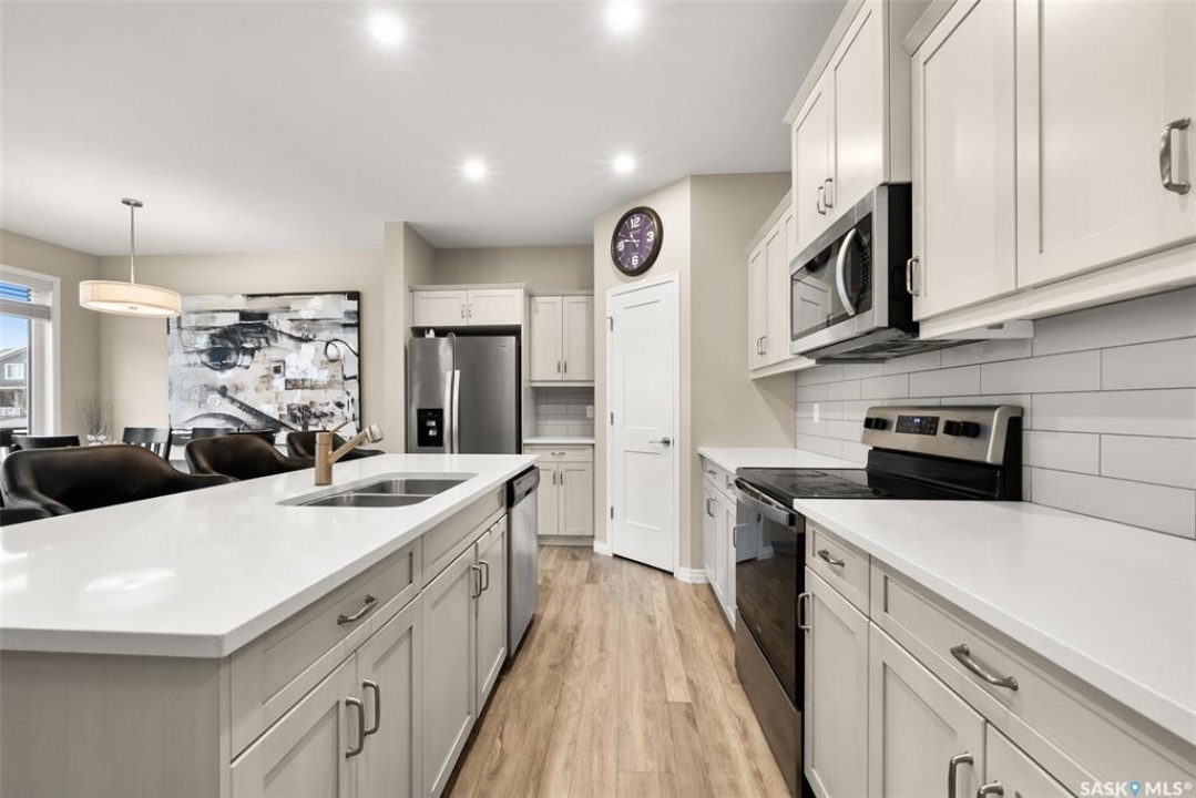 Welcome to 3104 Trombley Street conveniently located near shopping, restaurants, an elementary school, walking paths, parks & more. As you approach the home, you're welcomed with its charming facade and landscaped front yard. Upon entering you'll be greeted with 9' ceilings to the main floor, spacious front entry and a flex room, perfect for a home office, craft room or play room. The kitchen features an abundance of cabinetry & counterspace, stainless steel appliances, eat up island, quartz countertops, ceramic tile backsplash & a sizeable pantry. Adjacent to the kitchen is a dining room with a large window and garden door that overlooks the backyard. The open concept design seamlessly connects the dining area to the living room that includes a gas fireplace. As you ascend the wide stairs to the second floor, you'll be welcomed by an inviting front facing bonus room, 4 piece bath, a large primary bedroom with a spacious ensuite, which includes a soaker tub, separate shower and water closet. The 4 piece bath & ensuite are finished with quartz countertops, ceramic tile flooring & ceramic tile backsplash. Completing the 2nd floor are 2 additional nice size bedrooms and sizeable laundry room. This home is built on piles and there's a separate entrance to the basement. The basement is bright and airy with two large windows and is ready for development. Finishing off this beautiful home is a spacious backyard that is fully fenced and includes a deck off the dining room. Don't miss the opportunity to make this exceptional property your new home!