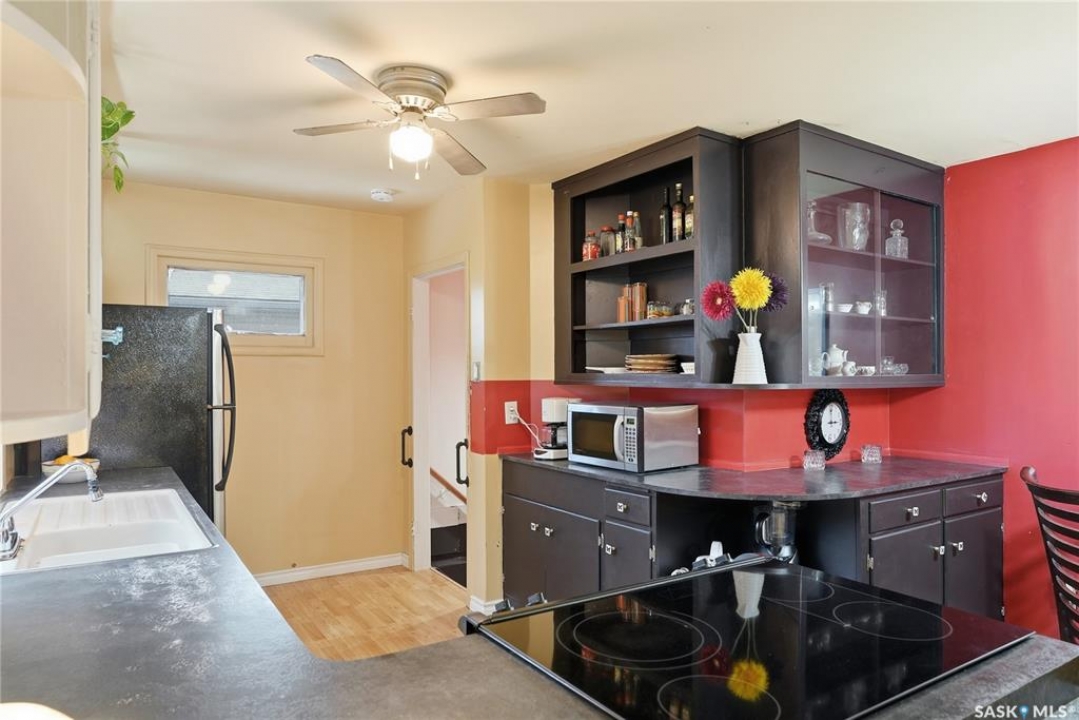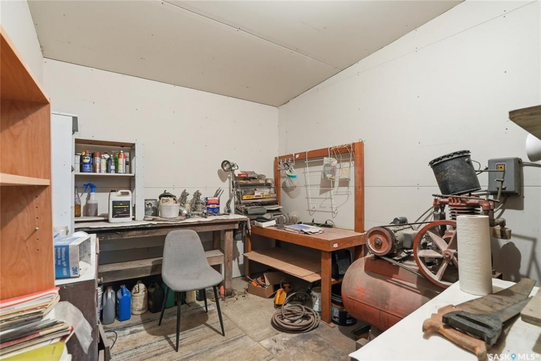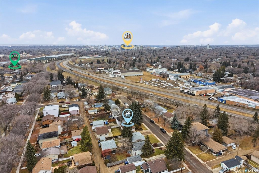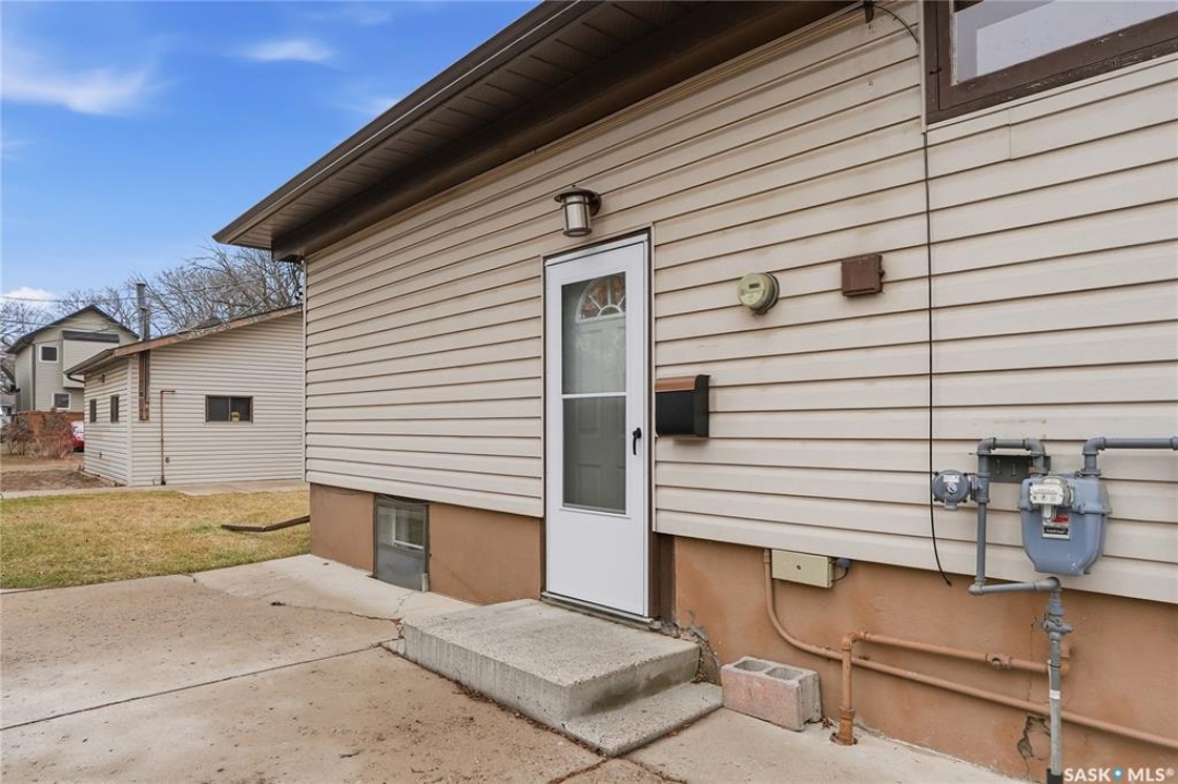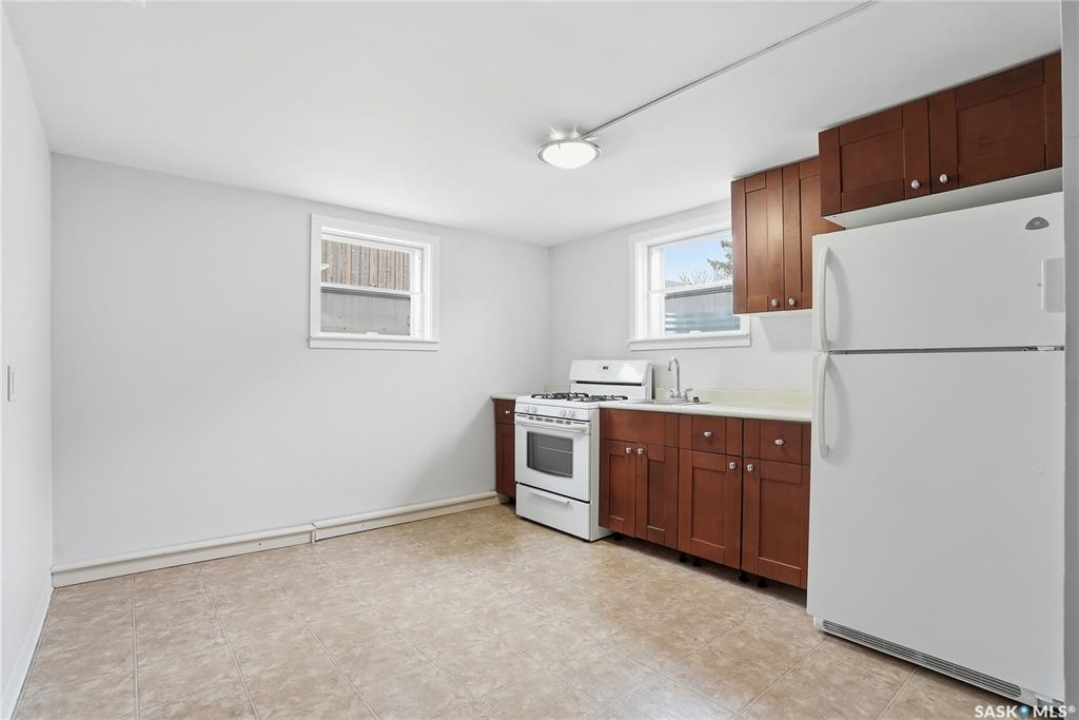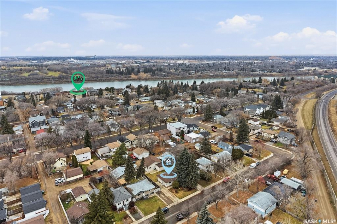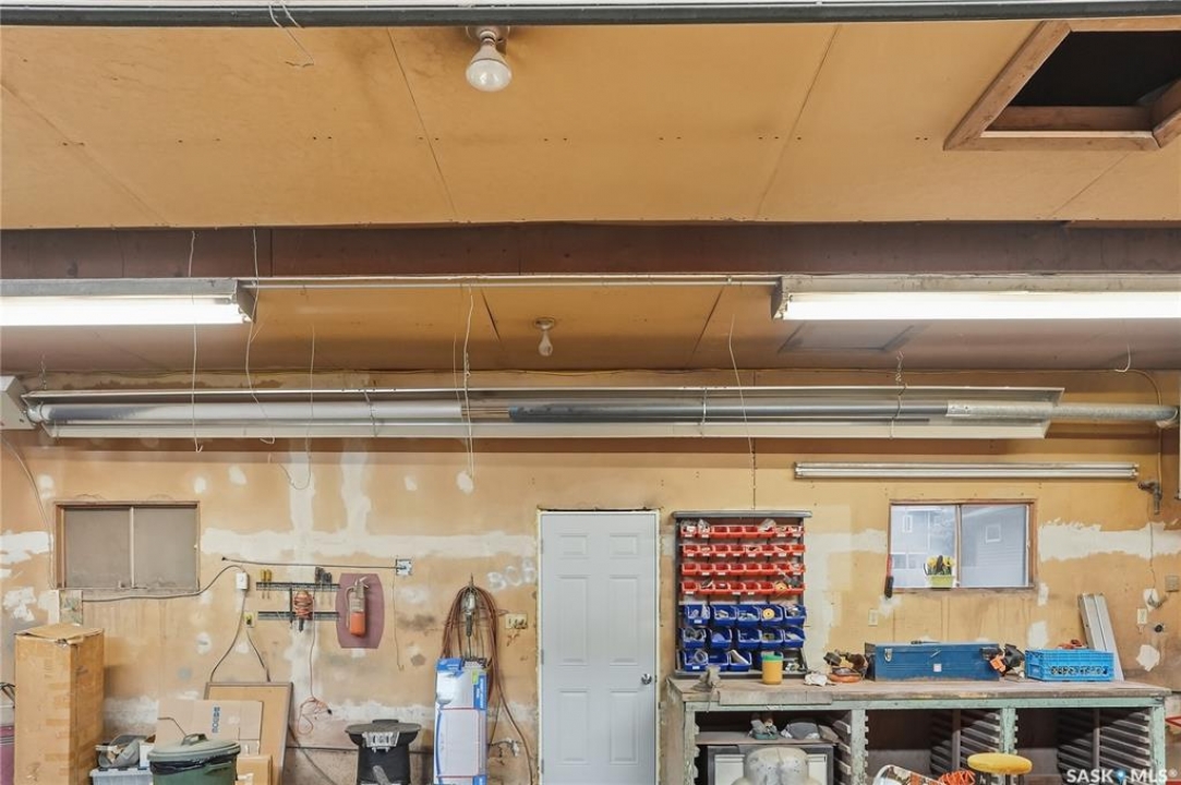 Excellent opportunity with this affordable Exhibition home featuring an open-concept living space, 2 bedrooms & 1 bathroom upstairs, and a 1-bedroom permitted legal basement suite. Located on a 50' R2-zoned lot with a mechanic's dream 34' x 24' insulated detached garage with radiant gas heat, an office, hoist mounting, & attached exterior storage shed. This is an excellent investment opportunity for those looking for affordable living, with revenue potential from both the basement suite & rental of the garage if desired. Plenty of off-street parking with the front driveway, rear outside parking for future basement tenant, and the garage. Shingles on home & garage have been replaced in the last 10 years, newer HE furnace & water heater, recently refreshed main bathroom with new paint. Don't miss out on this solid property - it won't be on the market long! No presentation of offers until 4pm November 24th as per Seller's direction.