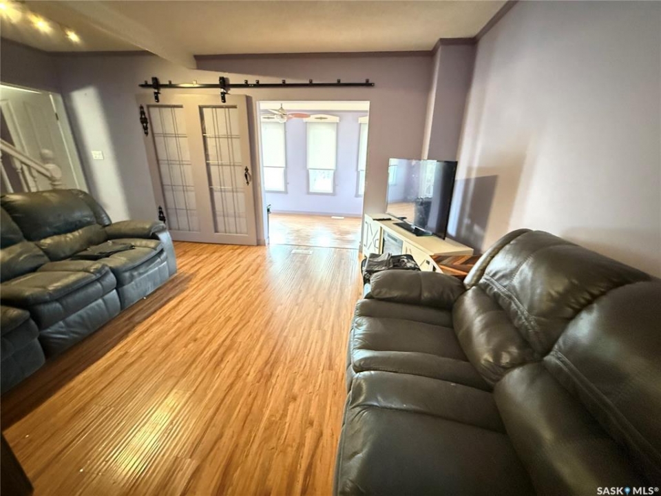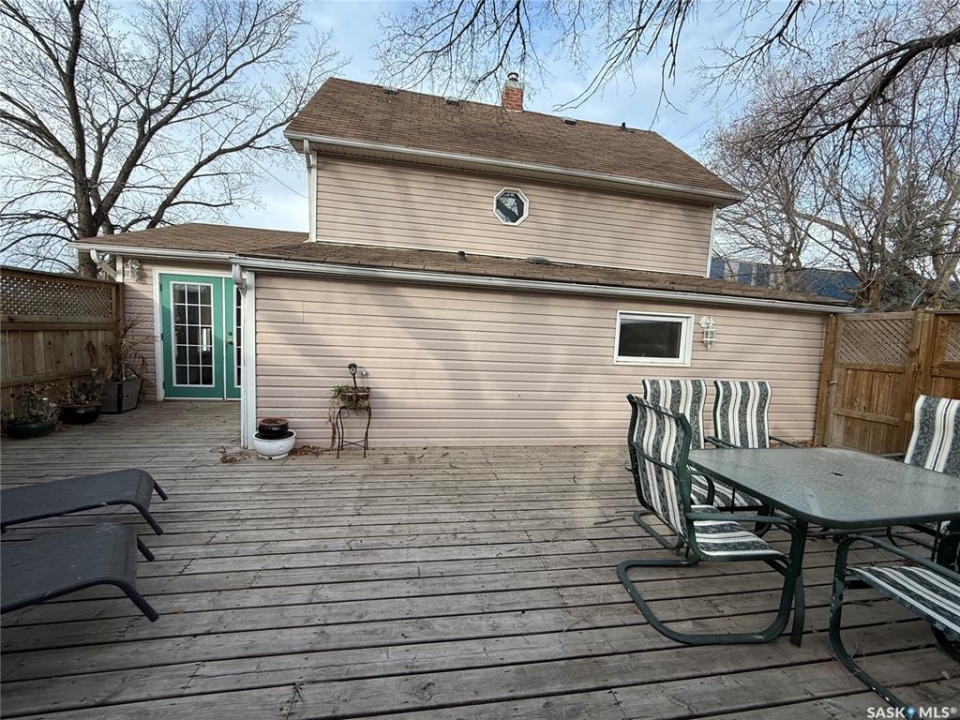 Super charming one and a half storey home in Estevan with a large fenced in deck and patio area perfect for summer enjoyment and entertainment. This home has a bright open kitchen and dining area that leads into a spacious laundry room with tons of room for additional storage. The living room is open to the four season sunroom which allows for extra space for the kids to play with direct access to the fenced in out door living space. The four piece bathroom completes the main. Upstairs there are two large bedrooms. The 32'x14 workshop is perfect for the handyman or hobbyist.