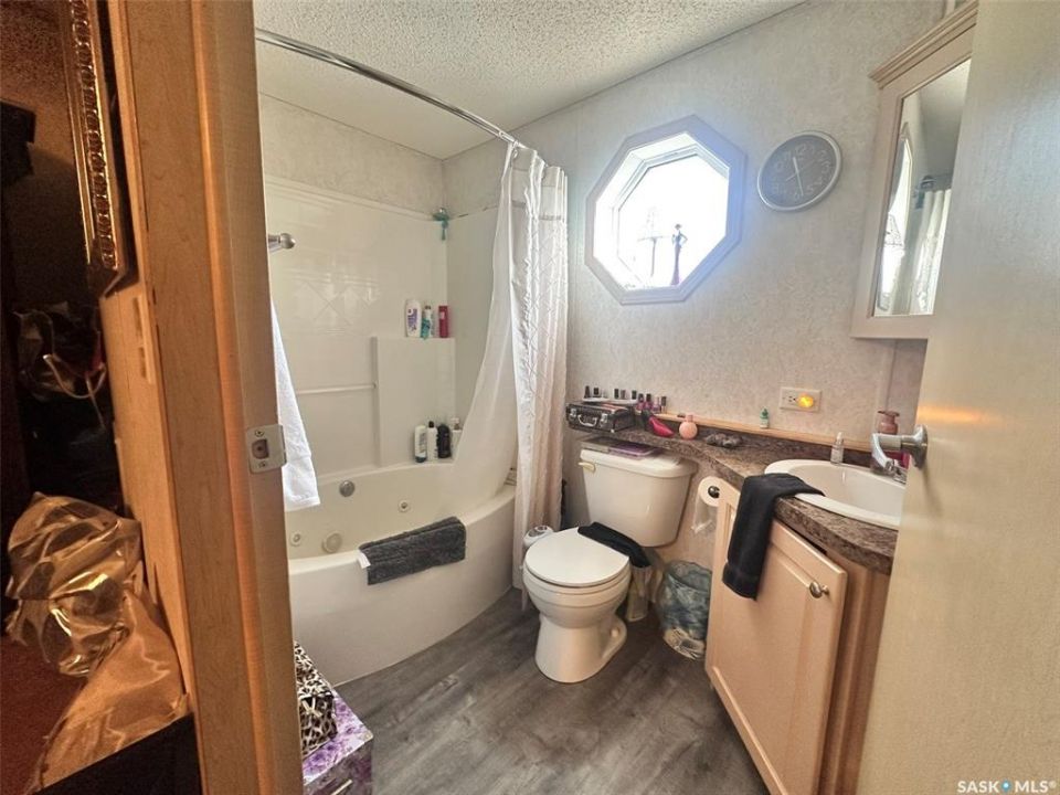 Located on the quiet east edge of the Town of Assiniboia, this beautifully maintained property is truly move-in ready. The home emphasizes open-concept living, featuring abundant natural light from large windows. The kitchen is fully equipped with an island, pantry, updated cabinetry, and upgraded stainless steel appliances. The desirable split-bedroom floor plan includes a luxurious master suite complete with a 4-piece ensuite bath (featuring a Jacuzzi tub) and a huge walk-in closet, while two additional bedrooms and a second 4-piece bath are situated on the opposite end—one of which also has a walk-in closet. Step outside to enjoy the extremely large deck, which measures approximately 32 feet long and is divided into an two areas one approx. 16x16 ft and another of approx. 16x10 ft, all while overlooking an unbroken prairie view. The deck also features convenient under-deck storage. For the hobbyist or car enthusiast, double detached garage (approx. 20 x 30 ft) is fully insulated, heated, and provides exceptional space, truly serving as the ultimate "Man Cave." Property bonuses include 2 storage sheds, RV parking with a 30-amp hookup, and a generator plug for back-up convenience. Home has insulated deck skirting and a thermal barrier underbelly.