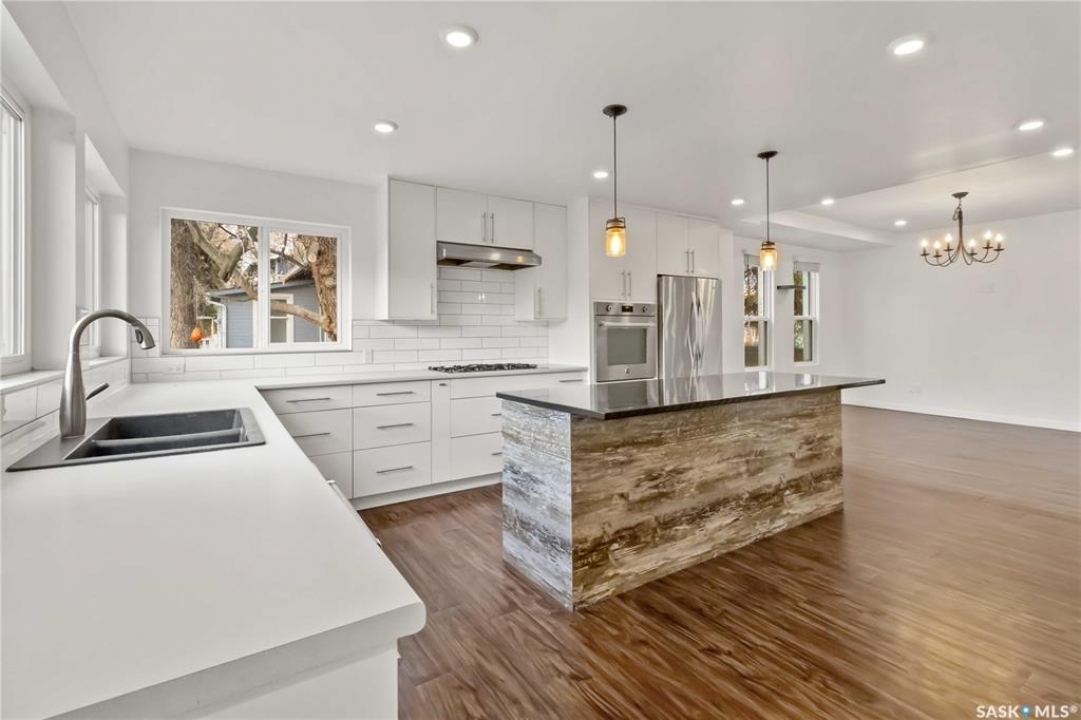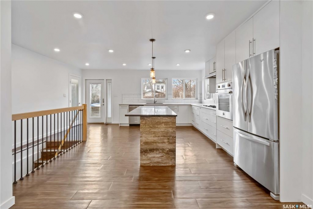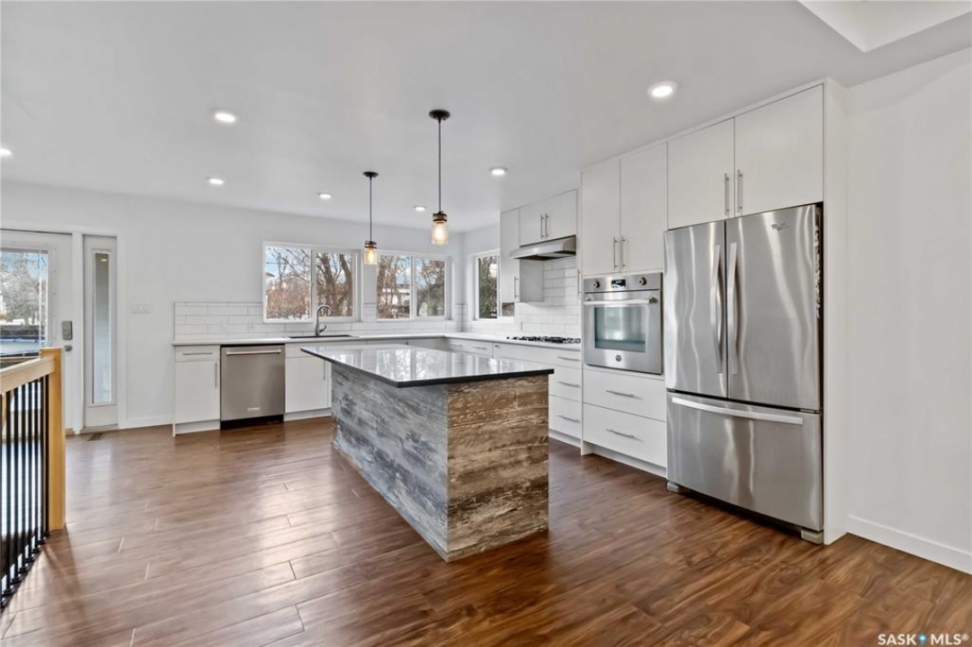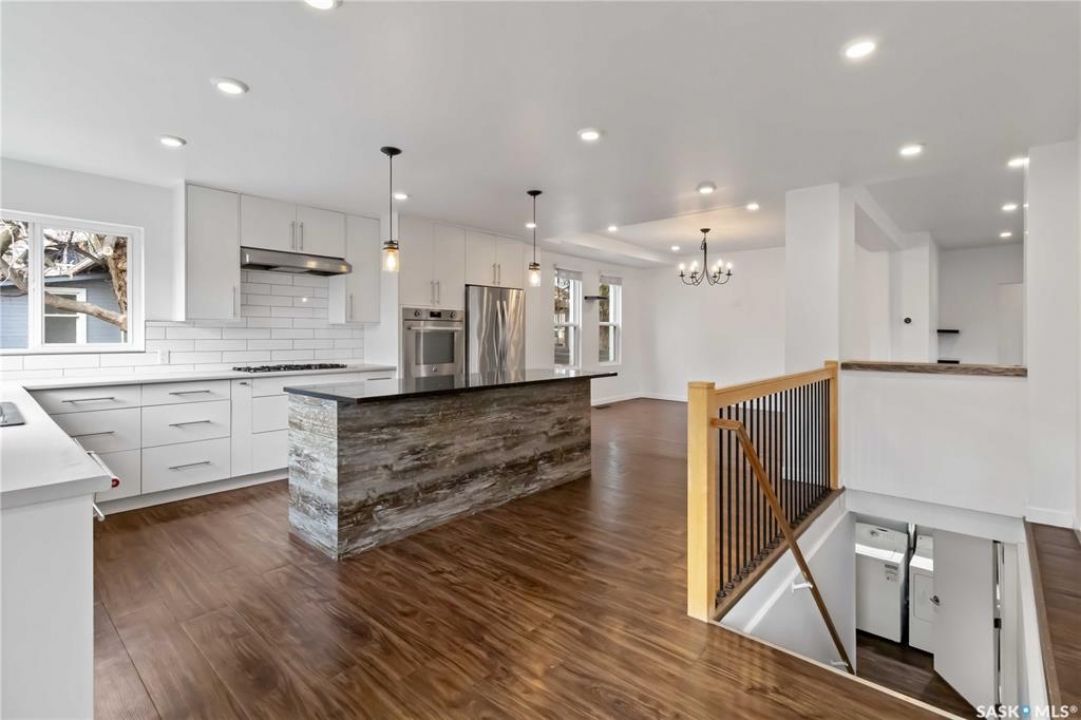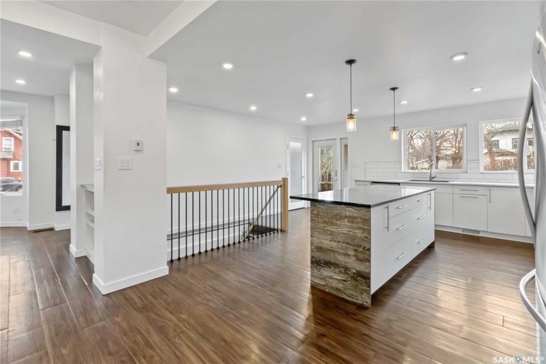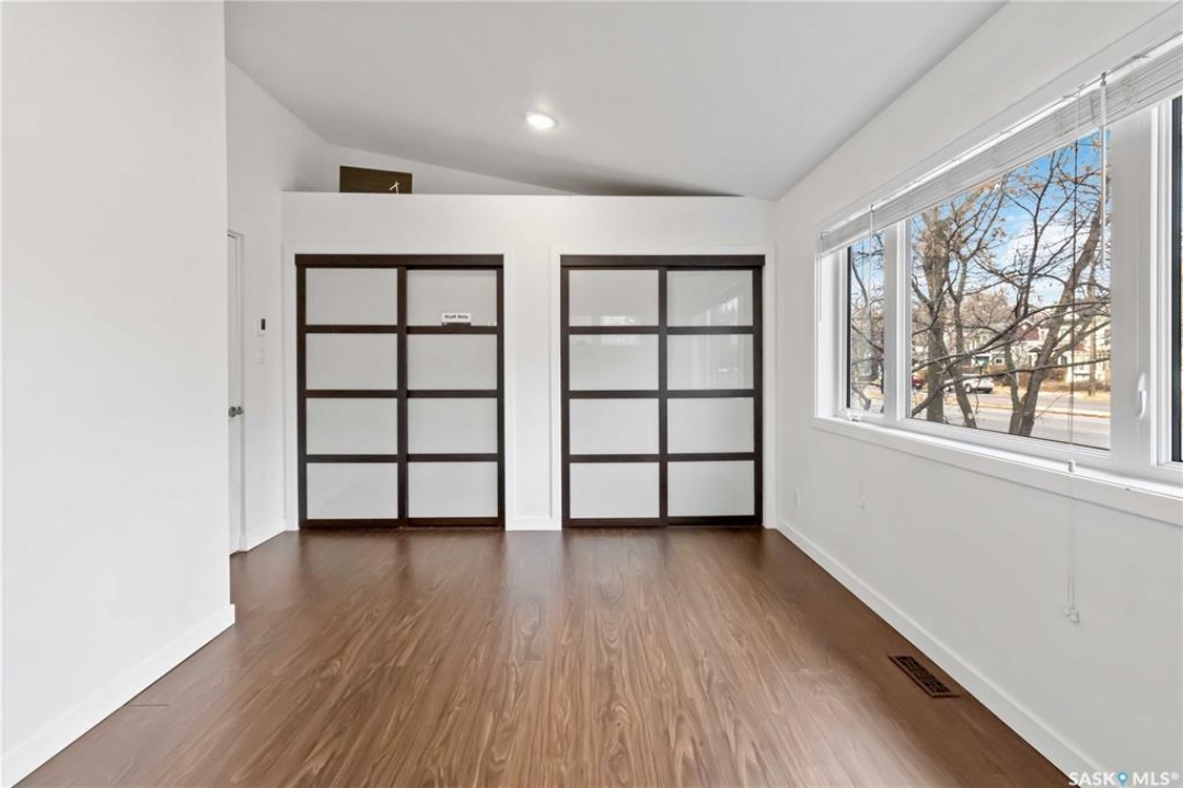 Located in Buena Vista, 438 8th Street East delivers updated, flexible living space for families, home-based professionals, or buyers seeking multi-use functionality. This property stands out with a rare combination of a non-conforming studio suite, a dedicated street-facing office with its own exterior entry, and a private primary retreat on the upper level. Sitting on an expansive 59' x 124' (7,475 sq. ft.) corner lot, this home also offers strong future potential, including suitability for BRT-related multifamily growth and plumbing already run to the rear yard for a future laneway suite. The main floor's open layout connects the living room, dining room, and kitchen, creating a practical space and allowing natural light to flow through. Off the main hallway are two bedrooms, a guest � bath, and a 4-pc bathroom, providing privacy and convenience. The front office space is ideal for running a business from home, offering visibility, privacy, and direct client access without interrupting the household. Upstairs, the primary suite is a private retreat with a beautifully finished ensuite featuring a one-of-a-kind steam shower. Directly off the primary bedroom is a 25' x 16' rooftop balcony overlooking the yard and Eastlake Avenue. The layout also supports the option for upper-level laundry. The basement adds further versatility with a non-conforming studio suite featuring a kitchenette, a 3-pc bath, and an open space that makes for a great studio setup. The basement laundry is located just before the suite entry at the bottom of the stairs. Set on a mature corner lot, the backyard offers ample room for kids, pets, gardening, and evenings around the firepit. With four bedrooms, modern updates, multiple access points, laneway-suite readiness, and long-term redevelopment potential, this property delivers strong value in a desirable neighbourhood close to Broadway, schools, parks, and amenities. Book your showing today!