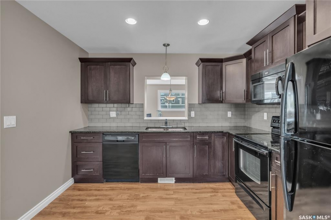 A Beautiful high-end townhouse for sale in sought-after Stonebridge! This stunning property offers 3 bedrooms, 4 bathrooms, and 1,467 sqft of fully developed living space, this well-maintained home is move-in ready and perfect for families or professionals. From the moment you enter the spacious front foyer, you'll be impressed by the thoughtful layout and natural light. The main level features a stunning, sunlit living room with soaring 12'6" ceilings, large windows, and patio doors that open to your private balcony—an ideal spot to entertain or enjoy your morning coffee while watching the sunrise. The second level showcases a stylish kitchen and dining area, complete with rich espresso cabinetry, stainless steel appliances, a tile backsplash, and a convenient 2-piece powder room for guests. Upstairs on the third level, you'll find all three bedrooms, including a generous primary suite with a walk-in closet and a 4-piece en-suite. An additional 4-piece bathroom completes this level. In the basement level, you will a family room with another 4-piece bathroom for your additional living space. The utility room and a storage room also locate on this level. Don't miss the video tour on YouTube, and contact your local Saskatoon REALTOR � today to schedule a private showing!