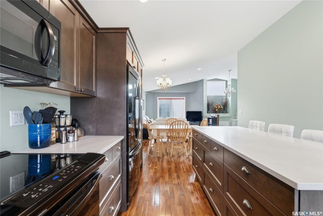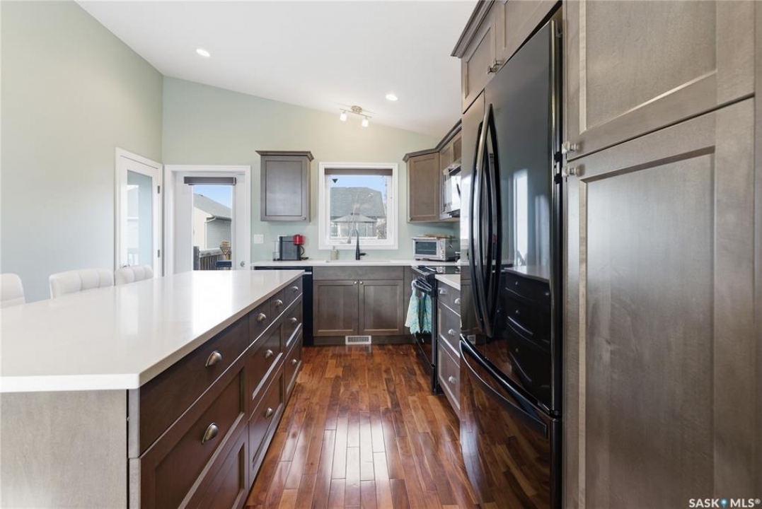 Welcome to 3290 37th Street West in the popular neighborhood of Hampton Village. When you step inside this 1,200 sq. ft. bi-level you'll immediately notice the vaulted ceilings that create a bright, open feel in the main living area. The rich acacia hardwood floors add warmth and character, while the granite countertops in the kitchen bring a touch of elegance to everyday living. The kitchen layout is spacious with a pantry and a large island for food preparation and a place for friends and family to gather. This home offers 3 bedrooms and 2 bathrooms, including a spacious primary suite complete with walk-in closet and private ensuite. The second 3 piece bathroom services the other two bedrooms on the main floor. The basement is open for development, with plumbing roughed in for a future bathroom—giving you the flexibility to expand as your needs grow. There is even room for a pool table as you can see from the pictures! BONUS - The pool table is staying with the house! Outside, enjoy a finished yard with trees and shrubs, and an attached deck, perfect for summer evenings. Attached to the house is the double garage with direct entry. The garage is a standout feature; boasting tall ceilings, an epoxy-coated floor for durability, and fully finished, insulated, and heated with a natural gas furnace. Located within walking distance to schools, parks, and close to all amenities, this property is ideal for families or anyone looking for a well-rounded home in a great neighborhood. This house won't last long! Call you're Realtor � to book a showing today!