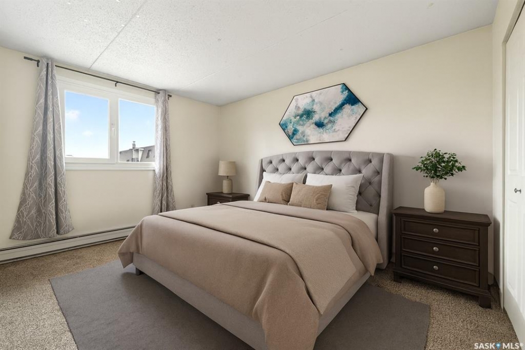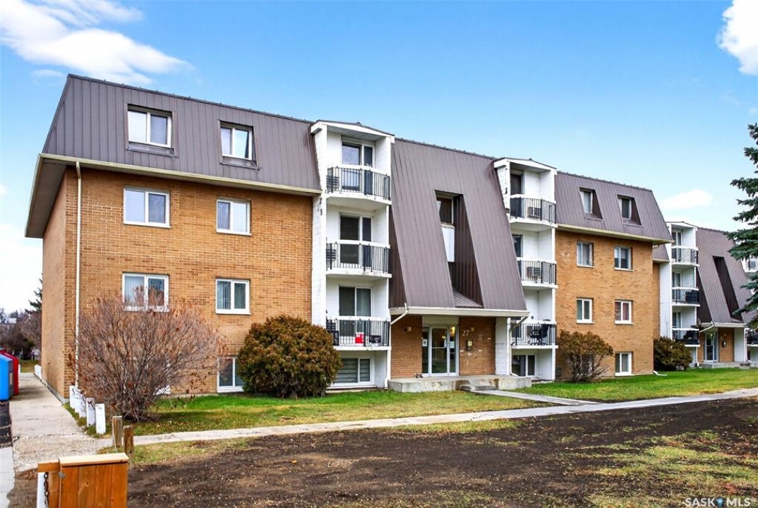Welcome to Unit 32 at 27 Centennial Street, ideally located in Hillsdale - just steps from the University of Regina and SIAST. This well-maintained two-bedroom condo has been freshly painted and features neutral flooring throughout. The bright living room offers plenty of natural light, high-end carpet, and a European door leading to a private balcony overlooking the courtyard. The functional galley-style kitchen comes equipped with a fridge, stove, and microwave. The master bedroom is a generous size, and both bedrooms feature newer closet doors. A spacious in-suite storage room adds valuable convenience. Laundry facilities are located on the third floor, adding ease and accessibility for future condo owner. This upgraded unit is close to all south-end amenities, public transit, and local restaurants - perfect for students, investors, or first-time buyers. Condo fees include: heat, water, snow removal, common insurance, and reserve fund contributions. Parking: One electrified parking stall included. A great opportunity in a prime location!