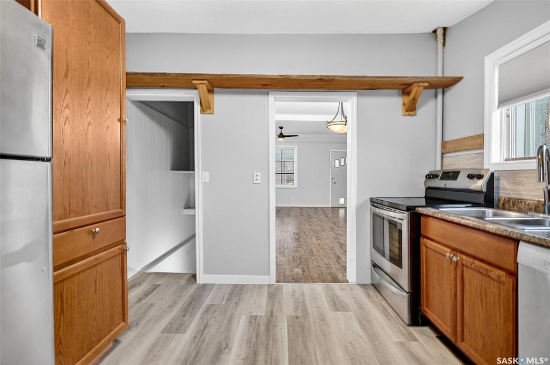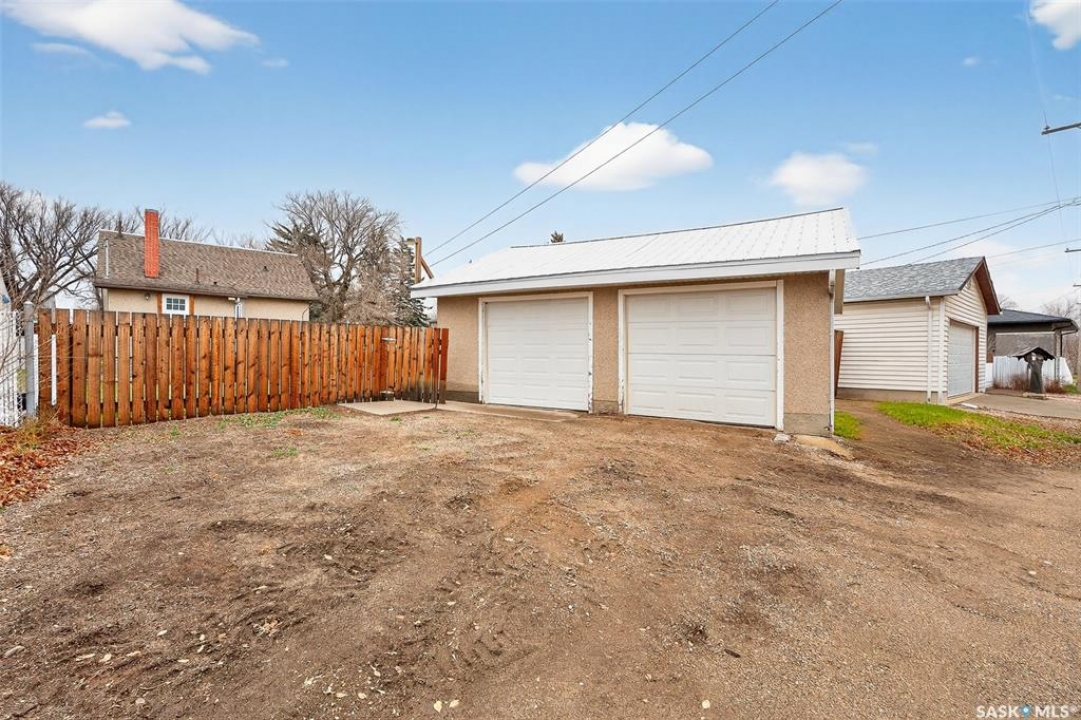 Check out this excellent home! Perfect starter home! This 2 bed / 2 bath home has lots of updates and a large double garage! Sitting on a large 50' x 125' lot this home shows well as you arrive. Heading inside you are greeted by a timeless sunroom - the perfect spot for your morning coffee. Next we find the living and dining space boasting 9 foot ceilings! Heading back we find a galley style kitchen with a stainless steel appliance package - off the kitchen we find a deck with access to your patio and firepit. Back inside on the main floor we find one of our bedrooms complete with a walk-in closet and main floor laundry. Finishing off the main floor we find an updated 4 piece bathroom. Downstairs we have a small office space, a spacious bedroom, 2 piece bathroom and a large workshop space. Outside there is a detached 22' x 24' garage that has power, is insulated and is setup for a fireplace for heat. So many updates have been done to this home! Pride of ownership shows well! Quick possession is available! Reach out today to book your showing!