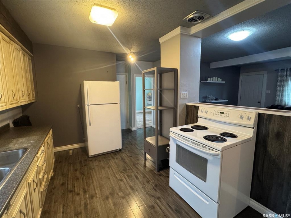 Enjoy easy, low-maintenance living in this nicely updated home just a short stroll from downtown. Designed for true single-level convenience, this inviting property offers a bright south-facing living room and a spacious kitchen with an adjoining dining area. Patio doors lead directly to the backyard deck—ideal for summer barbecues, morning coffee, or relaxing outdoors. The home features one bedroom and a four-piece bathroom with main-floor laundry for everyday practicality. Updates throughout—including flooring, fixtures, windows, and exterior doors—provide a clean, modern feel from room to room. A partial basement offers additional storage and houses the furnace and water heater. Outdoors, the fully fenced yard is a standout, showcasing a generous 42' x 10' deck, garden shed, mature trees, perennials, and plenty of green space to enjoy. Perfect for those seeking a simplified lifestyle, this home is conveniently located just a block and a half from the downtown core, half a block from the New Horizons Senior Center and medical clinic, and right across the street from the local library. A move-in-ready property in a prime location—book your viewing today!