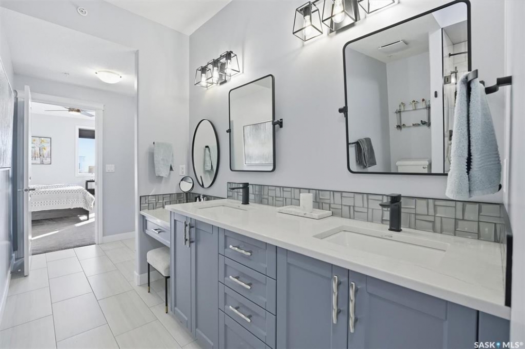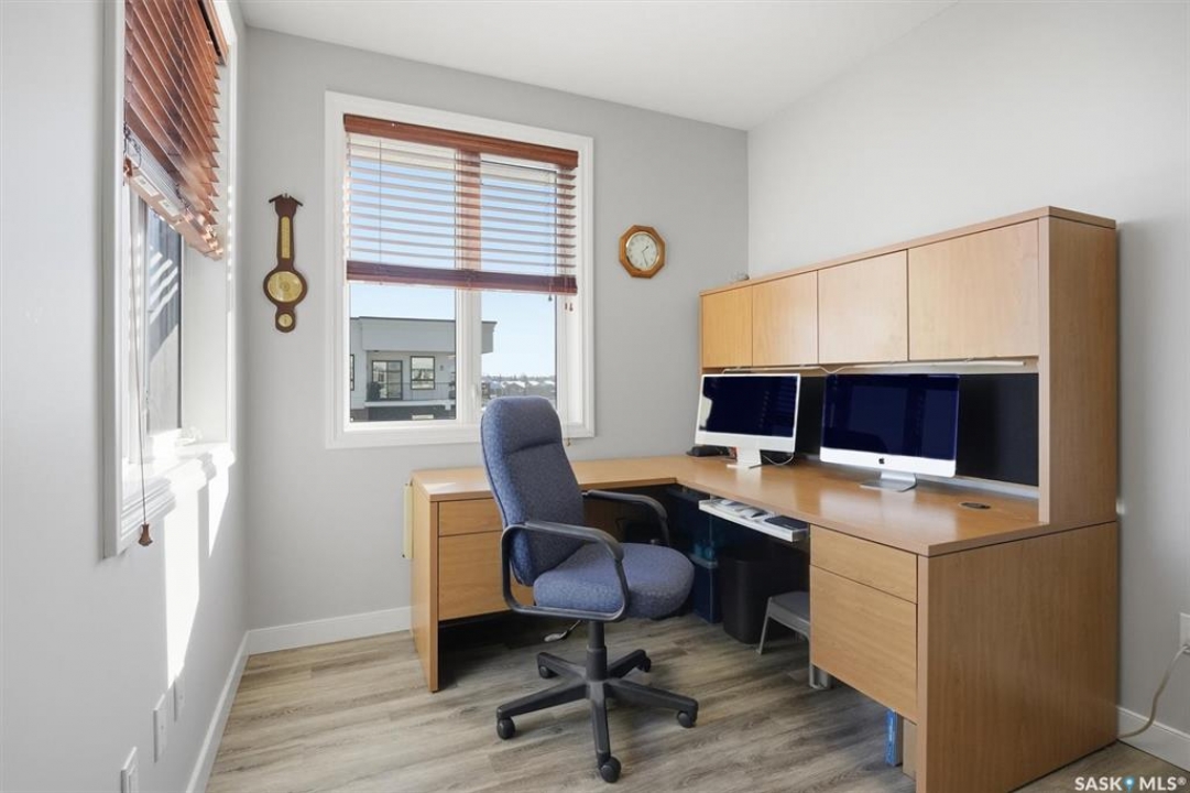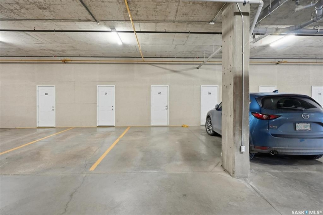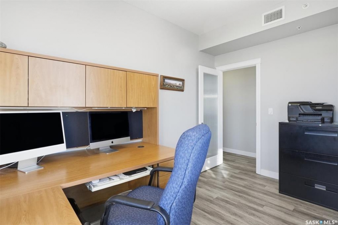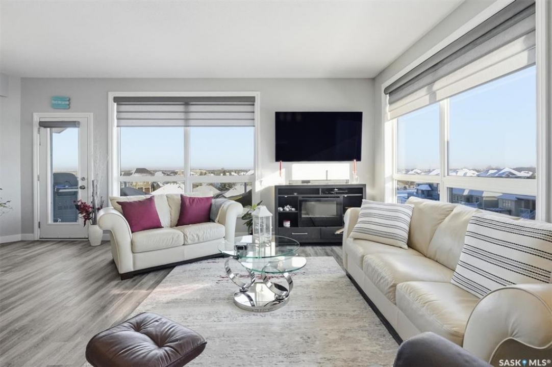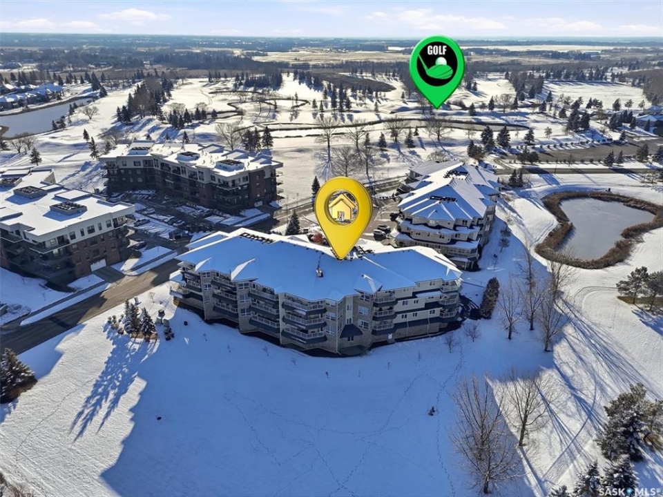 Discover this beautifully upgraded top-floor corner unit in Woodbridge II, a premier luxury condo building in The Willows by Valentino Homes. Enjoy spectacular views of The Willows Golf Course and the surrounding community, enhanced by abundant natural light from the south, east, and west exposures. With 1,565sqft �of living space, large windows, and 9-ft ceilings create a bright, open atmosphere throughout. The living room, dining area, kitchen, and den all feature upgraded luxury vinyl plank flooring and fresh paint. The stylish kitchen showcases refaced cabinets, quartz countertops and backsplash, a spacious island with a quartz waterfall feature, and stainless steel appliances—all seamlessly connected to the main living space. This unit includes two bedrooms plus a den, providing flexibility for work or guests. Both bathrooms are updated with ceramic tile flooring, new lighting, and quartz countertops. The primary suite stands out with upgraded built-in cabinetry, dual sinks with prep area, a full-sized shower, and a generous walk-in closet. Additional high-end upgrades include Hunter Douglas remote-controlled blinds—plus blackout blinds in the bedrooms—and a newer central air conditioning system. The laundry/storage room offers a newer washer and dryer and a custom cabinet with slide-out shelving. Step onto the deck to enjoy the views, complete with a natural gas BBQ hookup. Convenience continues with one underground parking stall, one surface stall, and an impressive two-level storage room offering nearly 100 sq. ft. of space. Pets are welcome with board approval. This exceptional unit delivers comfort, style, and an unbeatable location in one of Saskatoon's most desirable communities.