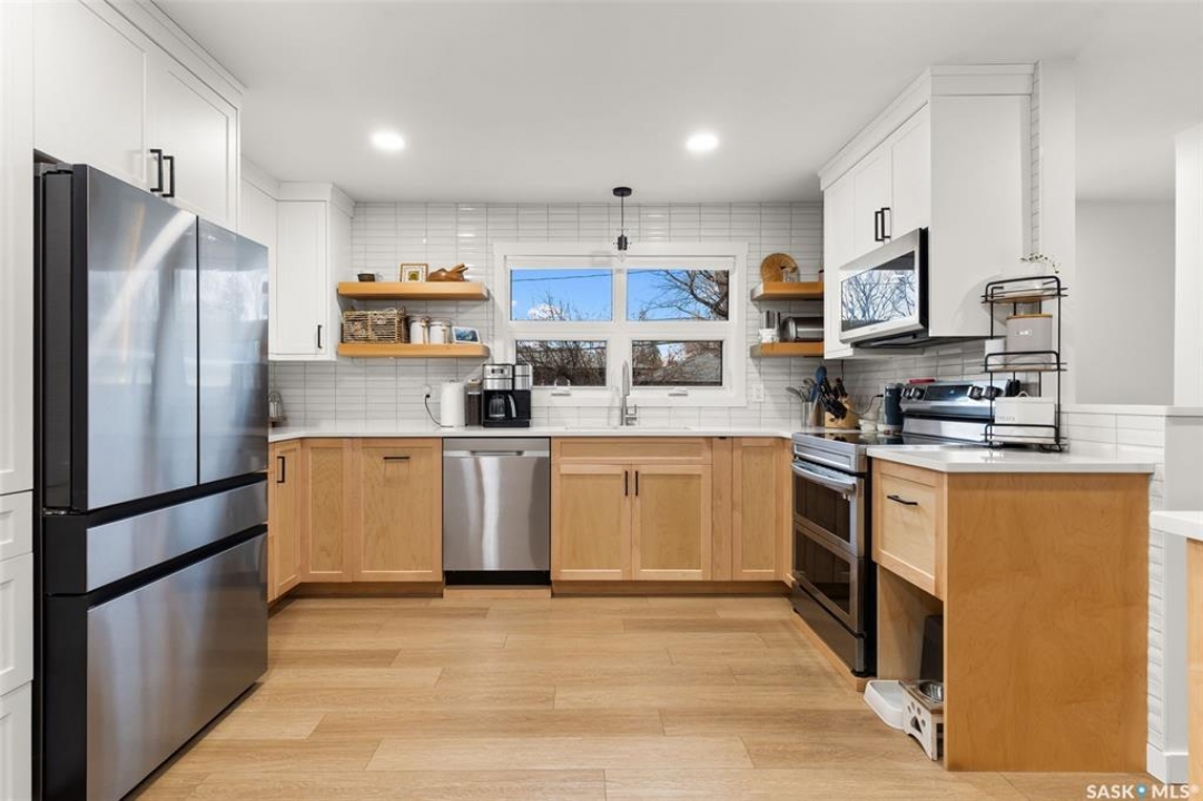 Welcome to 97 Darke Crescent, a beautifully updated bungalow located in the highly desirable Hillsdale neighbourhood. Surrounded by excellent amenities, you'll enjoy being just minutes from schools, churches, restaurants, Wascana Centre, and quick access to Ring Road. Inside, the home offers a bright and inviting layout with tasteful updates throughout, including a stunning kitchen featuring new appliances and quartz countertops. The basement adds exceptional value with a massive fourth bedroom, perfect for guests, teens, or a private workspace. Outside, you'll find a private backyard ideal for relaxing or entertaining, along with an oversized car-and-a-half garage providing plenty of storage and parking space. This is a fantastic opportunity to own a well-kept home in one of Regina's most sought-after areas—don't miss it!