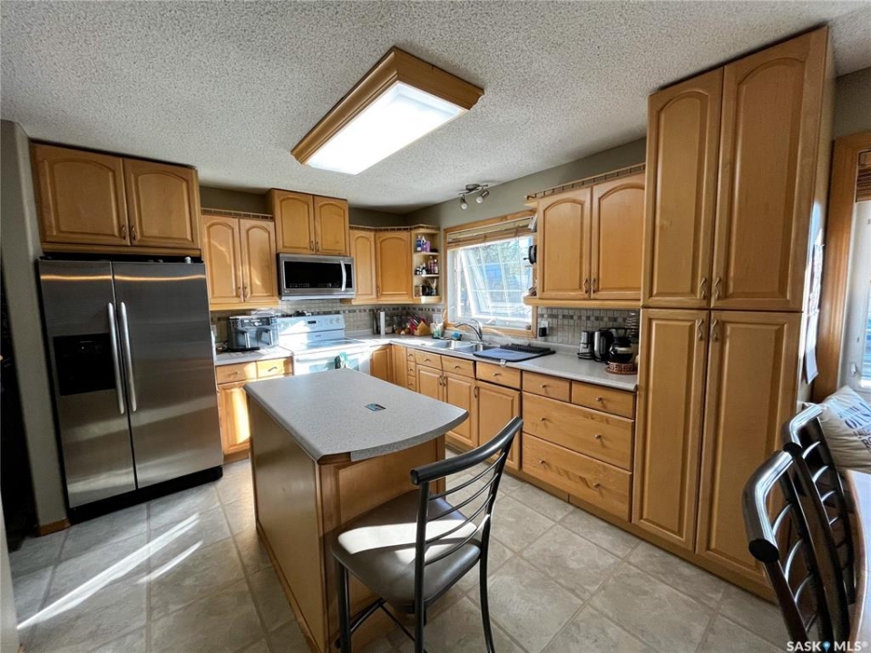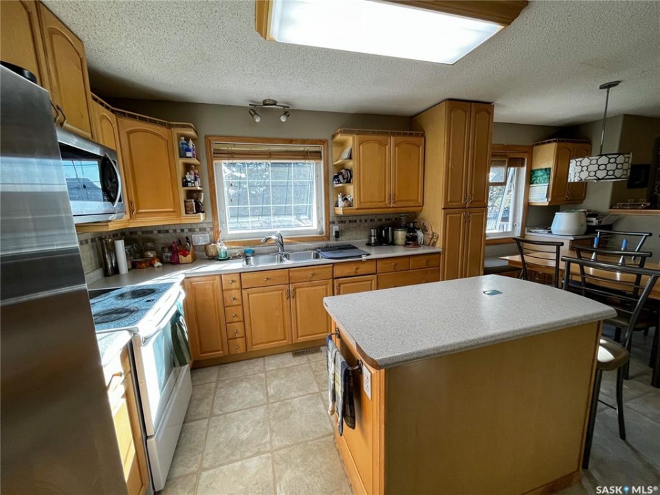 Fully finished 4 bedroom, 3 bathroom beautiful home with 2 garages! Welcome to Saltcoats! A family, friendly, quiet community just 15 minutes east of the City of Yorkton off highway 16. You get more house for your money here! It has a great school and teachers, a curling rink, great watering hole gathering place, beautiful ball diamonds, a skating rink and a lake right in the community that is adjacent to the Saltcoats District Regional Park. There is definitely pride of ownership in the community and especially when you drive down Allan Ave! This home is a hidden gem! You can drive right into your gas, heated & insulated 10ft ceiling, attached garage and enter the foyer which is visible to the bright open kitchen complete with maple cabinets and a custom matching maple table, chairs and window seat which also is included in the sale. The kitchen is open to the living room which leads to your patio doors and a beautifully shaded front porch deck. All 3 bedrooms on the main are a nice size and the primary includes a walk-thru closet into a 3 piece ensuite. The basement includes the 4th bedroom and 3rd bathroom for your growing family or guests. Need storage? There is lots both inside and out. On the outside, you have a beautiful large backyard which includes a patio area, raised garden, and an additional detached garage/shop at the back of the property, accessed by your lane. Some HIGHLIGHTS: 200 amp service, two garages (attached built 2002), Outside front deck, patio, beautiful large yard, bonus custom table included, updated water tank, updated furnace, smart, built in sound system, NEW shingles 2020, NEW Maytag oven w/air fryer, NEW dishwasher, Steel roof on detached, Sasktel internet, all LED lights and RO town water system. This house is well looked after, flows nice and is warm and welcoming. Contact an agent for your private tour of your new home!