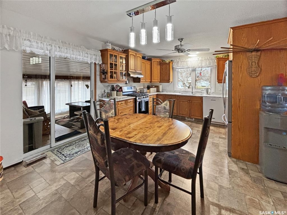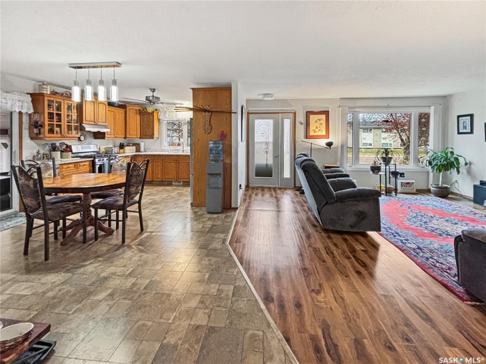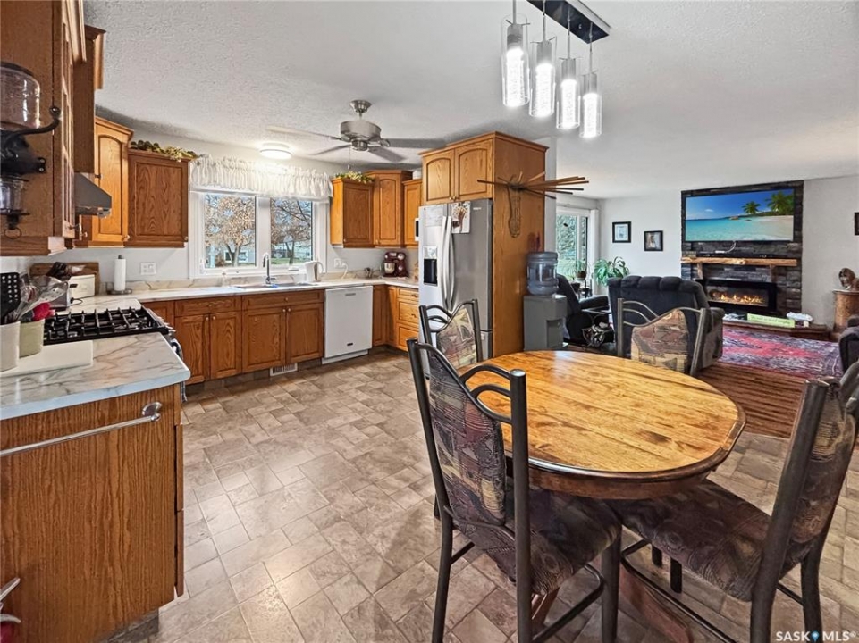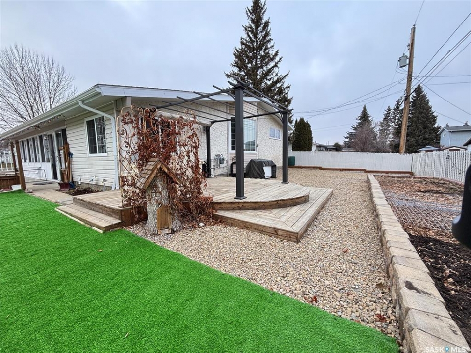 Welcome to 1232-111 Street! Not often do you find homes like this. With the home sprawling almost 1500 sq ft and the lot spanning over 10,000 sq ft, a large U shaped parking area for multiple vehicles, RV parking and an oversize single garage, and very minimal yard work required, this home offers it all. Step into the living room that is complete with a large window overlooking the front yard and a modern electric fireplace with stone surround. The kitchen boasts a 5 burner gas stove, tons of counterspace and cupboards and is conveniently open to the dining area and access to the sunroom. The main floor features 3 bedrooms, including one room that includes a large desk that can easily be removed and one room that is showcased with a stunning bay window that overlooks the back yard and a walk in closet. Take a few steps down from the main level and prepare to be wowed with the convenient laundry area, 2 piece bathroom and another room that is tucked away and is kept cozy with a natural gas fireplace - it is currently being used as an office but the options for use are vast. Enjoy the outdoors without being outdoors in the beautiful and huge sun room (approx 400 sq ft of usable space). If all this space isnt enough, the basement features multiple, huge, living spaces, 2 large storage rooms, a 3 piece bathroom and a den that is currently being used as a guest room. This home features a low maintenance outdoor space with astroturf currently in a small area and gravel and raised flower beds in the rest of the backyard. The garage is perfect for any handy person, with enough room for 1 vehicle and more room for toys and tools, all while staying warm with the natural gas furnace. Some notable improvement in recent years include: hot water tank (2018), preventative drainage landscaping, triple glaze windows in kitchen and living room (2023), gas line to stove, fridge (2024), kitchen countertops (2024) sink and faucet (2024), shingles and eaves on house and garage (2023).