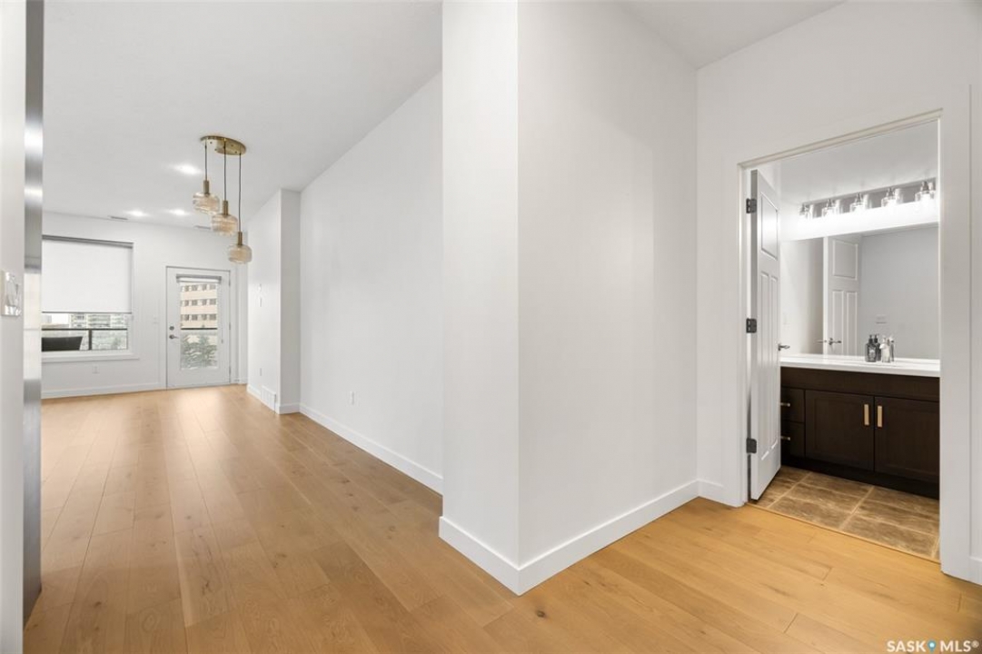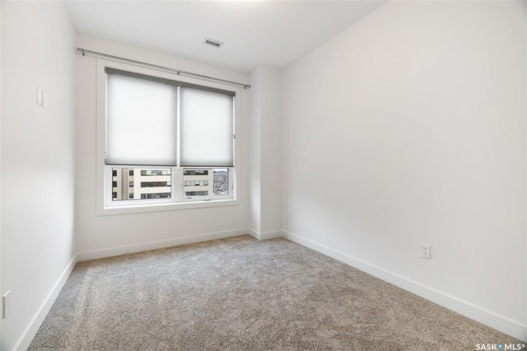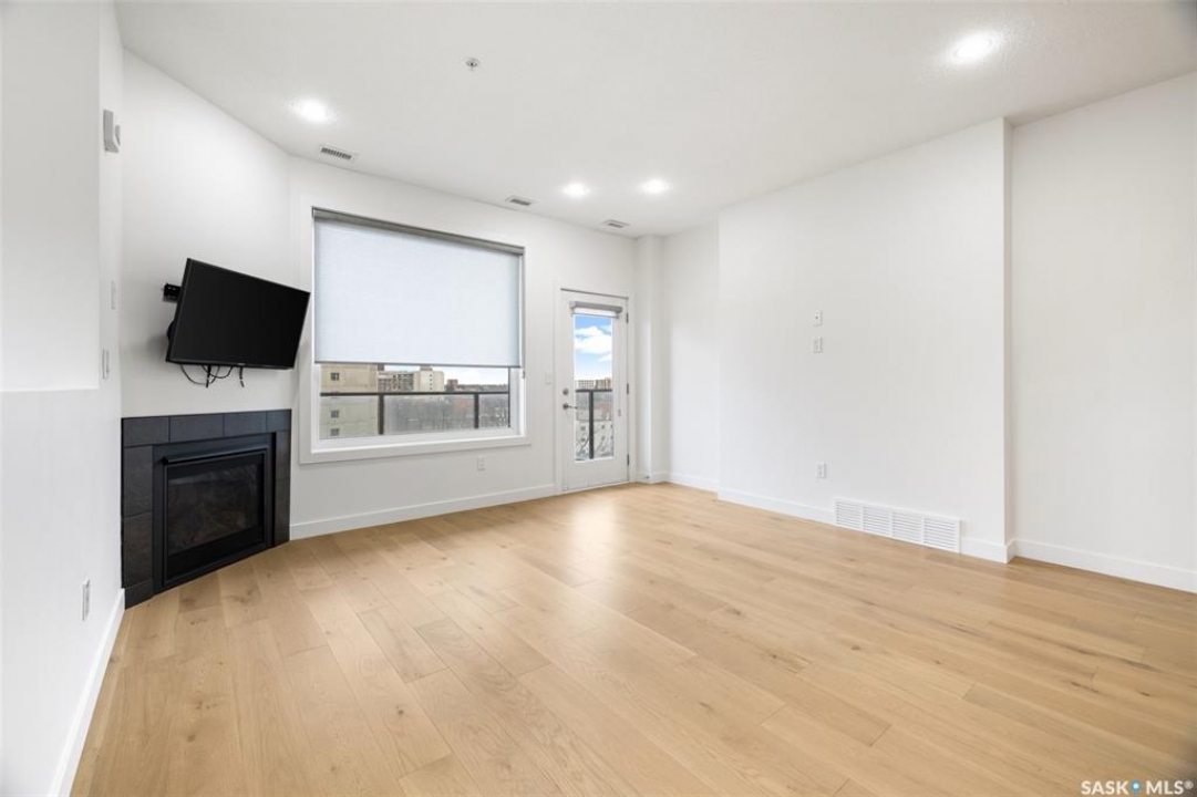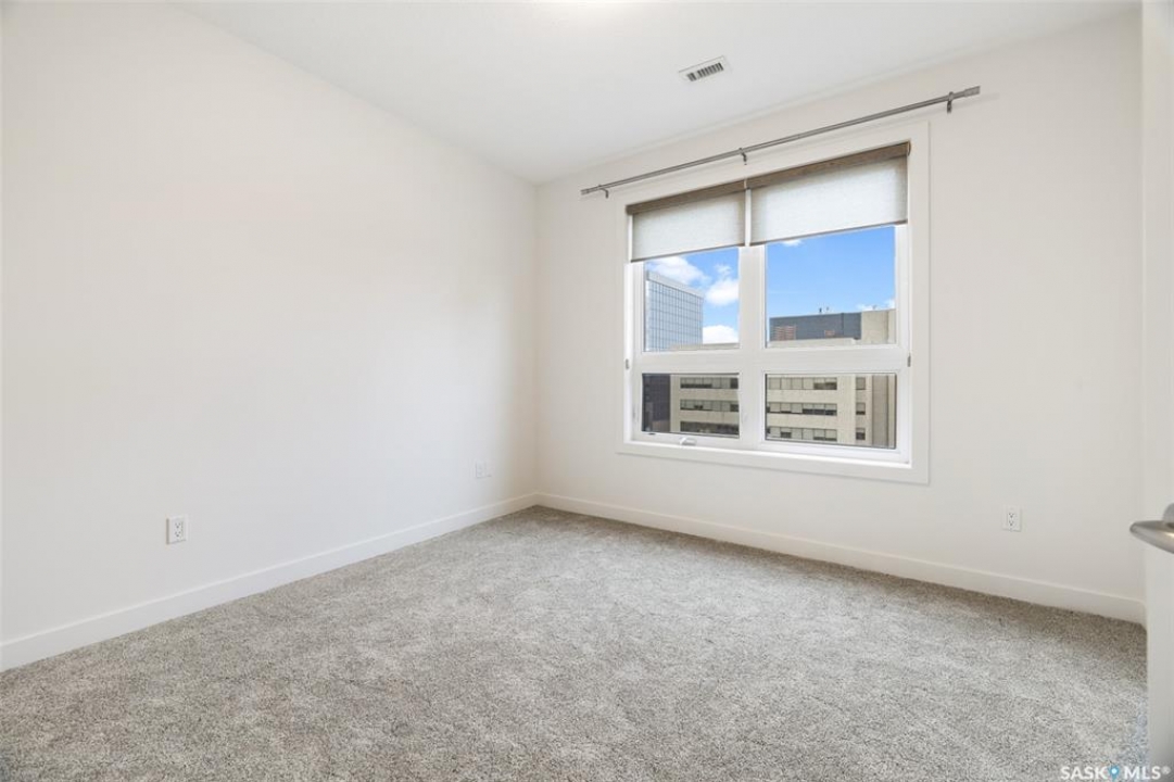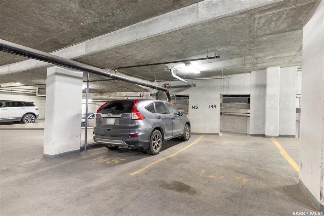 Welcome to The Gardens on Rose, where luxury meets convenience in the heart of downtown. This beautifully renovated 2-bedroom, 2-bathroom condo sits on the 6th floor with impressive city skyline views and a bright, open-concept layout. A major renovation completed in September 2025 brings a fresh, modern feel throughout the home. Updates include engineered hardwood flooring, plush carpet in the bedrooms, new paint and baseboards, countertop adjustments, new stainless-steel stove and dishwasher with fridge only 2 years old. The kitchen features rich cabinetry, stone counters, a large island, and stylish pendant lighting, opening seamlessly to the living and dining areas. A cozy gas fireplace, oversized windows, and access to the private balcony make the main living space both warm and inviting. A dedicated office nook is ideal for working from home. The spacious primary suite offers a generous walk-through closet and 4-piece ensuite. The second bedroom is perfect for guests or a roommate, with a full bathroom nearby. Enjoy the convenience of in-suite laundry. A rare offering downtown, this unit includes TWO underground parking (heated) stalls, adding exceptional value and peace of mind. Residents enjoy premier amenities: a rooftop fireplace lounge, rooftop gardens, a spa-inspired hot tub area, fitness centre, and a main-floor coffee and pastry bar. The building is secure and fully equipped with elevators. Move-in ready and thoughtfully upgraded, this condo delivers modern living, urban comfort, and amenities you won't find anywhere else downtown. Some Virtually Staged Photos are labeled.