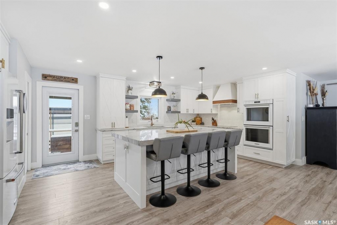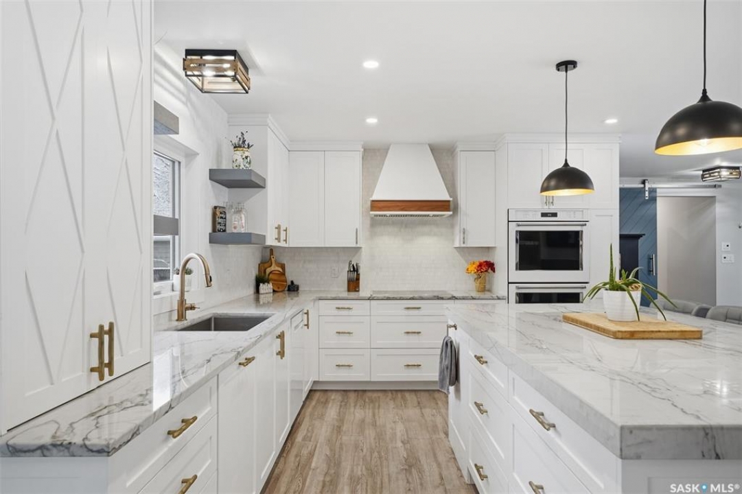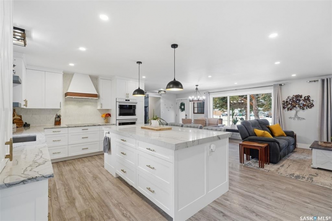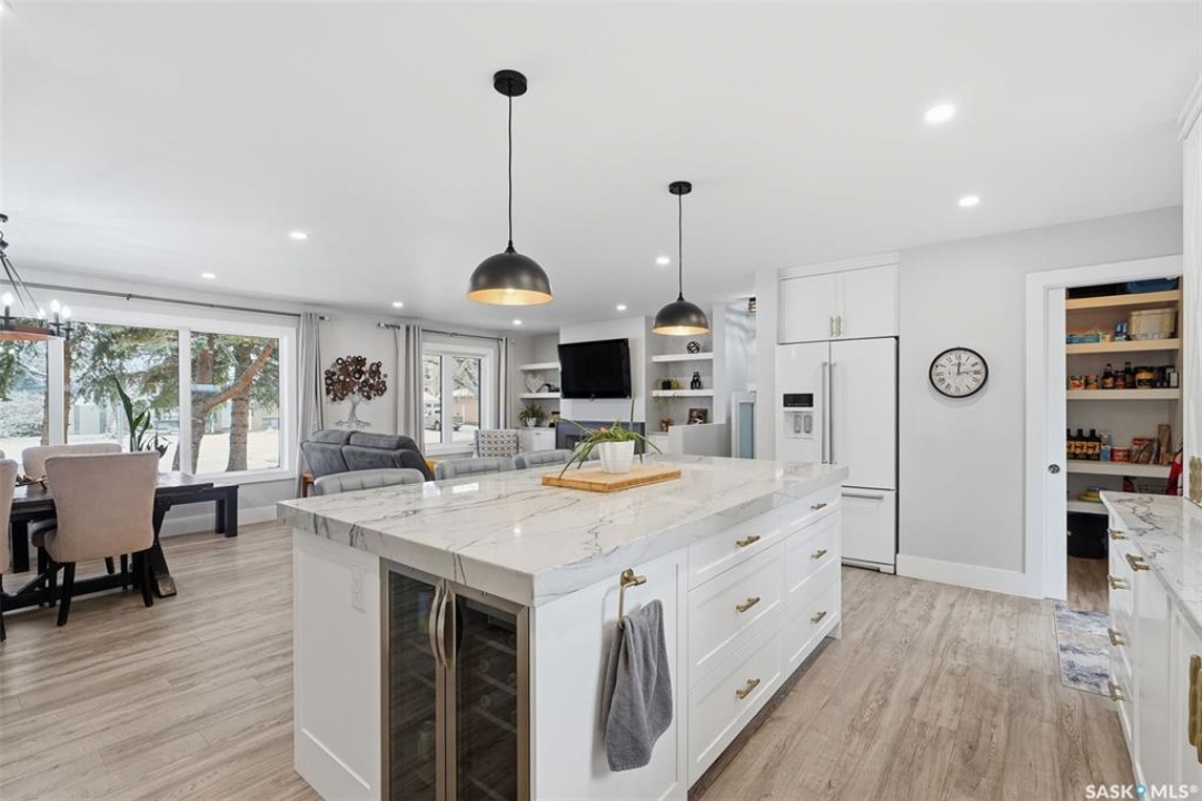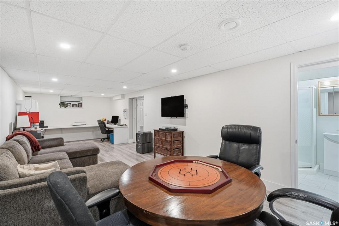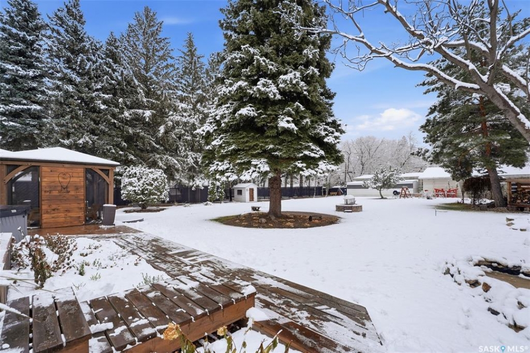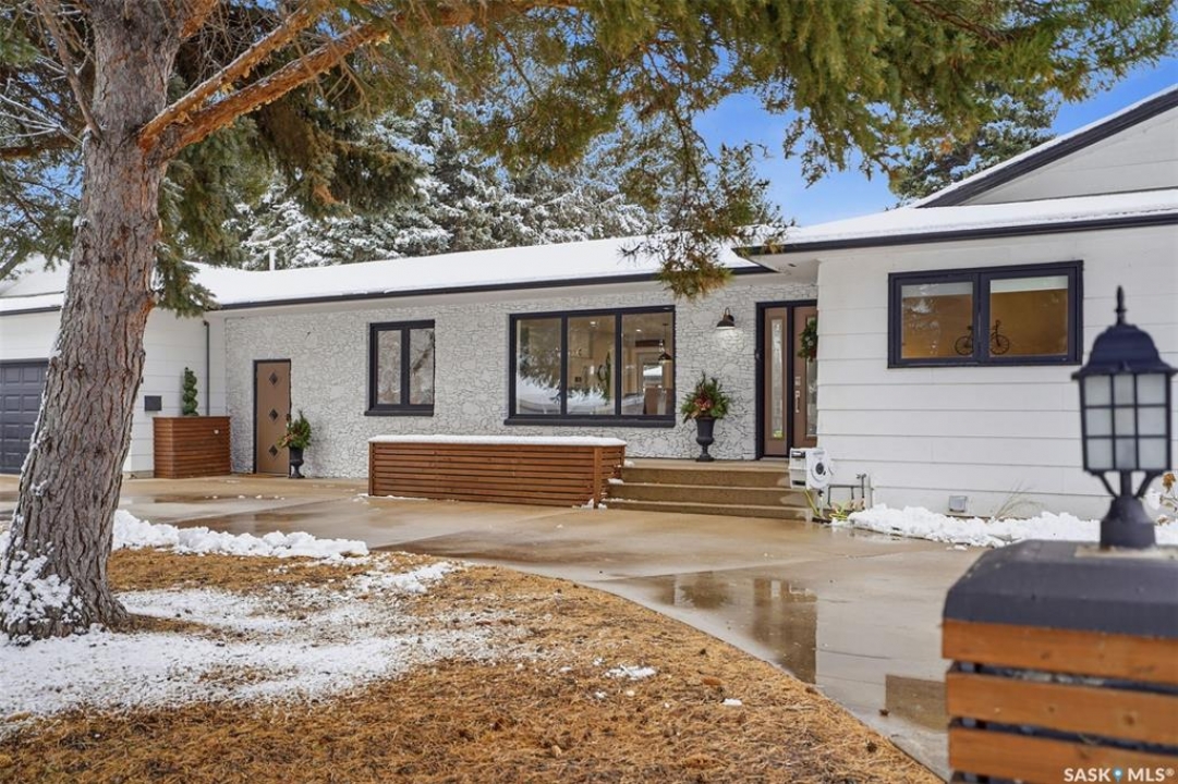 Welcome to this exceptional 4-bedroom, 4-bath bungalow, offering an impressive blend of modern comfort, privacy, and versatility. The newly remodelled open-concept kitchen features a spacious island, walk-in pantry, and seamless flow into the main living areas—perfect for family living and entertaining. The finished basement includes a convenient 3-piece bath, while the unique east-wing suite provides a bedroom, lounge, and its own 3-piece bath. With plumbing already in place to add a kitchen, this space is ideal for an in-law suite or income-generating unit. The private primary suite is a true retreat, complete with a large walk-in shower, dual sinks, walk-in closet, and garden doors that step out onto an elevated deck. Main-floor laundry and abundant storage throughout add everyday convenience. Situated on a private �-acre lot, this property offers mature trees—including a stunning Douglas Fir—full fencing with privacy slats, and a rear driveway with 10' gates off the alley, perfect for parking a boat, RV, or other toys. The in-ground sprinkler system keeps the grounds low-maintenance and beautifully lush. A standout feature is the massive 2.5 car rear garage, complete with a separate workshop and drive shed—ideal for hobbyists, contractors, or those needing extra workspace. Updates since purchase include: décor improvements, new eavestroughs, insulated garage doors on the alley garage, a 10 x 12 cedar gazebo, Jacuzzi hot tub, privacy fencing, new back-door stairs, and enhanced landscaping/gardens. Inclusions: gazebo furniture and cushions, hot tub, all appliances, window coverings, and the built-in saw in the workshop.