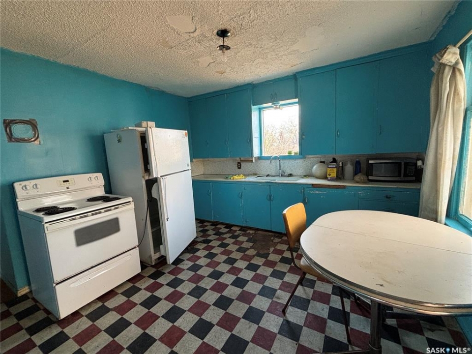 106 Phillips Street Coleville SK - just 15 minutes north of Kindersley! This home offers 2 bedrooms up and 1 down, nice sized living room with original hardwood, some new windows throughout main level. There is a 3 pc bath and a eat in kitchen that finish off the main level. Downstairs is a utility space, the third bedroom and another living room. Open to offers! Call for a look today!