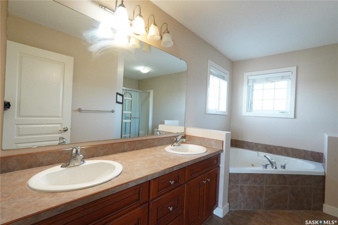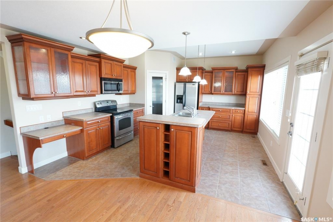 THIS IS NOT A CONDO AND THE YARD IS NOT SHARED. You get almost 3,000 SQFT of living space with this beautiful 2 storey walkout that has the location you will love, Wonderful White City! Backs the golf course and park which includes walking paths and all the fun a family requires! You are welcomed by the beautiful front yard and covered front steps that lead you into the foyer that brings flow through the entire home. Amazing natural light fills both the main and 2nd floor. With this open concept floor plan you will just love what this home offers. Great sized living room with a gas fireplace that creates a elegant focal point and hardwood flooring that runs through most of the main level. The kitchen offers a centre island, with extra seating, also featuring ample counters and cabinetry, backsplash, and pantry. The main floor also includes an office with its own 3 piece bathroom, laundry and direct entry into garage. The main floor comes complete with a 2 piece bathroom, also the dining area has patio doors leading to the deck with a beautifully landscaped backyard. The 2nd floor features 2 spacious bedrooms with the primary bedroom sized for your king size suite, a walk-in closet & a 5 piece bathroom with his and her sinks. This floor is finished with a 4 piece bathroom with tub surround and another huge bedroom. The lower level is fully finished with a family room, 3rd and 4th bedroom and a den perfectly set up for your media room. This floor is complete with a 4 piece bathroom with tub surround. Other features include newer furnace, heated basement floor, double detached garage, walkout basement to patio and much more! This home is in a fantastic location. Set up your viewing today you don't want to miss out on this one!