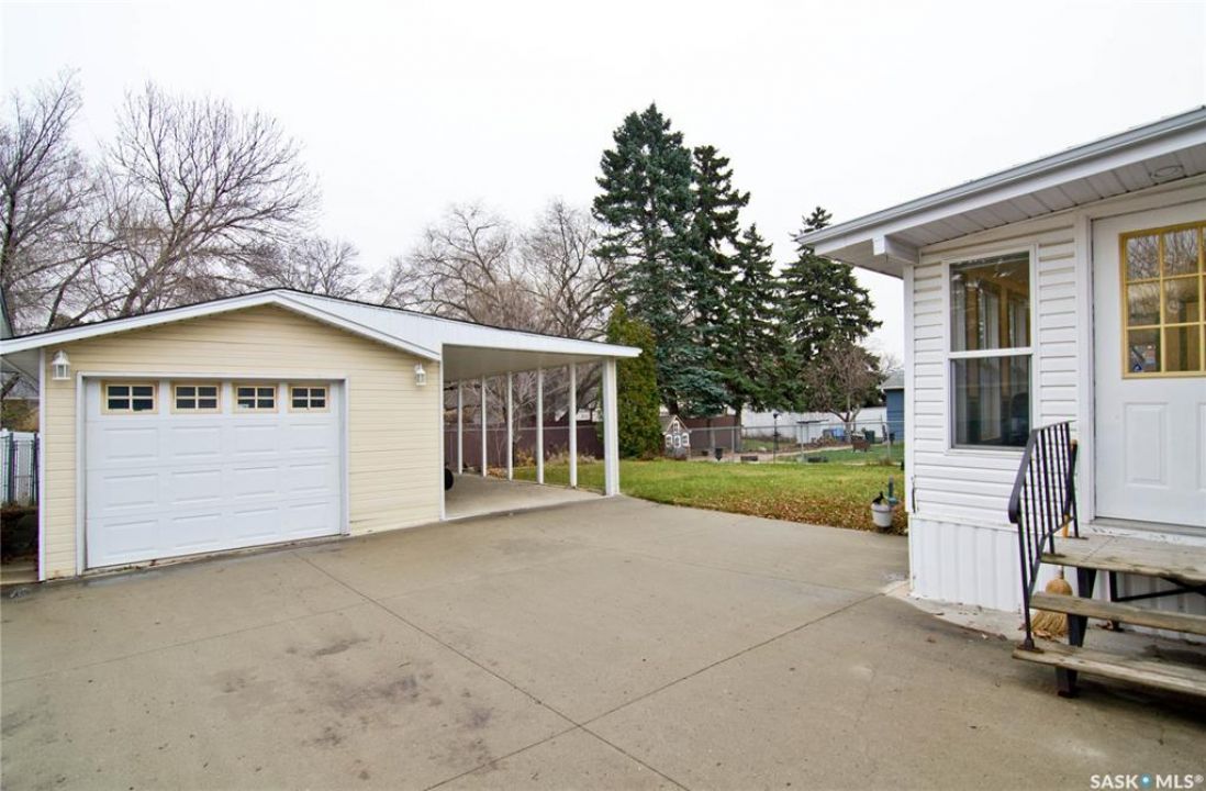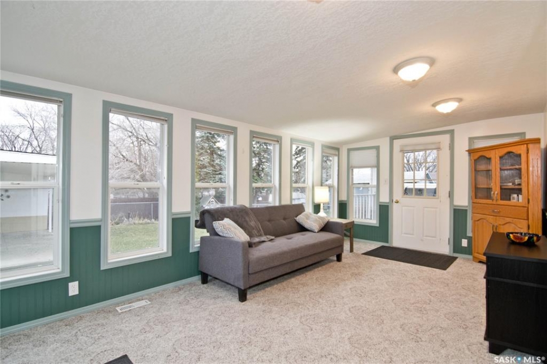 Nicely maintained 995 s.f. family size bungalow in a quiet, mature neighbourhood in Coronation Park. Main floor is bright and spacious with 3 bedrooms, living rm, dining rm, kitchen, full bath and a 3-season 10 x 18 s.f. sunroom leading to a covered deck and patio area. The basement is fully developed with a large rec room, bedroom, den, 3 piece bath, laundry rm, and utility rm. The back yard is fenced with perennial bed, single detached garage, carport and large concrete driveway/pad for parking. Underground sprinklers in the front. Located close both elementary and secondary schools and NW amenities. NOTE: 185 s.f. sunroom is not included in the 995 s.f. living space calculation. BBQ on back deck remains; KI and LV furniture neg.