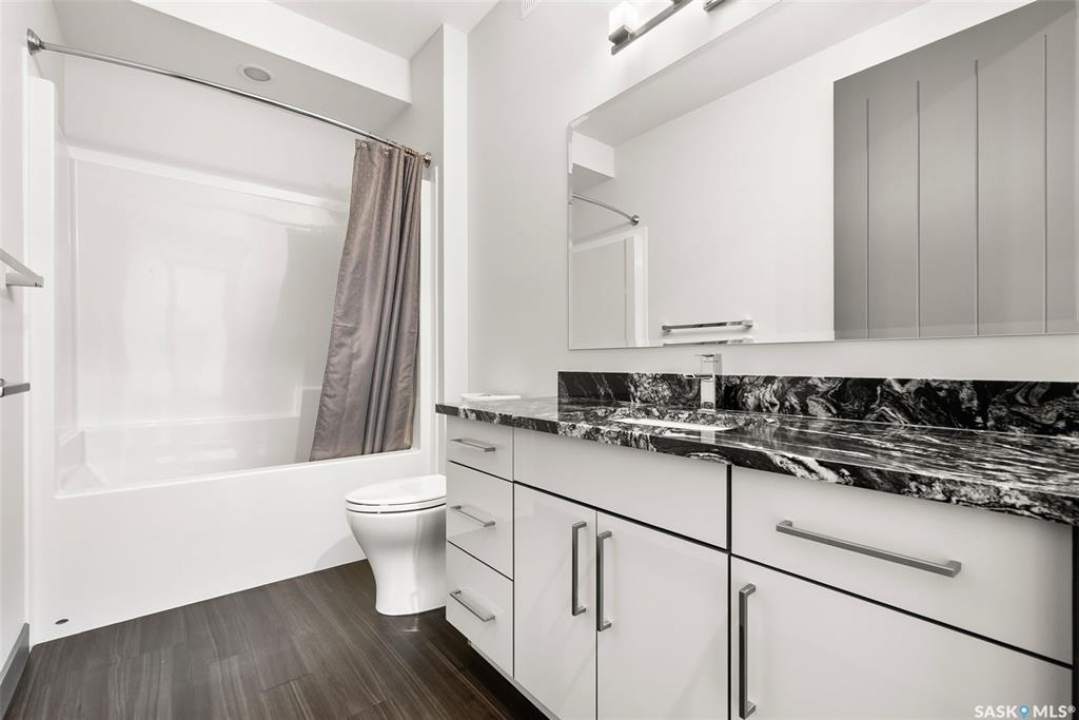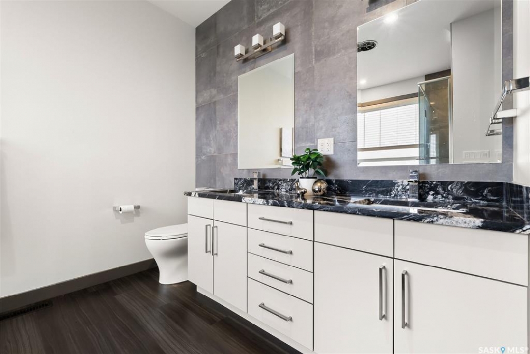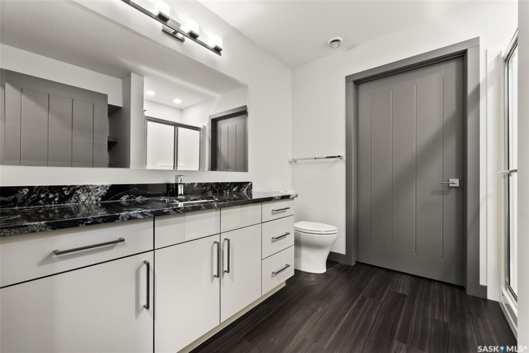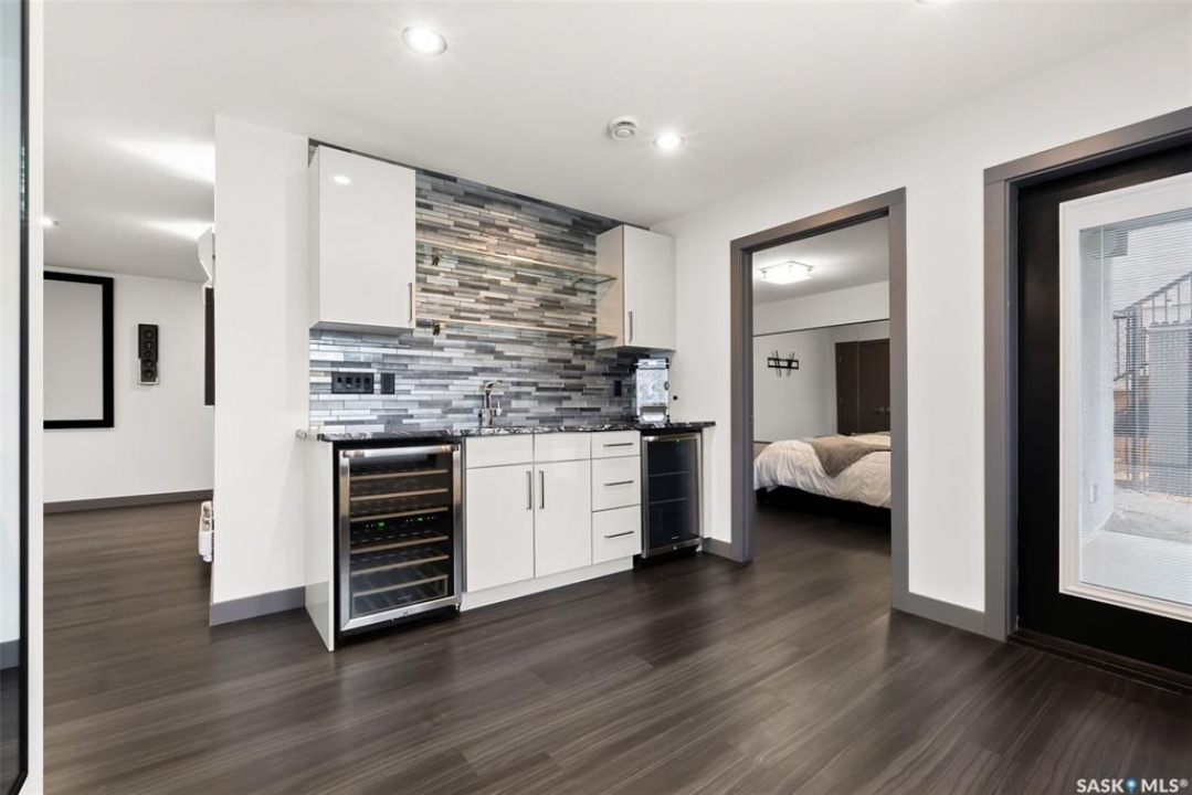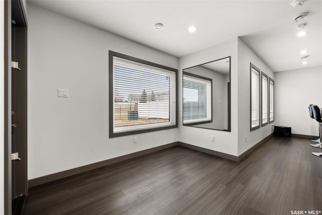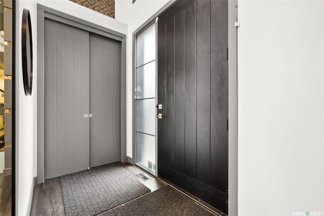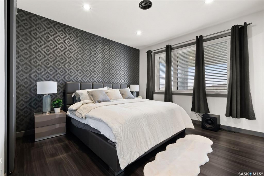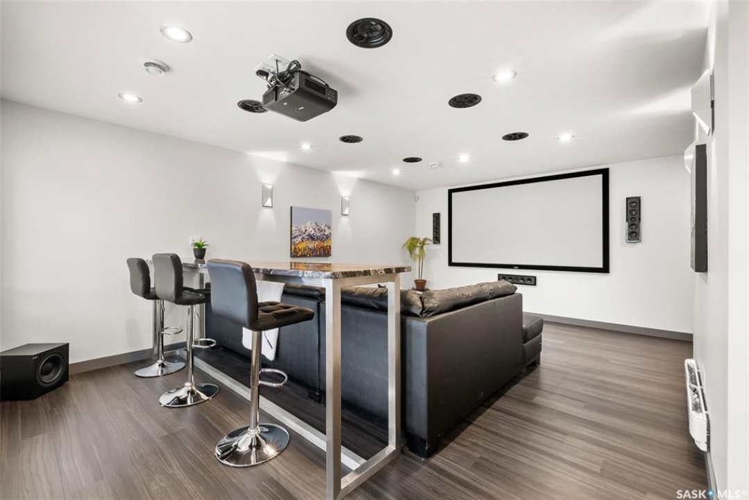 Welcome to this stunning custom-built walkout in Fairways West! This home is in a prime location and backs the beautiful walking path leading to the Goulet Golf Course. The moment you step inside, 19-foot ceilings and floor-to-ceiling windows create a dramatic sense of space and light. A striking glass-and-stainless steel staircase, accented with subtle stair lighting, introduces the home's modern, refined style. The kitchen is both beautiful and practical, featuring custom white cabinetry, a generous sit-up island, granite countertops and premium stainless-steel appliances. There is garden door access from the kitchen which opens onto a private west-facing deck—ideal for morning coffee or evening entertaining while taking in the peaceful green space. Upstairs you'll find the primary retreat, complete with a walk-in closet and a luxurious five-piece ensuite featuring dual vanities, a stand-alone soaker tub and a custom-tiled shower. Two additional bedrooms, a four-piece bath, and a convenient laundry room complete this level. The fully developed walkout basement is built for entertaining or unwinding after a long day. The rec room is set up as a perfect home theatre complete with a projector screen and built-in sound system! A sleek wet bar adds style and convenience, while the fourth bedroom doubles as a guest room, office, or home gym. Expansive windows keep the space bright and welcoming. The oversized double attached garage is a standout—heated, drywalled and equipped with 12-foot ceilings, a floor drain, and water taps. There are built-in speakers throughout the house and receivers are all included. Every detail in this home combines contemporary design with practical luxury. Discover a residence where craftsmanship and lifestyle meet in one exceptional property. This Fairways West show piece is one you do not want to miss out on!