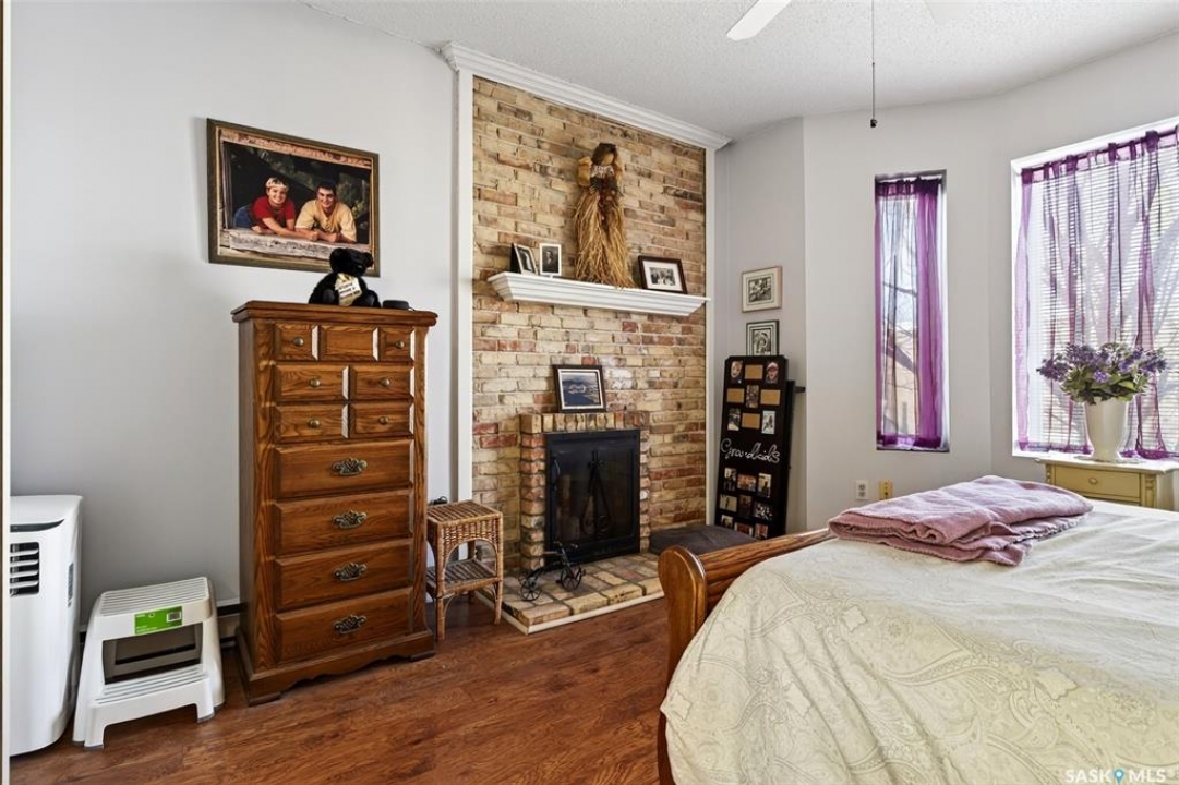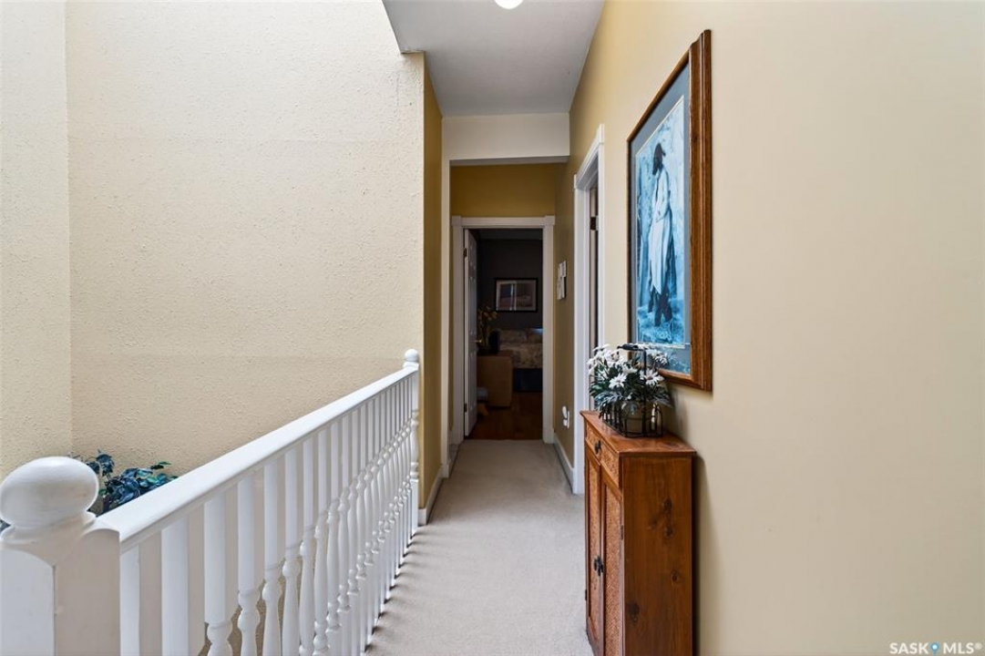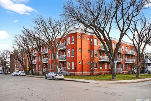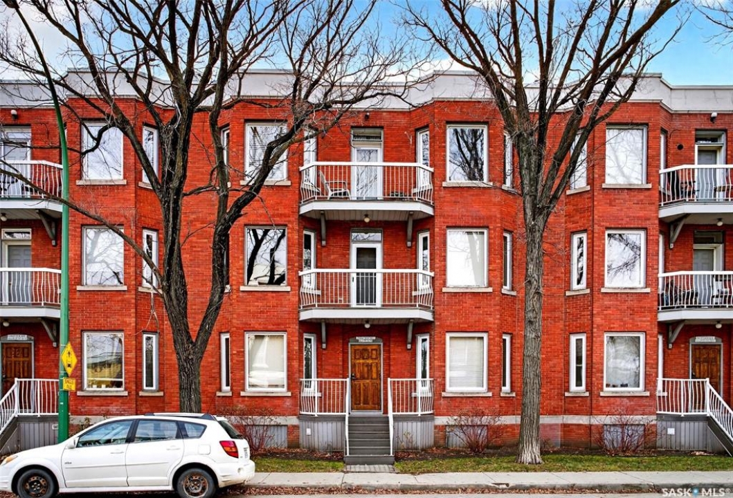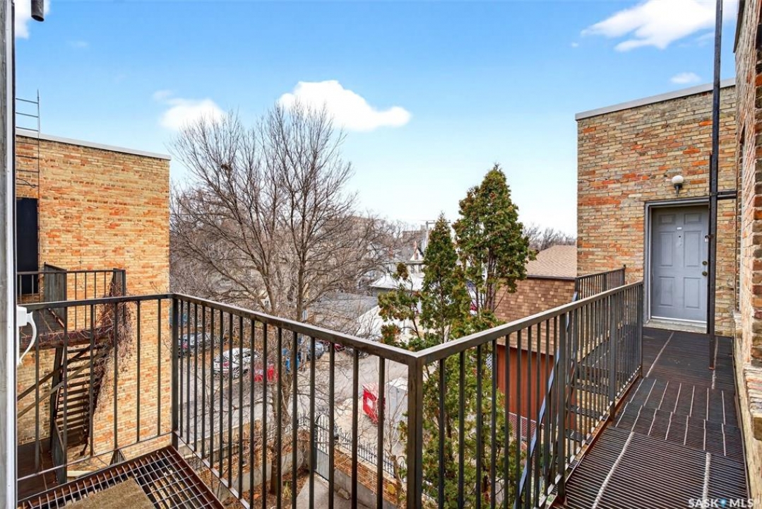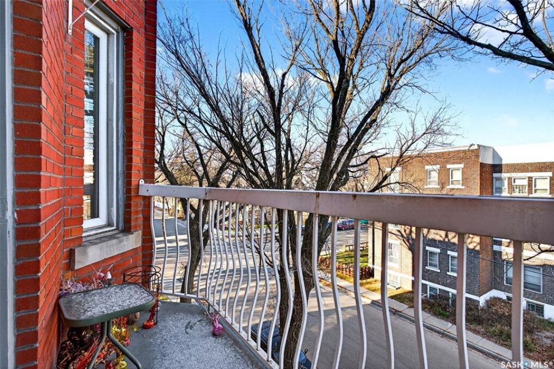 Discover a rare top-floor retreat in the heart of Regina's beloved Cathedral neighbourhood where historic character meets urban convenience. Set along mature, tree-lined streets and just steps from cafés, restaurants, boutiques, grocery stores, and downtown, this 1475 sq. ft. 3-bed, 2-bath condo captures the essence of Cathedral living. Step inside and be greeted by an abundance of natural light pouring through a stunning oversized skylight in the stairwell. At the front of the home, the expansive living room is anchored by crown moulding and a beautiful natural gas brick fireplace, creating a sense of comfort. The galley-style kitchen offers ample counter space and a versatile area that can serve as a dining nook or office. You will then find a back entrance door with an area for your BBQand a stairwell to the courtyard. A well-appointed 4-piece bathroom with a jetted tub and the convenience of in-unit laundry enhance day-to-day comfort.There are two bedrooms that offer flexibility for guests or a home office. Tucked at the end of the hall, the primary bedroom is truly a suite of its own, a spacious room featuring large windows, another charming brick fireplace, a private 2-piece ensuite, and walk-in closet. Enjoy the best of both exposures with two private balconies, a south-facing balcony overlooking the peaceful courtyard and a north-facing balcony with views stretching toward 14th Avenue, connecting you to the vibrant energy of the neighbourhood. Residents of this well-maintained building also enjoy exclusive access to a private courtyard, secure underground parking (one stall included), and locked storage—adding ease and practicality to everyday living. If you've been searching for a home that blends timeless character, thoughtful updates, and an unbeatable Cathedral location, this exceptional top-floor condo is the one. A rare opportunity to live in comfort, style, and community—all in one of Regina's most desired neighbourhoods.