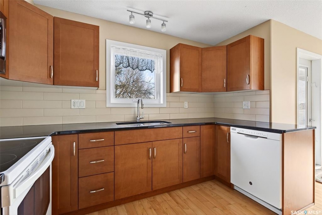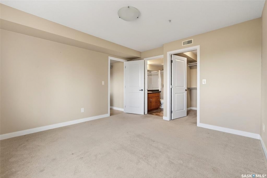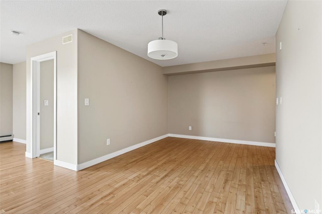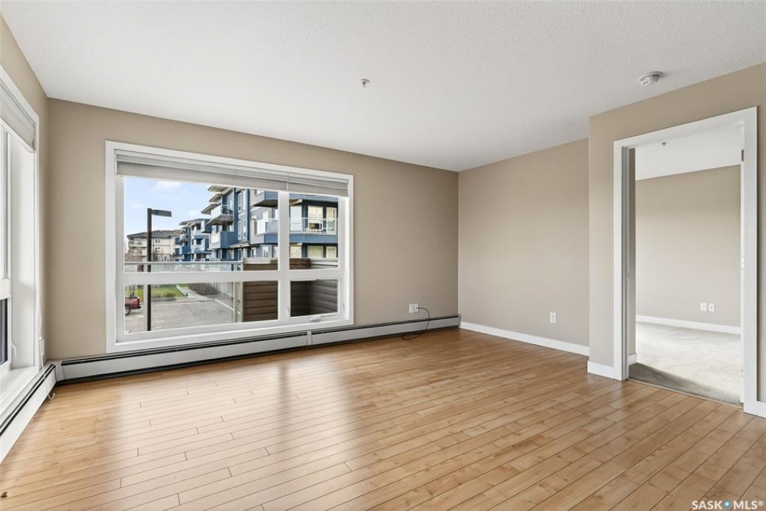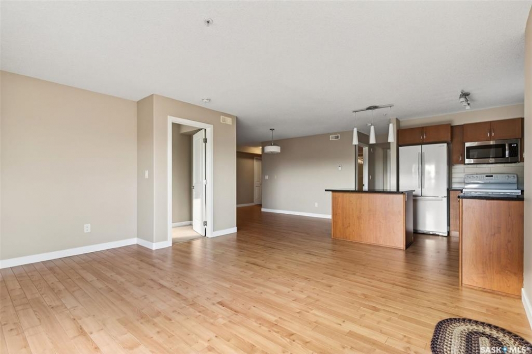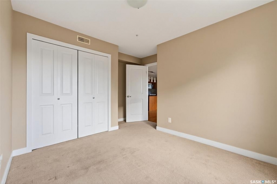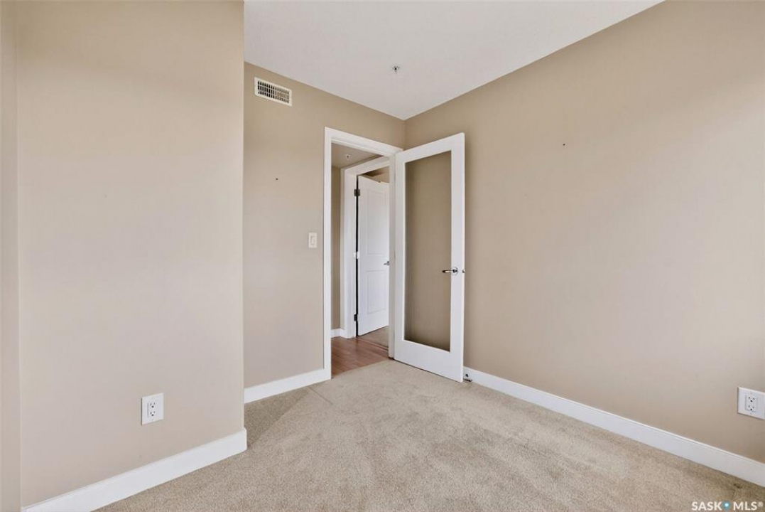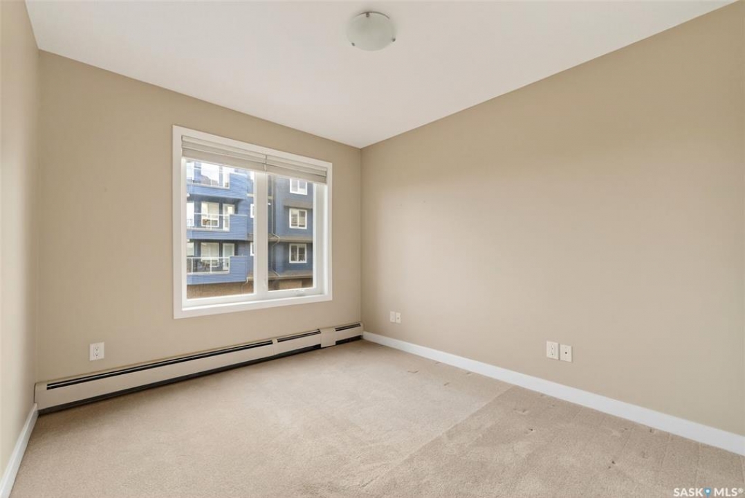 Beautifully maintained South- and East-facing corner unit with an open floor plan and an abundance of natural light. This 2 bedroom + den, 2 bathroom condo offers in-suite laundry, underground parking, and exceptional views of green space in an extremely quiet setting. Large windows maximize the wrap-around exposure, bathing the living areas in natural light. The kitchen features a new microwave hood fan, along with fridge, stove, and dishwasher; dark maple cabinetry with soft-close drawers, granite countertops, a centre island with bistro seating, and laminate flooring throughout. The dining area is conveniently situated off the kitchen and flows nicely into the spacious living room. A garden door opens to the wrap-around balcony with glass panels and natural gas BBQ hookup, overlooking wide open fields and tranquil natural green space — a peaceful outdoor extension of your living area. The generous primary bedroom features a walk-in closet and a private ensuite complete with a two-seat shower. The second bedroom is also spacious, and the den is ideal for an office or cozy reading room. The in-suite laundry/storage room includes washer, dryer, and freezer for added convenience. Additional features include underground parking (included in the condo fees), and ample visitor parking. Residents also enjoy access to the building's amenities room, exercise room, and elevator. Condo fees include: heat, water/sewer, garbage removal, snow removal, lawn care, reserve fund contribution, common insurance, and exterior building maintenance