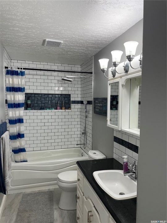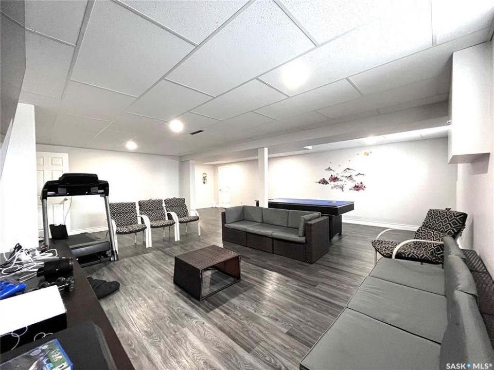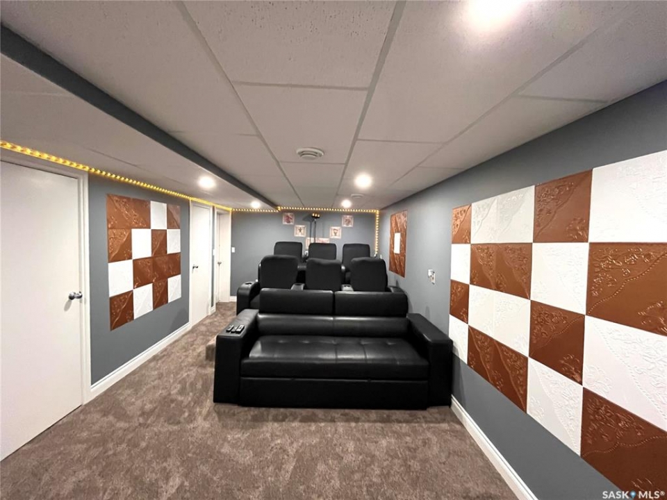 I am pleased to present the details for this charming 1,424 sq ft bungalow, guided by the motto, "A place for everything." The property begins with an upgraded concrete and pebble-finish driveway leading to a 24x26 natural gas-heated garage, which offers direct entry into the home. The main entrance is located on the side, providing privacy and easy access to a 12x20 deck, ideal for family gatherings. This home boasts an incredible family layout with five bedrooms in total. The main floor features convenient laundry facilities and a beautiful IKEA kitchen with an updated stainless steel appliance package. The kitchen provides incredible storage solutions, stone backsplash, including a large eat-up island with soft-close drawers. The bright and spacious living room is accented by an electric fireplace with mantle. Down the hall are 3 of the main floor's 4 bedrooms, alongside an updated 4-piece family bath. The basement has been professionally remodeled and is perfectly set up for entertaining. It includes a large 21x23 family room and the 5th bedroom is located near a 3-piece bath. The showstopper of the remodel is an inviting 11x22 Theater Room perfect for the family to gather! Come & put your feet up as you unwind in cozy-comfort to enjoy the show! Popcorn is recommended! For outdoor fun, the fully fenced side yard has a storage shed, raised garden beds, A/C & plenty of room for the kids and dog to run & play. This great home is looking for a new family - now is the time to make it yours!