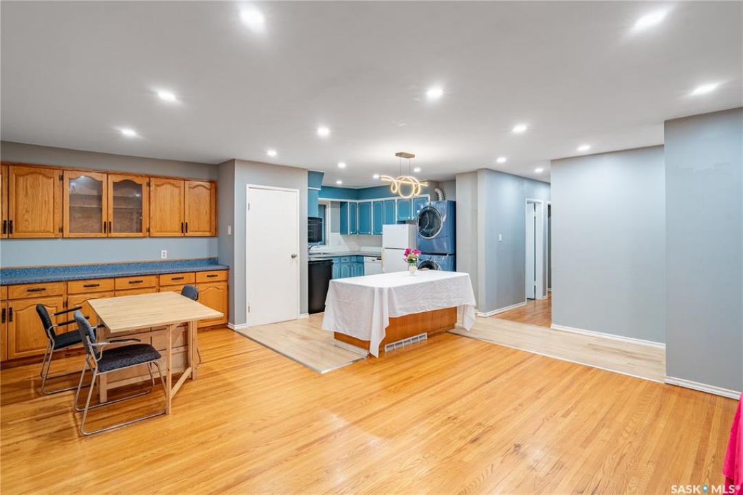 Welcome to this spacious and highly versatile 5-bedroom, 3-bathroom bungalow situated on a quiet street in the prime, established neighborhood of Whitmore Park. Offering 1,109 sq. ft. of comfortable main-floor living, this property is perfectly configured for large families, multi-generational living, or savvy investors seeking rental income. The bright main floor features a welcoming living room, a dining area, and three generous bedrooms, including a Primary Bedroom with private 3-piece Ensuite and an additional full bath. The true highlight is the fully developed lower level, which offers incredible flexibility. It includes two additional bedrooms, a second kitchen and dining area, a 3-piece bathroom, and ample storage/laundry space. This setup is perfectly suited for an in-law suite or a dedicated rental unit, providing an immediate path to maximizing value. Outside, enjoy a fully fenced backyard and a large single detached garage. Location is paramount: you are just minutes from the University of Regina, Sask Polytech (SIAST), Ring Road access, and all desirable South End amenities. This is a solid, well-located property offering unparalleled potential for comfort, convenience, and passive income. Don't miss this opportunity in one of Regina's most desirable communities! Book your showing today!