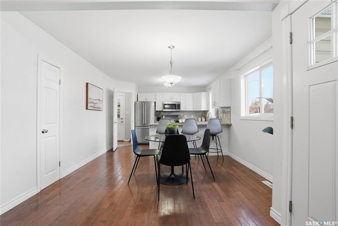 This ideally located Nutana Park 5 Bedroom, 3 Bathroom home with separate side entry, two kitchens and two washer/dryers could be the perfect opportunity for you! The open concept main floor features a spacious living room with gas fireplace, dining room and kitchen with ample countertop space and eat-up island. There are also 3 sizeable bedrooms, 4-pc bathroom and a 3-pc ensuite with a large walk-in shower, as well as main floor laundry with separate side entry. The basement features a second kitchen, washer and dryer, spacious family room and two large bedrooms. Parking is easy with the single detached garage and 36'x8' driveway. The backyard features a shed, garden boxes, and back-alley access. Many upgrades completed over the years. Conveniently located near parks, schools, Circle Drive access, bus stops, Market Mall and many more amenities. Whether you're a family, first time home buyer, or an investor, this home could be the perfect opportunity so don't miss out and book your personal viewing today! Presentation of Offers is November 30th, 2025 at 2:00pm.