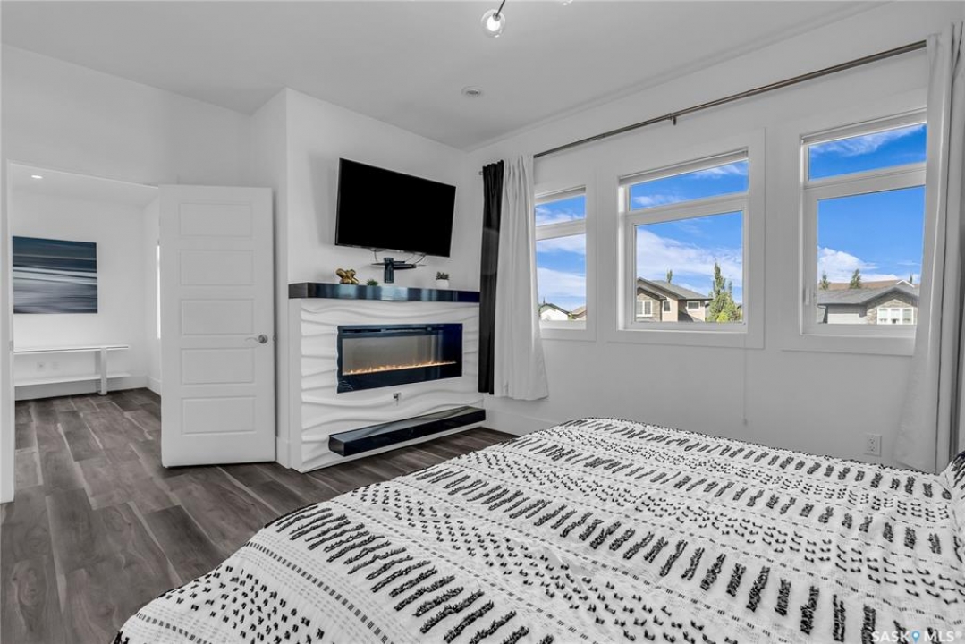 Welcome to 231 Atton Court, an exceptional custom built home in Evergreen, perfectly positioned near the Forestry Farm and surrounded by walking paths, parks, and mature greenery. Thoughtfully designed and meticulously crafted, this residence is sure to impress. The main floor offers a bright front office with built in desk and shelving, an ideal work from home setup, along with a stylish 2 piece bath and a well planned mudroom with abundant storage. The heart of the home is the stunning open concept living space. A gourmet kitchen anchors the room with a gas range and direct vent, pot filler at the stove, a massive quartz island with waterfall edges, and a breakfast bar. The dining area flows seamlessly into the inviting living room, complete with a warm gas fireplace and large windows. Outdoor living is elevated with a covered deck featuring natural gas for your BBQ, a lower patio area, pergola, artificial turf for low maintenance enjoyment, and a relaxing hot tub. Upstairs, the second floor offers impressive scale with 9' ceilings and an ideal family layout. Two generous bedrooms sit alongside a dedicated laundry room, and a bonus office nook provides the perfect spot for homework or quiet work. The primary suite is a true sanctuary featuring an electric fireplace, expansive walk in closet, and a luxurious five piece ensuite with double sinks, an air jet tub, and an oversized walk in, doorless double shower. The fully developed basement extends the living space with two additional bedrooms, a full bathroom, and a large family room designed for movie nights, complete with projection wiring. Additional highlights include an oversized finished double attached garage with an overhead door leading to the backyard, an ICF foundation, triple pane windows throughout, and 9' ceilings on all three levels, creating a bright, airy atmosphere in every room. Homes like this rarely come to market. Welcome home.