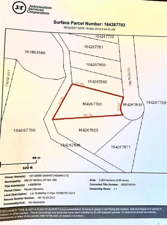 Wow! $94,900.00. This stunning 0.65-acre pie-shaped virgin prairie lot, boasting a wide west-facing side overlooking the serene pond and picturesque Last Mountain Lake, is ready foryoy to develope at Sunset Resort. This unique, irregularly-shaped lot offers awe-inspiring views, ideal for a cottage or home with a walkout basement design. Located at Sunset Resort, 3 miles south of Rowan's Ravine Provincial Park, with power and gas services conveniently accessible on the street side at 132 Olsen Road. A camper trailer is permissible with the installation of a septic tank. Power and gas services are readily available at the front of the property. Please consult McKillop RM for property Bylaws. A hard copy of the topographical survey is available for an additional fee. Architectural design services can be provided at a cost. Sunset Resort is situated on the east side of Last Mountain Lake, approximately 1 hour from Regina via pavement and 2 hours from Saskatoon. 2025 Taxes are $729.00.