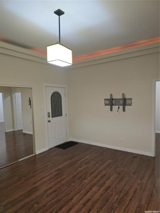 First-time home buyers, this one is a great house and area to start! Welcome to this almost 1,300 square foot bungalow on a crawl space .' x 125' lot with convenient back alley access, this property provides space and privacy. The house features vinyl siding, a large deck and a completely fenced-in yard. The oversized 25' x 19' heated garage is fully finished and features 100-amp service. 50' x 125' lot with convenient back alley access, this property provides space and privacy. The home has been upgraded over the years with laminate, ceramic tile, and linoleum flooring throughout, updated light fixtures, countertops, cupboards, sprayed ceilings, baseboards and trim. A nice open feel with 10-foot ceilings in the family room, dining area, and both bedrooms. A nice addition is the coved ceiling with modern pot lighting and perimeter lighting along the ceiling. The kitchen was previously updated with a faucet and backsplash. The bathroom features a tile shower. The mechanical systems were previously upgraded to include a high-efficiency furnace, tankless water heater, and updated plumbing and electrical. The home is also wired for surround sound, HDMI, and CAT 5.
