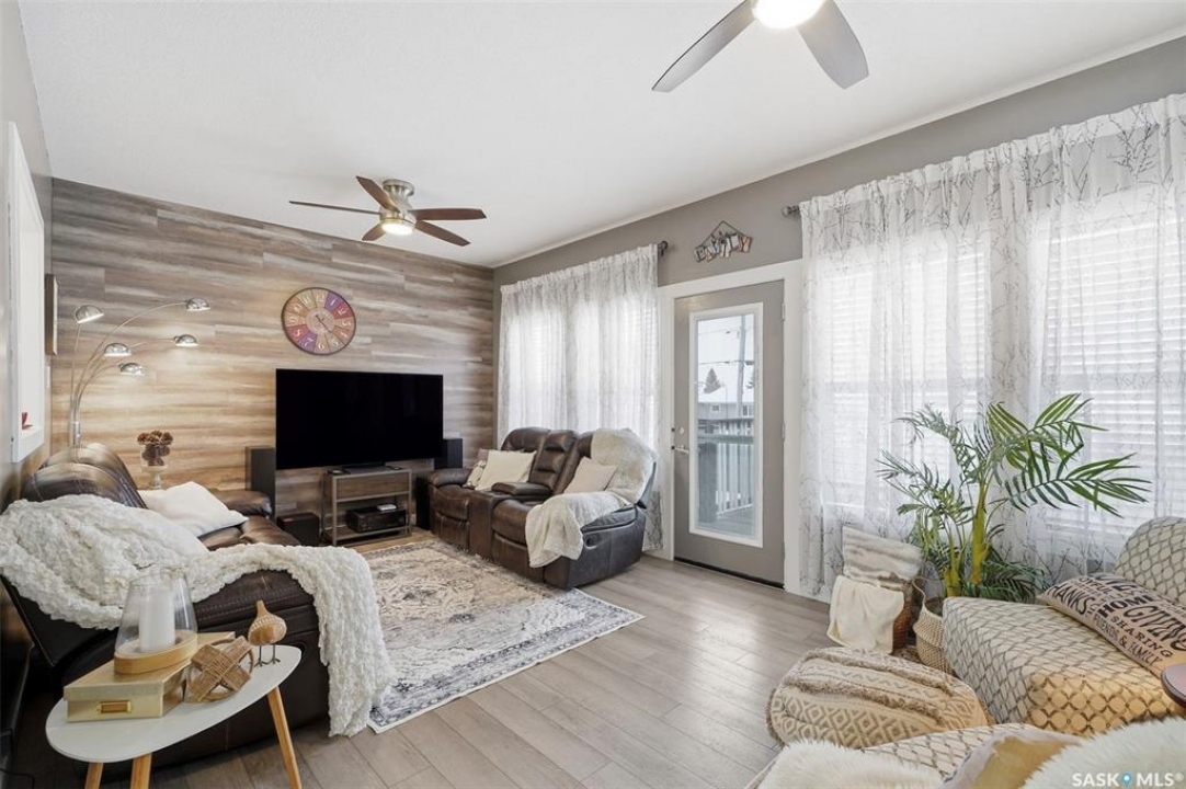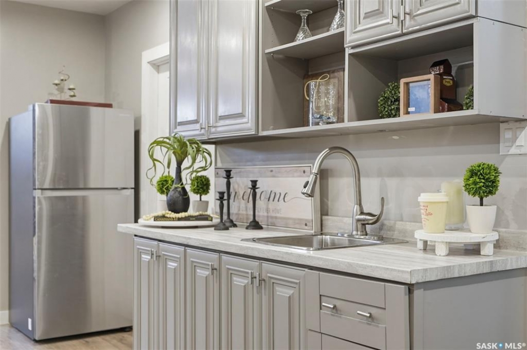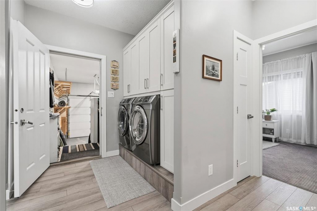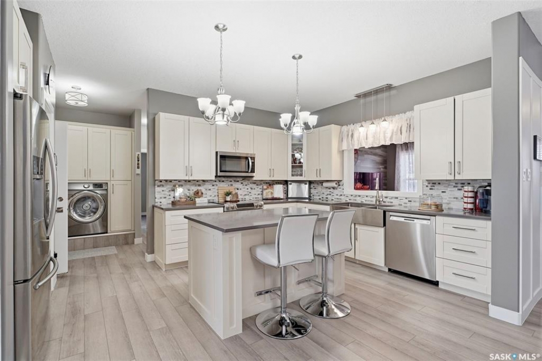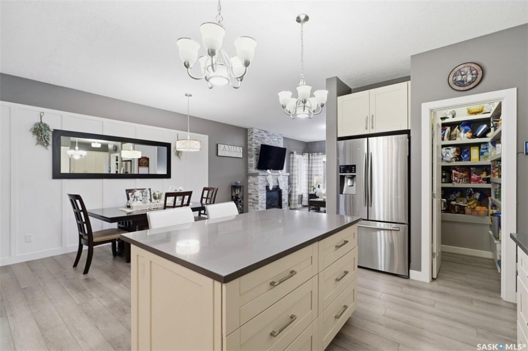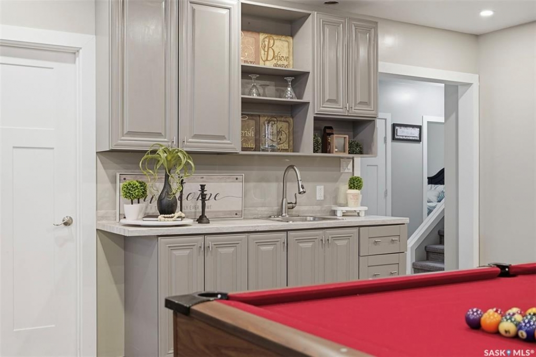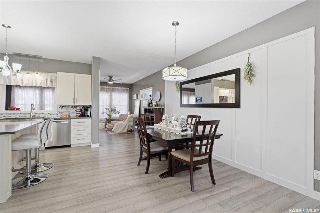 Welcome to 113 Olauson Crescent, where comfort, space, and everyday luxury meet. This rare bungalow offers 2824 sq ft of living space , with 5 bedrooms, 3 bathrooms, multiple living spaces, and a fully finished basement. Inside, the airy 9-foot ceilings and sun-filled windows set the tone. The main floor is designed with real life in mind: a formal living room with a cozy fireplace, a separate family room, and an additional sitting area that invites morning coffee, quiet conversations, or curling up with a book. The flow feels natural, open, and incredibly comfortable — the kind of layout that makes hosting or unwinding effortless. The kitchen is the heartbeat of the home. Featuring a walk-in pantry, an oversized island, and tons of cabinetry, it's built for busy households, big holiday meals, and everyday cooking that doesn't feel cramped or cluttered. From here, step right into your private outdoor retreat — a spacious deck and patio with a gas BBQ hookup, perfect for crisp fall grilling, warm summer nights. The lower level opens up into a massive, beautifully finished basement built for fun and relaxation. A full-size pool table (included!), a bar area with sink, a 4-piece bath, two large bedrooms, and generous storage make this level feel like its own getaway. And with in-floor heat throughout both the basement and the double attached garage, winters become something you barely notice.Work shop area as well in garage. Outside, raised garden beds are ready for your spring planting, and the yard offers plenty of room for pets, play, and quiet evenings outside. The community is welcoming, the school is just a short walk away, and with Saskatoon only minutes down the road, every amenity is within easy reach. This is a home designed for people who want space, comfort, and quality — without giving up the warmth and charm of small-town living. Quick possession is available, you could be settled in before Chrismas,call your favourite REALTOR � to book a showing.