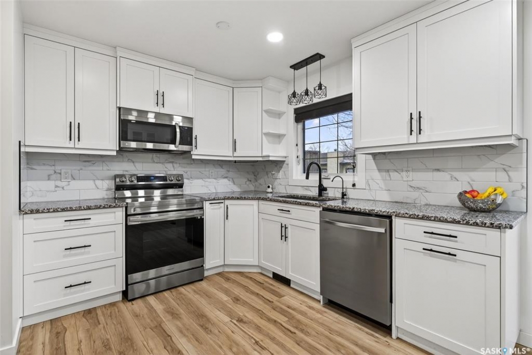 Ring in the 2026 New Year in your gorgeous new home! This extensively renovated family home is move-in ready! Ideally located on a quiet street in a safe sought-after neighbourhood just a block from both public & Catholic schools. With over $150k in recent upgrades, you'll love the modern comfort & style and unbeatable convenience—minutes from all east-end amenities. This home is a must-see! Step inside to your spacious, sunken living room featuring a beautiful wood-burning fireplace. The entire main floor was renovated in 2023-25 including new waterproof, luxury vinyl plank flooring throughout. The bright white kitchen shines with new custom cabinetry & beautiful granite countertops. You'll love the dining area with a custom-built hutch-style feature wall — a perfect spot to showcase your favourite dishes or set up the coffee bar of your dreams. There are three newly renovated bedrooms on the main level including a primary suite with walk-in & 3-piece en suite with heated towel rack & luxury steam shower to die for. All three bathrooms have granite countertops & new smart mirrors, providing customizable steam-free lighting. Downstairs, the third bathroom features a gorgeous jet tub adding a spa-like ambiance to the home. The spacious family room is the perfect hangout space for kids, movie nights or Grey Cup party! A versatile den/office/gym could easily convert into a fourth bedroom and a generous laundry area & abundant storage add everyday functionality. Basement floors were updated & some professionally engineered wall bracing has been done for your peace of mind. The patio doors off the dining area lead to a massive composite deck, sunken 8' hot tub & a beautifully landscaped yard with recent grading, sod & 10' brick patio with firepit. The exterior of the home was also updated in 2025. 3194 Salterio is truly the perfect place for your family to grow! Don't miss your chance to own this beautifully updated home—contact an agent today to book your showing.