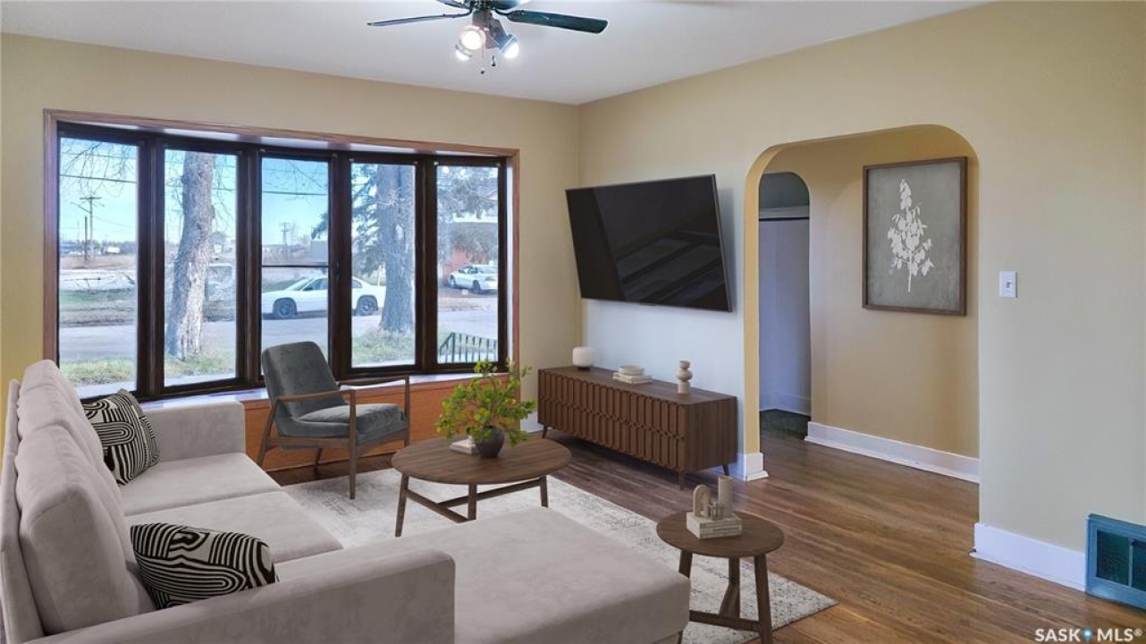 Welcome to 42 Tupper Ave. in the heart of Yorkton—a place where mid-century character meets the comfort of small-town living. Built in 1952 and lovingly maintained, this 1,207 sq. ft. home offers a sense of warmth and familiarity the moment you step inside, the kind of feeling only an established neighbourhood can provide. From the back foyer, a short set of stairs leads you into an unexpectedly open kitchen and dining area—more spacious than most homes of this era and perfect for family gatherings. The front living room features a beautiful picture window that fills the home with natural light and highlights the polished original hardwood floors—true mid-century craftsmanship that has stood the test of time. Down the hall are two comfortable bedrooms and a full bathroom, all offering practical living with the quiet charm that comes from a well-built home. Downstairs, the partially developed basement expands your possibilities with a massive third bedroom (or a fantastic playroom/teen retreat) along with a cozy family room. Step outside and enjoy the kind of backyard you rarely find anymore—a huge, mature, treed lot with plenty of privacy, a firepit for evenings under the stars, and a single detached garage. It's the perfect place for kids to play, pets to roam, or families and friends to gather around the fire on warm prairie nights. Recent updates—including new shingles, hot water tank, water softener, and fresh interior paint—offer peace of mind while preserving the charm of the home's original style. Located in central Yorkton, you're within easy walking distance to downtown shopping, schools, parks, and all the community amenities that make this city feel like home. Priced under $200,000, this welcoming home is the ideal blend of character, comfort, and convenience—and opportunities like this don't come along often. If you've been waiting for a safe, friendly neighborhood and a home with heart, your chance is here.
