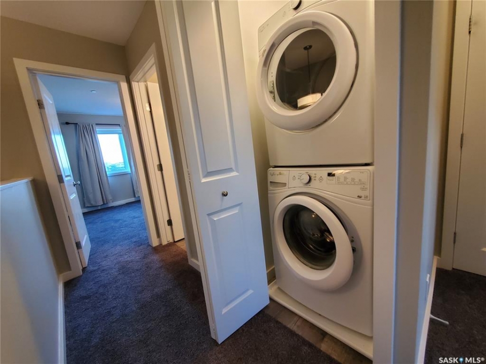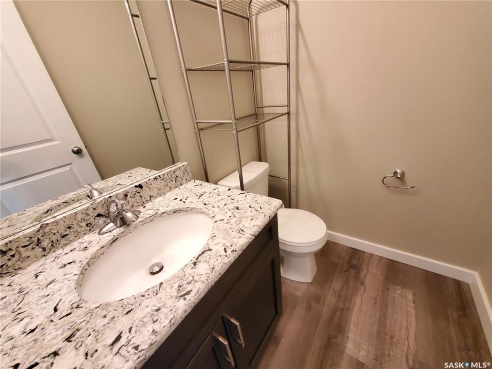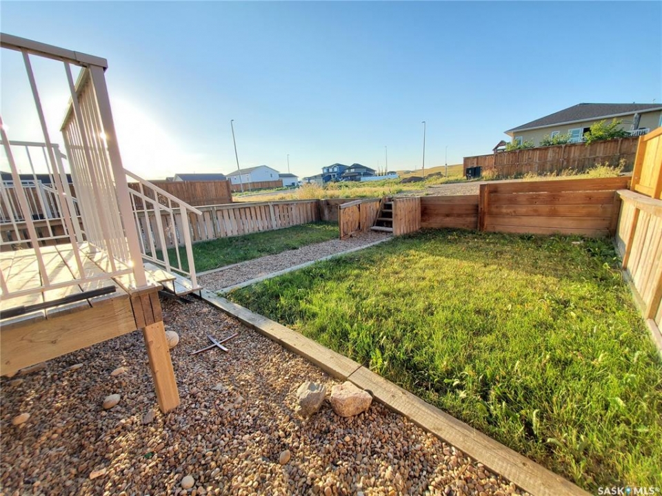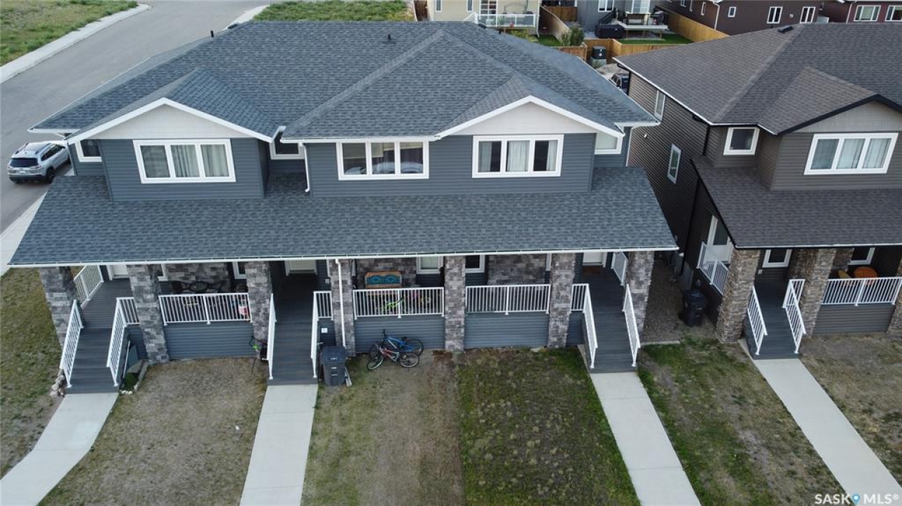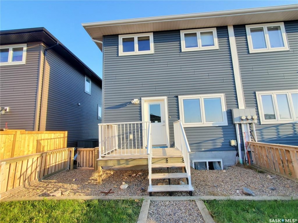 This standout end unit townhome at 553 Douglas Drive, Swift Current, combines quality craftsmanship, a prime Sask Valley location, and a layout designed for everyday ease. The elevated front deck looks out toward Ecole Centennial School, giving you a pleasant view before you even step inside. The main floor offers a smooth, open flow with a welcoming living room leading into a sharp-looking kitchen featuring dark, rich-looking cabinetry, stainless steel appliances, granite counters, a four-seat island, and a built-in desk for quick tasks. The bright dining area opens to a private back deck, fenced yard, and double gravel parking, while the rear entry brings extra storage, a plug-in for your deep freeze, and a handy half bath. Upstairs, you will find two comfortable secondary bedrooms, including one with a walk-in closet, the laundry area, and a full bathroom, followed by a generous primary suite with its own spacious walk-in. The finished basement rec room adds bonus living space with a bathroom already roughed in. The home's mechanicals include a heat recovery unit, a high-efficiency furnace, central air conditioning, underground sprinklers, a fire suppression system, and hard-wired smoke detectors to complete a package that is comfortable, convenient, and safe. If you want a home that performs as well as it looks, this is the one to move on before someone else does.