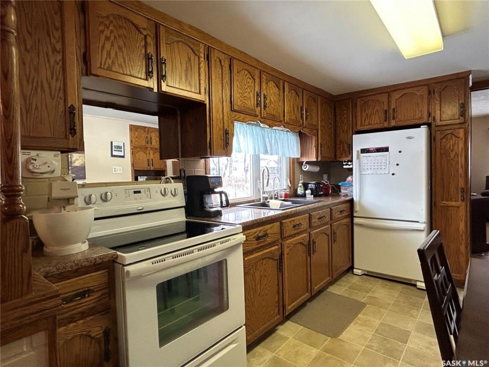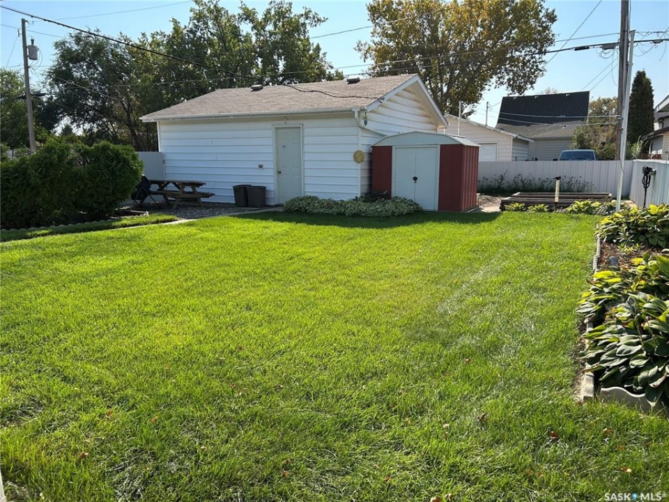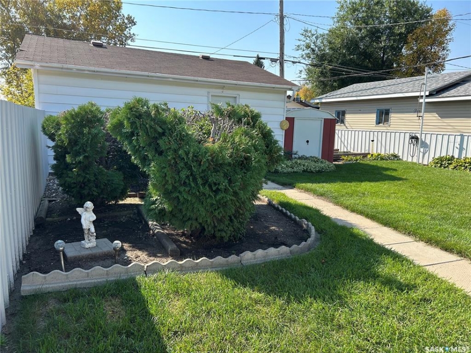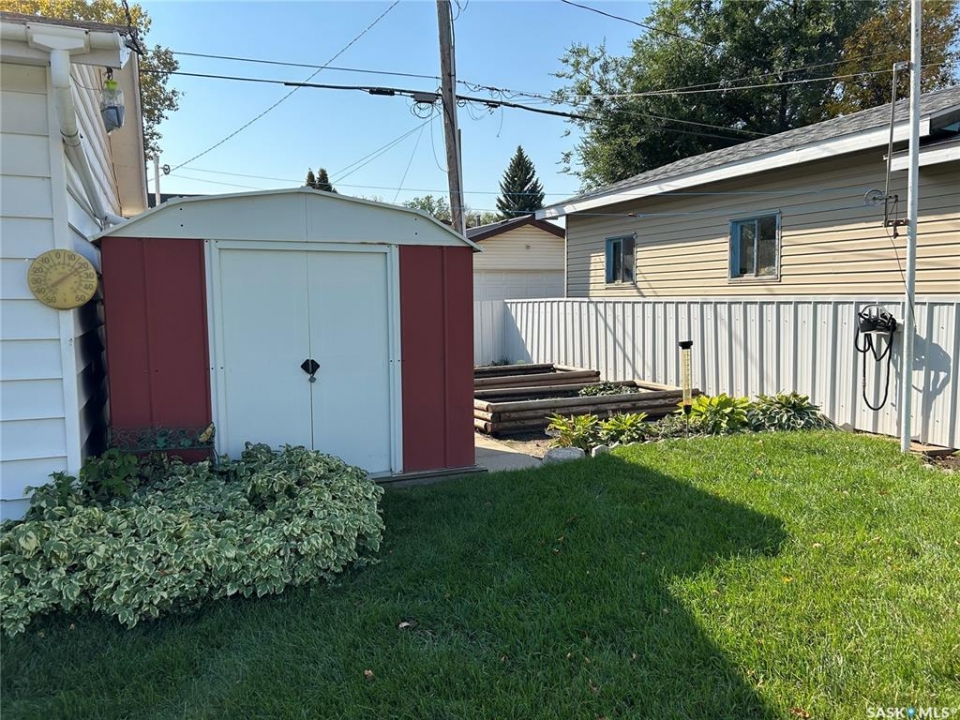 This very well-kept Hillside bungalow with a 22' x 22' double garage has been lovingly maintained by the same owner for 50 years. The pride of ownership shows throughout—inside and out. The home features a spacious back entry with exceptional storage, including multiple closets, a pantry, broom closet, and space for a stand-up freezer. The bright, inviting living room offers plenty of natural light and a cozy gas fireplace. The kitchen provides ample cabinets and counter space and includes a built-in dishwasher, stove, and fridge. The adjoining dining room comfortably fits a large table and additional cabinetry. The main floor offers two bedrooms and a four-piece bathroom. The lower level includes a laundry room (washer and dryer included), two additional bedrooms, a storage room, and a utility room. Outside, enjoy a beautifully maintained yard with a covered back deck, garden area, garden shed, lush lawn front and back, and a double concrete driveway. Clean, solid, and extremely well cared for—this is a wonderful opportunity to own a charming home in Hillside. Call today to view!