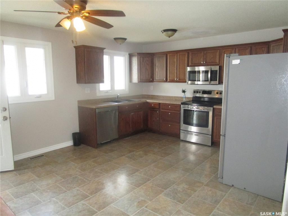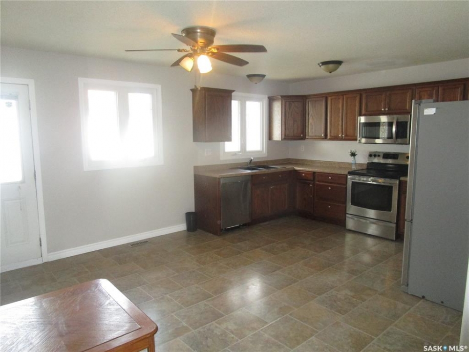 Attractive Raised Bungalow in Coronach, Saskatchewan. Ideally located on a corner lot . Features 28 x 25 foot garage with parking in front.. On the side is a double driveway leading to the fenced back yard . Find privacy and a lovely area for your family and ideal as well for your dog. Stepping into this home you will find a very spacious kitchen with lots of natural light. Counter tops on 3 sides with cabinets above them. Room for a large table in this room.. Updated Dishwasher, Fridge. Stove, Micro wave fan. 3 bedrooms on the main floor , the Primary bedroom features a 3 piece en suite. Main bathroom is completed with a quartz counter with dual sinks and a bathtub with a shower. Living room features room for all your oversized furniture and a big screen. The bay window really dresses up this room. Basement has a suspended ceiling and 2 more bedrooms and a den. The family room for all your entertainment. Laundry room is very spacious as well. Breaker box is 200 amp. The garage has a walk in door that you may enter from the backyard. It is truly a great garage, as you may see in the pictures, with a smooth even cement floor and a large automatic overhead door There is a large shed in the back yard. The windows are all PVC and this Home has been freshly painted . Come have a look and fall in love !