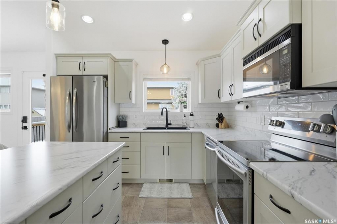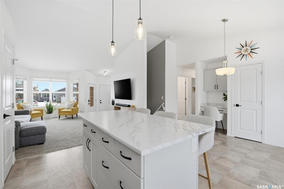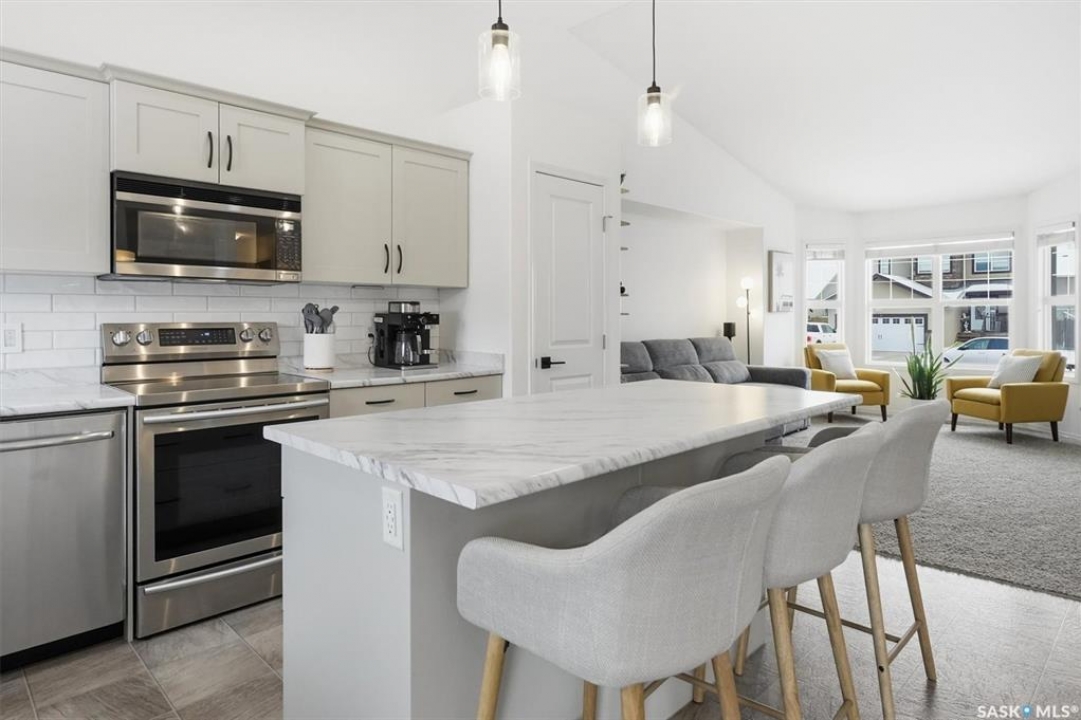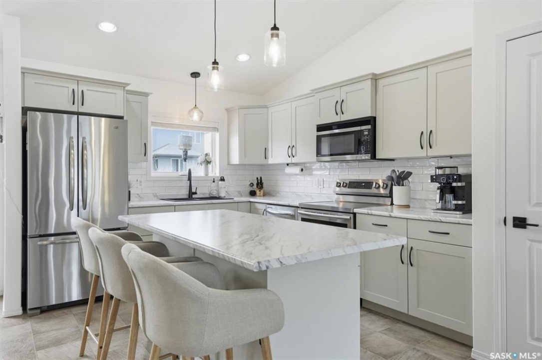 Exceptional west-backing property in a prime Stonebridge location, this meticulously maintained 1105sqft bungalow with a double attached garage shows like new inside and out. The bright, open main floor features vaulted ceilings, large windows, and thoughtful accents throughout, with a functional layout that includes two spacious bedrooms, a 3-piece bath, and a 4-piece ensuite. The kitchen offers excellent storage with two pantries, an island, abundant cabinetry, and recent updates including new tile backsplash (2025), and upgraded countertops (2025). Additional improvements include a new fence (2022), fresh interior paint (2025), updated landing flooring (2025), a fully upgraded main bath (2024), a beautifully renovated downstairs bathroom (2025), and a new in-swing back door (2025). The basement includes a finished bedroom with an adjoining 3-piece bath, while the remaining space is open for future development. Modern comfort is enhanced by central air, a high-efficiency furnace, HRV system, and smart-home features such as smart light switches throughout, an Ecobee thermostat, and a smart garage door opener. The west-facing yard is complete with a treated deck with metal railing, lawn, trees, shrubs, underground sprinklers, and updated finishes that complement the home's care and quality. All stainless steel kitchen appliances and washer/dryer are included. Ideally located within walking distance to amenities with quick access in and out of Stonebridge—this home is truly move-in ready.