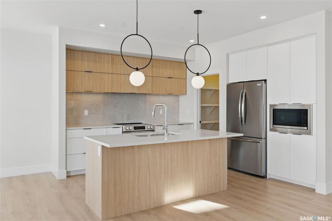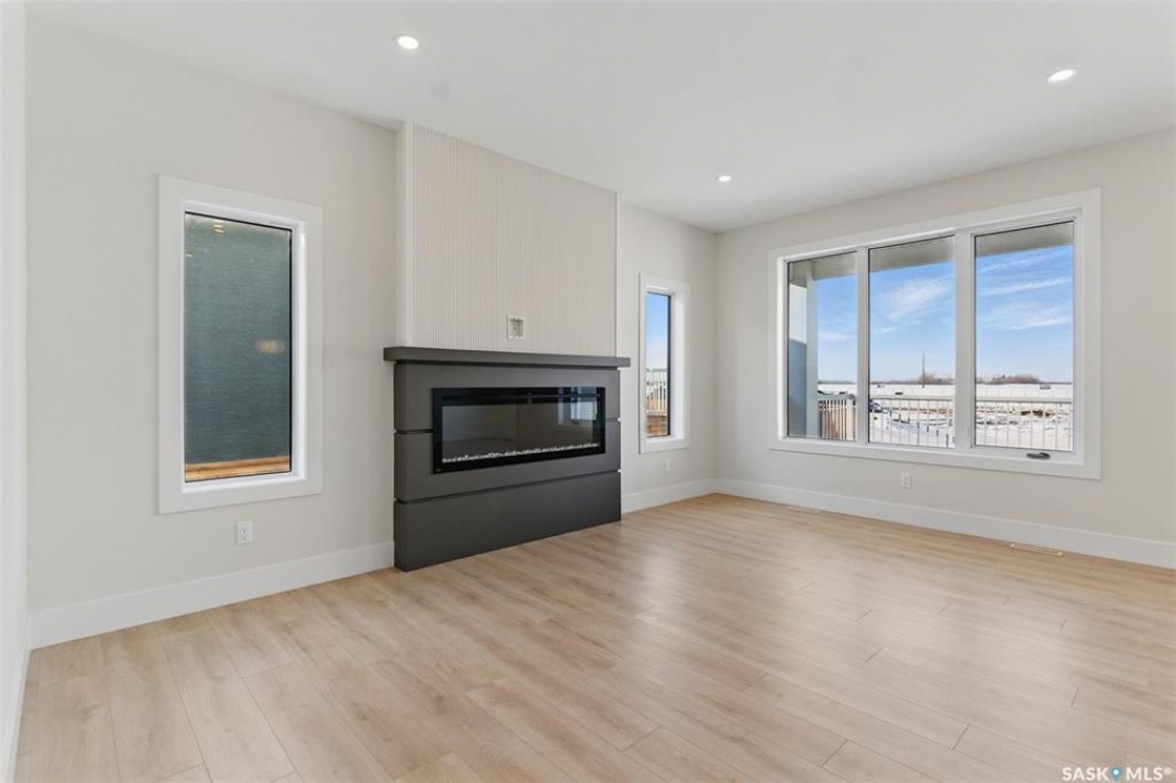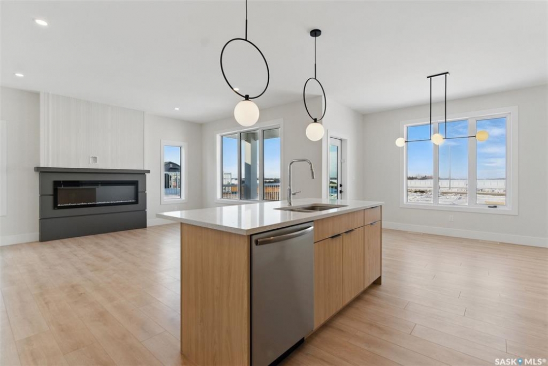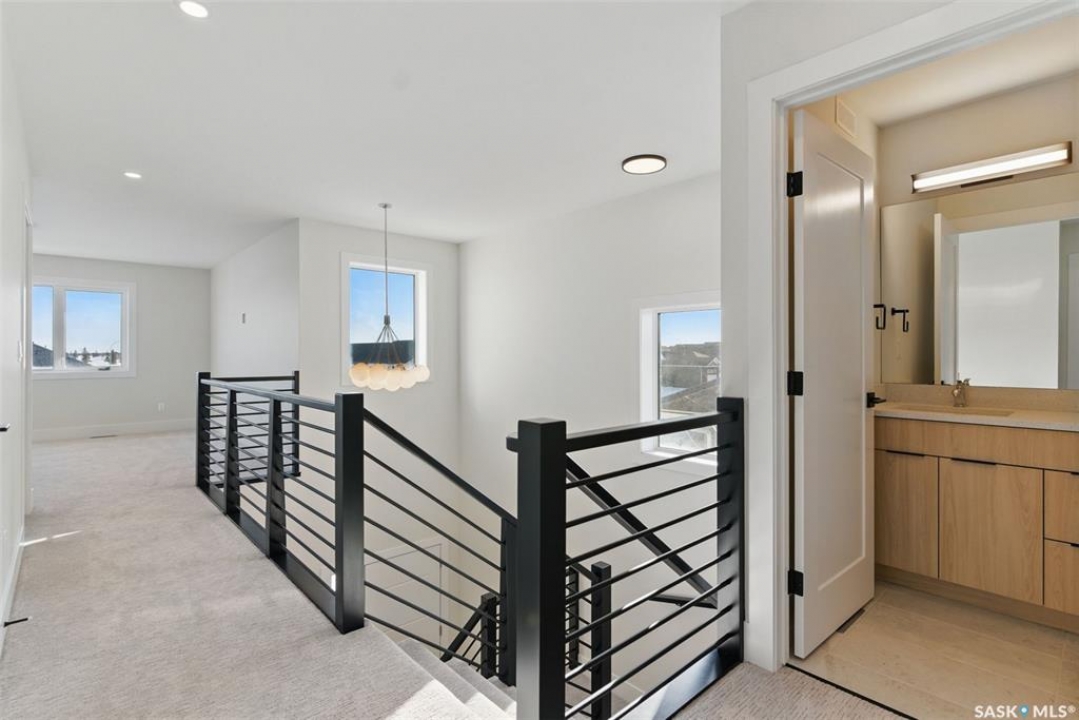 Welcome to 218 Veterans Drive! This beautiful new home is located in Warman, close to all amenities. Walking in you are greeted with plenty of natural light. In the great room you can cozy up by the fireplace on cold days. With the Open Concept this home is great for hosting! The Kitchen has plenty of counter space, under cabinet lighting to have both ambiance and ample task lighting, and a walk thru pantry that leads to the mudroom to make unloading groceries easy. Going up the staircase you can look down into the foyer over the banisters. In the primary room you have a feature wall, plenty of natural light, a 5-pc ensuite, and a walk-in closet! There is also a laundry closet located conveniently by all 3 bedrooms. Upstairs there is a 4-Pc Bathroom and a family room. Contact your Realtor today to not miss viewing this beautifully crafted home where luxury meets comfort! Under construction. Finishes may vary from listing pictures.