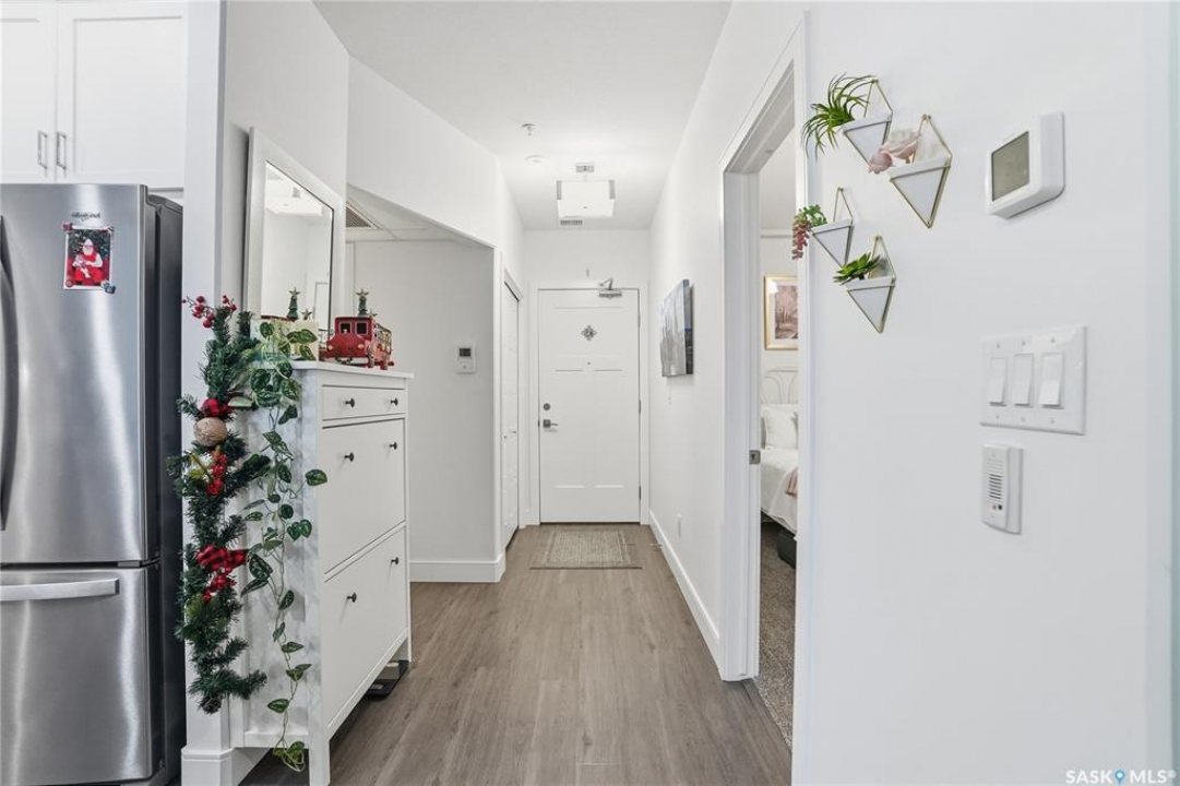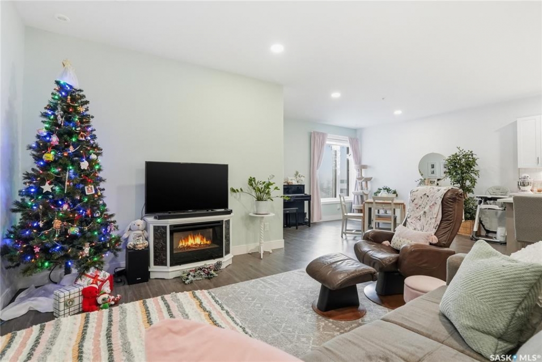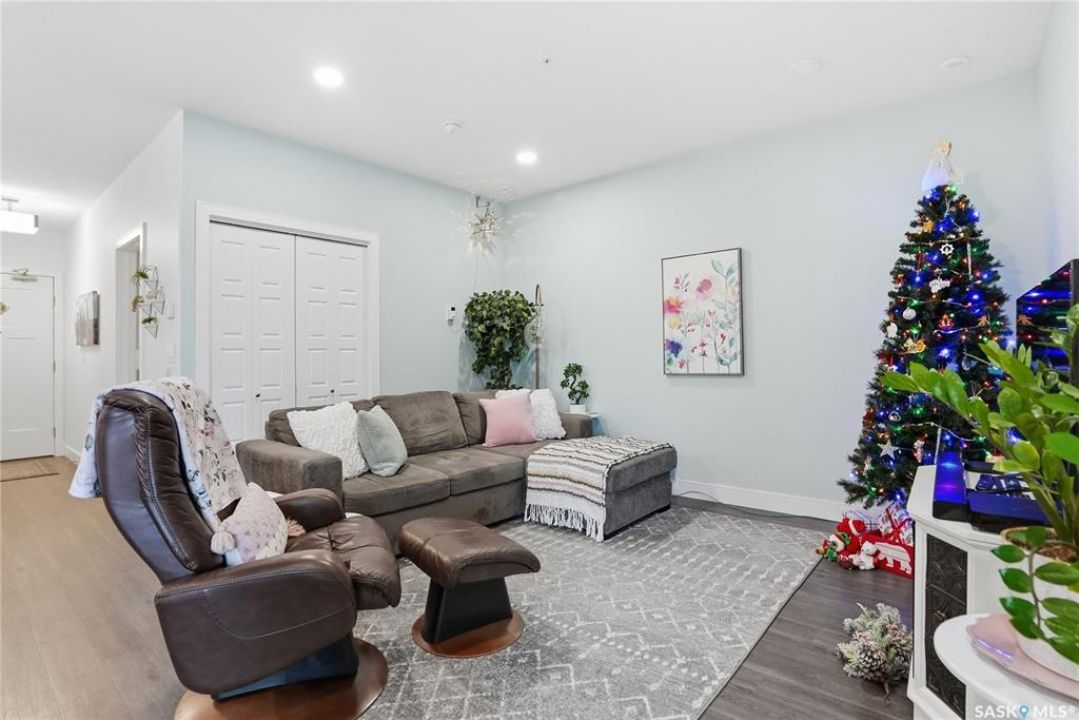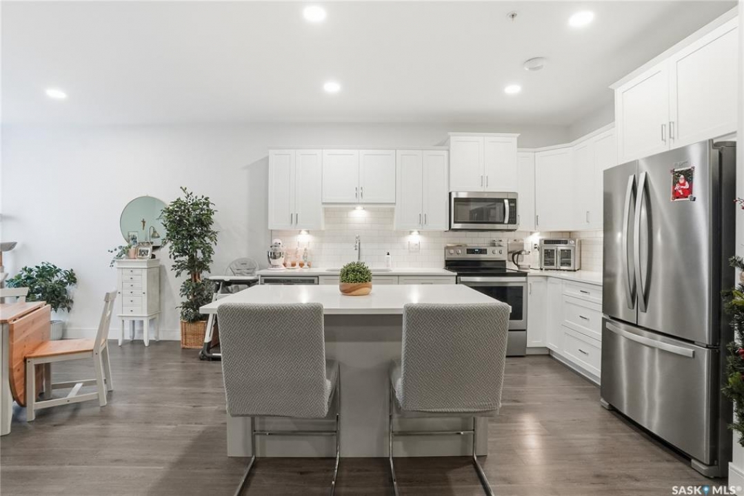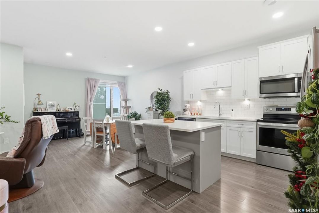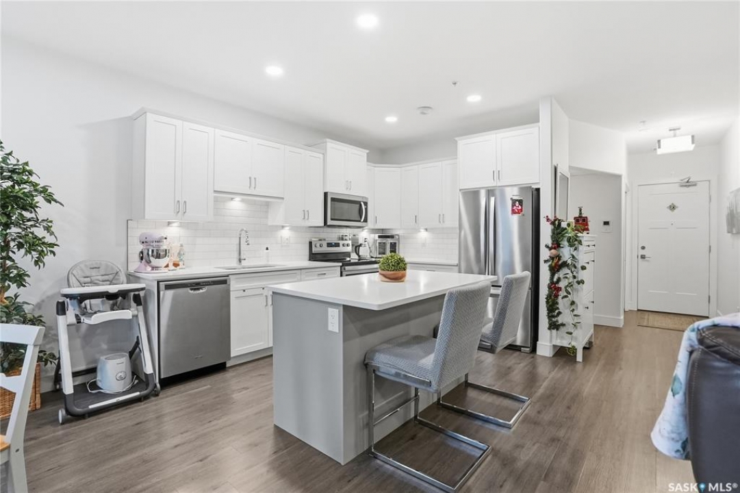 Welcome to The 105 in Stonebridge. This upgraded one-bedroom condo offers a modern and functional layout with quality finishes throughout. The kitchen includes stainless steel appliances, quartz countertops, a tile backsplash, and under-cabinet lighting. The bright living room features a large window and an open layout that maximizes natural light. The bedroom (no window) is thoughtfully designed and offers a comfortable retreat. The bathroom is finished with quartz countertops and ample storage. In-suite laundry includes a full-size Whirlpool stacking washer and dryer. The 105 is a pet-friendly building (dogs permitted) located close to parks, shopping, and all Stonebridge amenities, with quick access to Circle Drive. Residents enjoy access to a guest suite, fitness room, and recreation center. A great opportunity for anyone seeking a move-in-ready condo in a prime location.