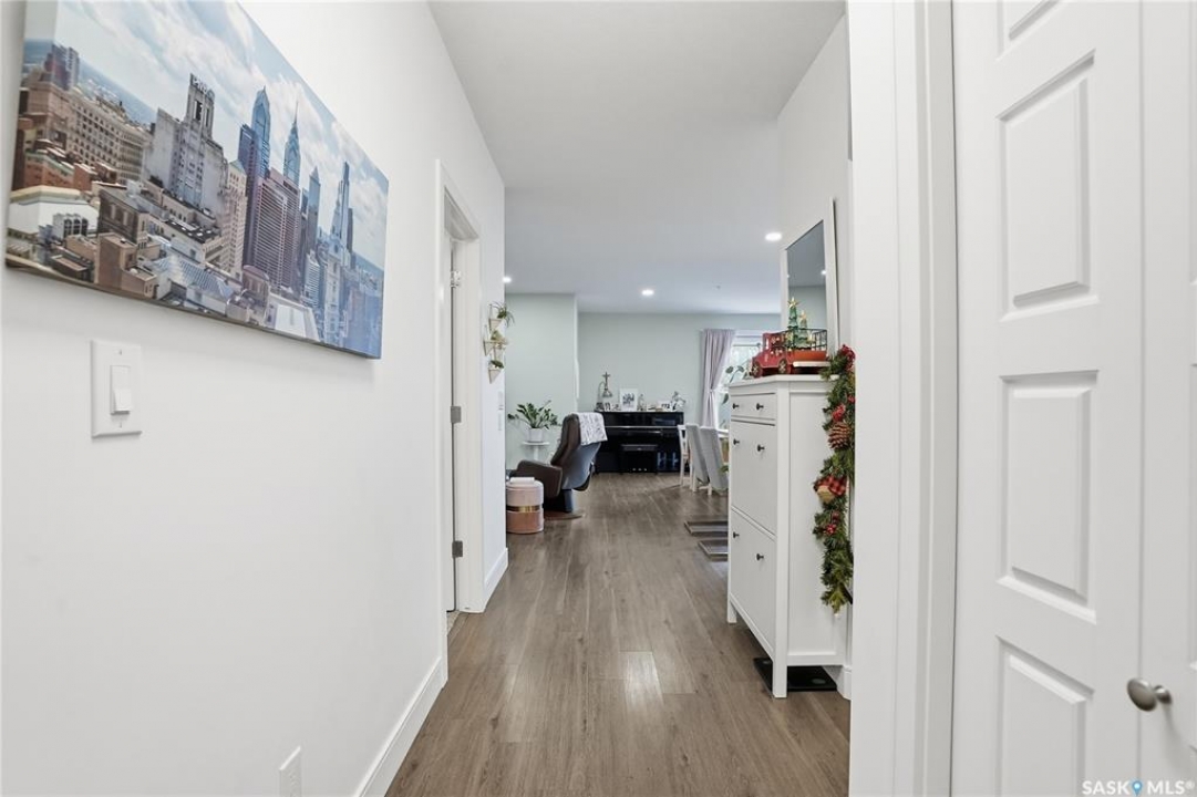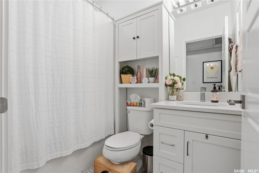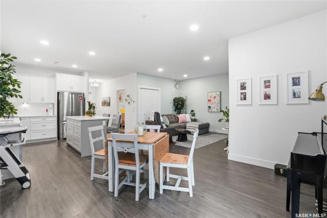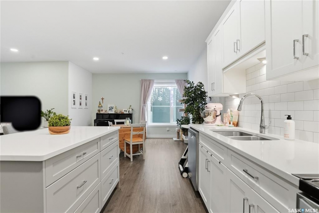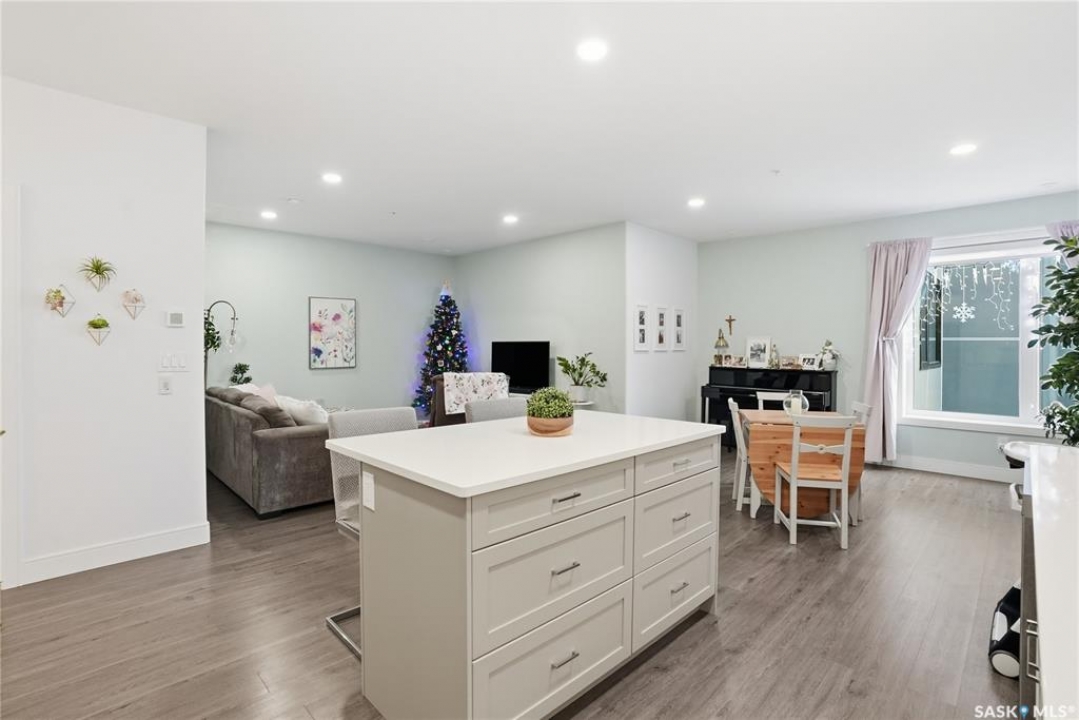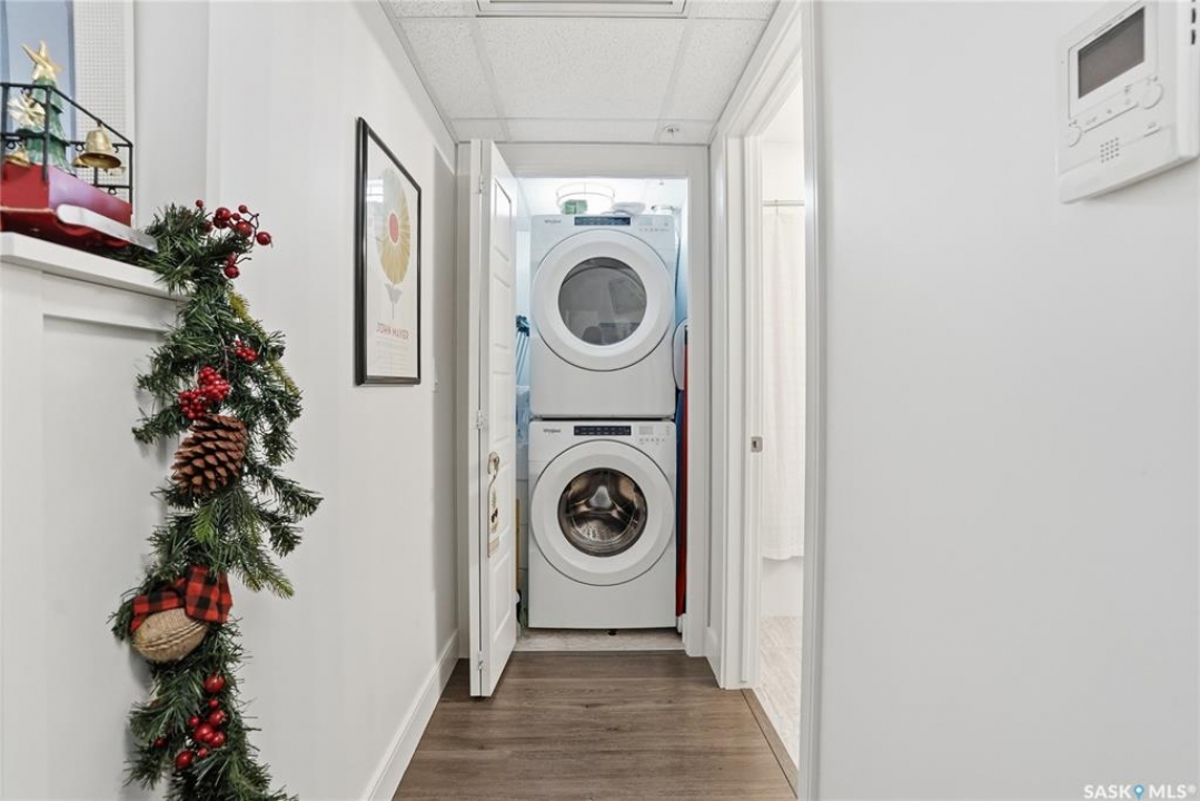 Welcome to The 105 in Stonebridge. This upgraded one-bedroom condo offers a modern and functional layout with quality finishes throughout. The kitchen includes stainless steel appliances, quartz countertops, a tile backsplash, and under-cabinet lighting. The bright living room features a large window and an open layout that maximizes natural light. The bedroom (no window) is thoughtfully designed and offers a comfortable retreat. The bathroom is finished with quartz countertops and ample storage. In-suite laundry includes a full-size Whirlpool stacking washer and dryer. The 105 is a pet-friendly building (dogs permitted) located close to parks, shopping, and all Stonebridge amenities, with quick access to Circle Drive. Residents enjoy access to a guest suite, fitness room, and recreation center. A great opportunity for anyone seeking a move-in-ready condo in a prime location.